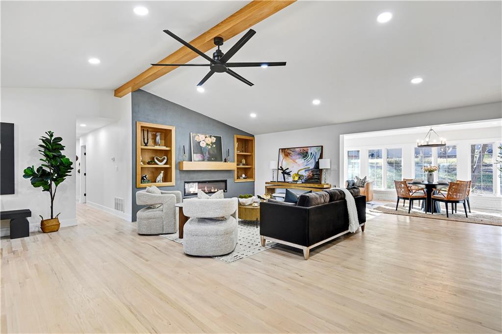 MOTIVATED SELLER! This 5 bed 4 full bath home is the epitome of classic with the perfect blend of modern luxury and convenience. The exterior is "Old Leawood"; the brick, the shutters, the eye-catching cedar accents, copper gutters/downspouts...oh, and the beautiful trees and rare three car tandem garage too. This DOWN TO THE STUDS COMPLETE REMODEL showcases a vaulted great room and kitchen chock full of custom cabinetry, built-in's, expansive island, high end appliances and walk in pantry. The laundry/mudroom is just off the garage on the main level. The charming sunroom has a perfectly cozy sitting area and a dining space with gorgeous lighting. The french doors take you outdoors to a freshly poured patio perfect for dining, entertaining, just a cup of coffee or fine glass of wine. Retreat to your breathtaking, primary suite addition with vaulted ceiling and a door out to an additional cobblestone patio. Wait until you experience the primary bathroom with custom cabinetry and gorgeous lighting. Pamper yourself in this one of a kind, custom shower with fluted tile, a bench, multiple shower heads and gorgeous glass enclosure; there is an expansive custom walk-in closet ready to be filled! Two additional spacious bedrooms are on the main level. There is en suite secondary bedroom with it's own private bathroom complete with a shower and glass doors. This bedroom is a dream with a walk in closet. The third main level bedroom has a tub/shower combo bathroom conveniently placed across the hall. The open staircase leads to a lower level primed for entertainment and fun! Sitting room, game room, exercise/flex room, and two additional roomy bedrooms with yet another well appointed and large bathroom with another walk in shower! Leawood Estates is a wonderful neighborhood with friendly neighbors who become friends, near all of the daily amenities, award winning schools and highway accessibility. Live "close in" to Kansas City and plant your roots on Sagamore Lane.