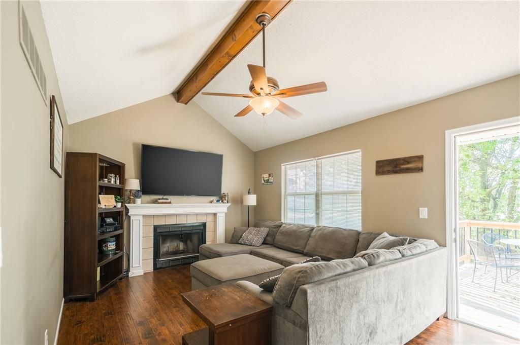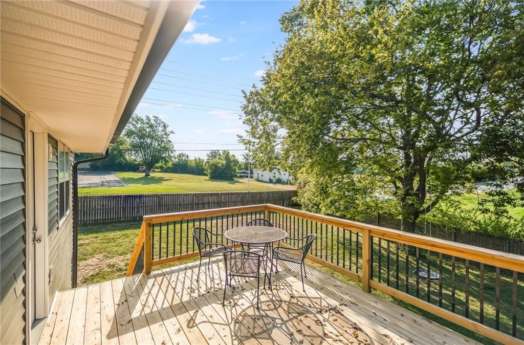 Enjoy peace of mind with this 3 bed, 2 bath split-entry home featuring a brand new class 3 roof, new vinyl siding, and new deck. The inviting great room features a fireplace and vaulted ceiling, creating an airy, open feel that flows seamlessly onto the spacious deck - perfect for relaxing or entertaining. The lower level offers additional living space, ideal for a family room, game area, or home office. Inside the garage you will find two matching stainless steel workbenches with sink and water hookup. Situated on a large, flat corner lot, the property is fully enclosed with a 6-foot privacy fence, providing a safe and serene outdoor environment. Outdoor features include a storage shed, patio, fire pit, and mature shade trees for enjoying quiet afternoons. Behind the home lies undeveloped land, offering exceptional privacy - with no known current plans for development. Located in the award-winning Lee's Summit School District and close to shopping and amenities, this is a unique opportunity to own a home that combines space, style, and seclusion.