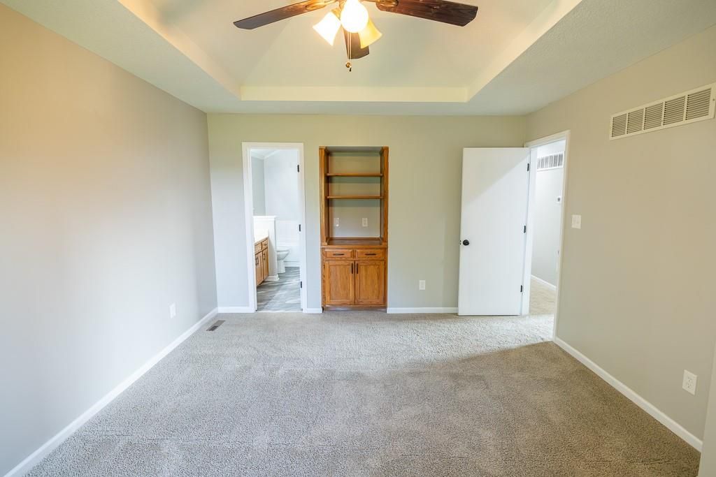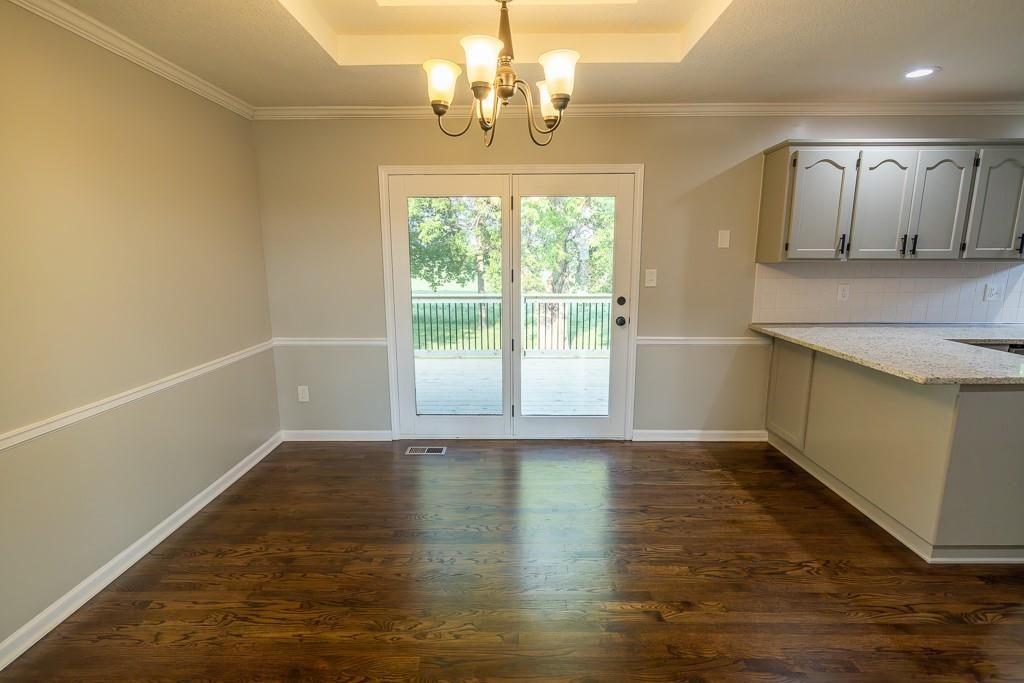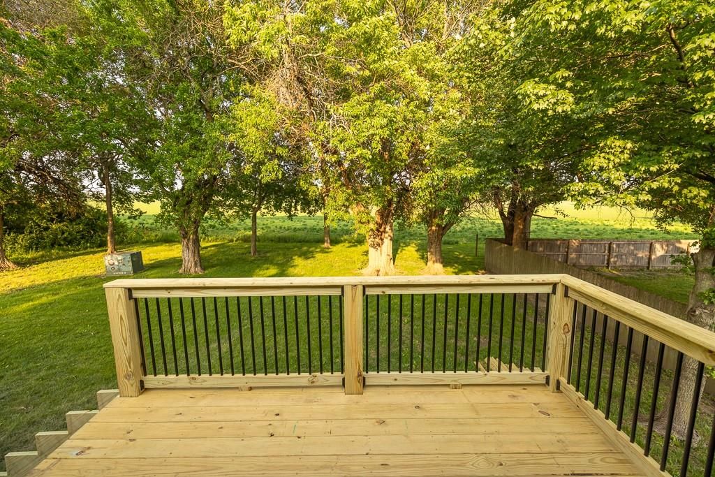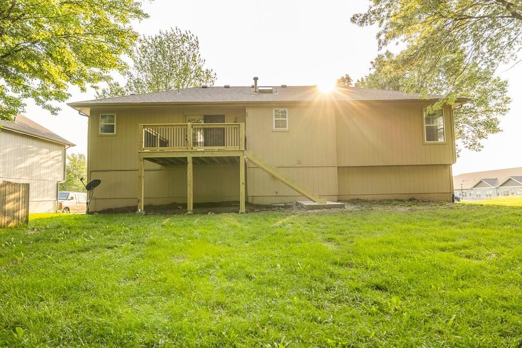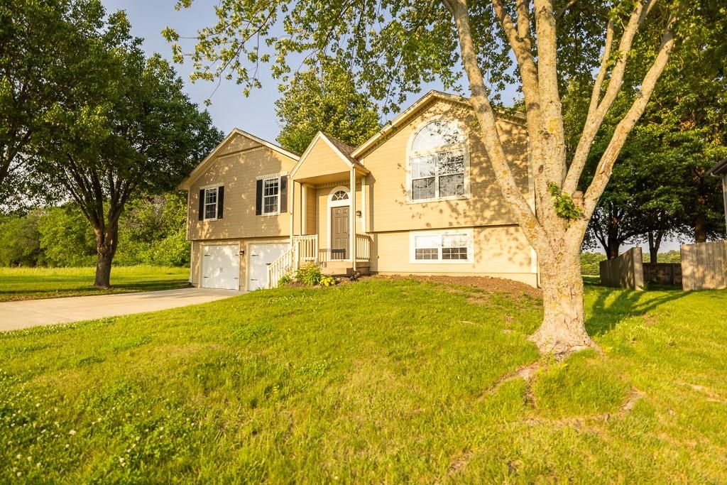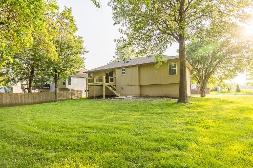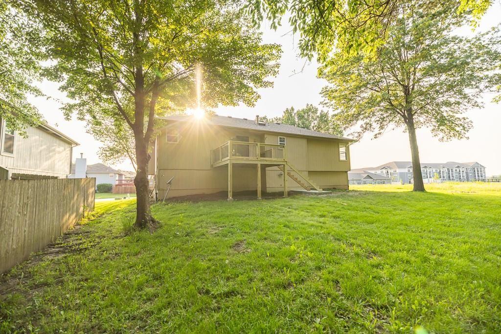 Updated and beautiful move-in ready home on the last lot overlooking vast farmland off the back deck and an empty lot on one side. This 3 bedroom and 2 bath home offers a large eat-in kitchen, vaulted living room with gas fireplace, large master suite with jacuzzi tub and separate shower, walk-in master closet, main floor laundry, a full finished basement, a new deck, ample storage, huge flat driveway and oversized garage spaces. New finishes include new granite countertops, new kitchen sink and faucet, new hardware, newly finished kitchen cabinets, backsplash, fresh paint, new bathroom flooring, newly finished kitchen wood floors, and fresh paint throughout the entire walls, trim, and ceilings. New hot water heater & newer HVAC in excellent condition. Princeton Heights features an excellent neighborhood pool and offers a very convenient location, with quick access from this home to Hwy 50 and Todd George from the Oldham Parkway outer road. One of the best features of this home is the lot itself, beautiful views to the east from the back deck with huge mature shade trees, plenty of room for a firepit, playsets, trampolines, etc. and the last lot in the neighborhood with no neighbor on one side. There is no question deer and turkey will be frequently browsing behind the home. This home is within the new East Trails Middle School boundary and is within walking distance of Happy Trails Dog Park. This home truly is move-in ready, with beautiful new finishes, an outstanding lot, and a convenient location; this one will not last long!
