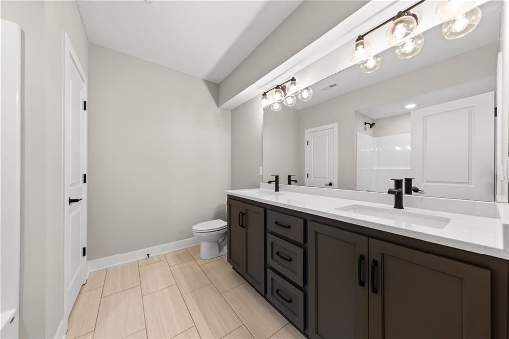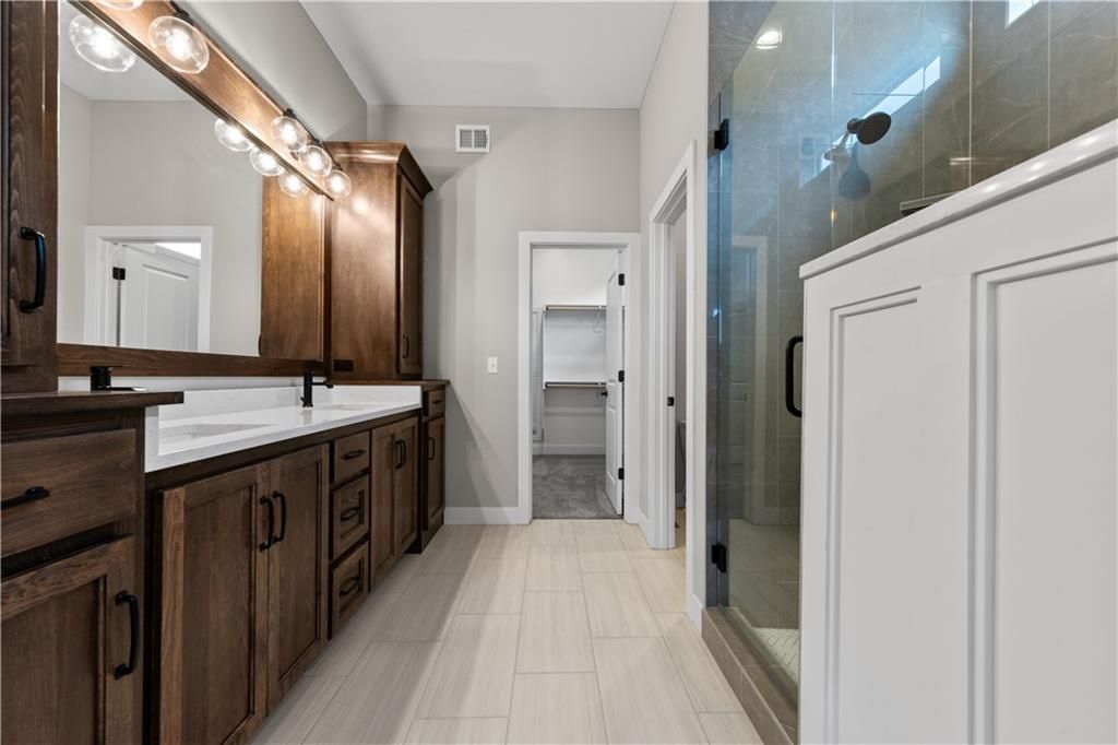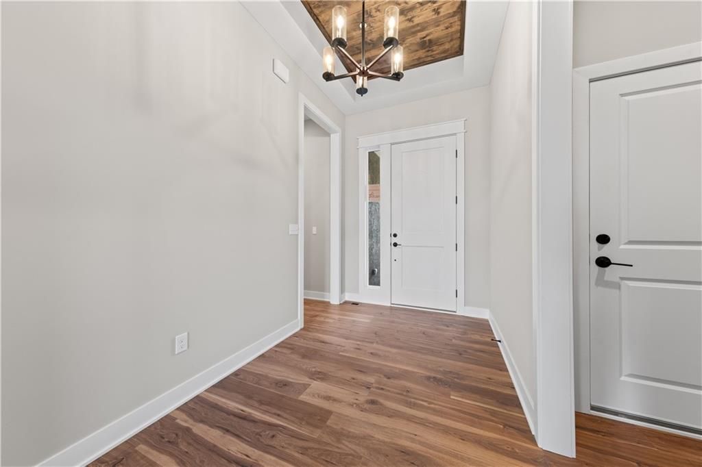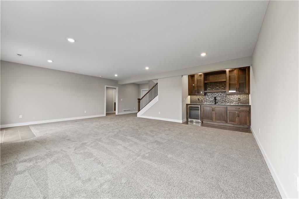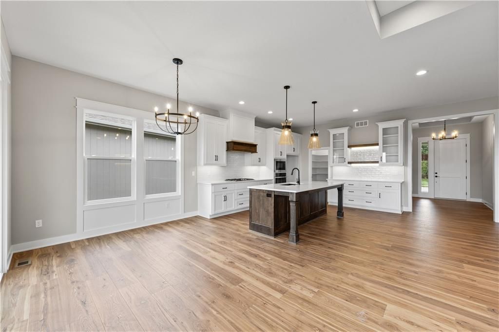 This Inspired Homes Fairfield Reverse 1.5 Story on a WALKOUT lot is the total package - inside and out! From the moment you step into the grand, light-filled foyer, you'll feel the elevated design and thoughtful layout unfold before you. Soaring 10' ceilings, oversized custom windows, and high-end upgrades set the stage for style and sophistication. The stunning great room is a showstopper - featuring a coffered ceiling with rich wood accents and a statement stacked-stone fireplace that anchors the space perfectly. The open-concept kitchen is a chef's dream: custom cabinetry, a massive island, GE stainless built-ins including a gas cooktop, and an extra-large walk-in pantry to keep everything organized and out of sight. The main-floor primary suite is a true retreat with tray ceiling, spa-style bath, dual vanities with custom tower storage, and a huge walk-in shower. Bonus? The laundry is cleverly tucked off the primary closet - making daily life easier than ever. The second main-level bedroom offers ideal flexibility as a guest suite or home office. Downstairs, the finished lower level impresses with 9-foot ceilings, a spacious rec room with a sleek wet bar - perfect for game days, movie nights, or entertaining - plus two more generous bedrooms and a full bath. Step outside to enjoy your covered deck AND patio - the perfect setting for morning coffee or sunset drinks. All of this is nestled in Kensington Farms, where residents enjoy access to a sparkling community pool, playground, walking trails, and easy access to Downtown Lee's Summit, Summit Fair, top schools, shopping, dining, and more.