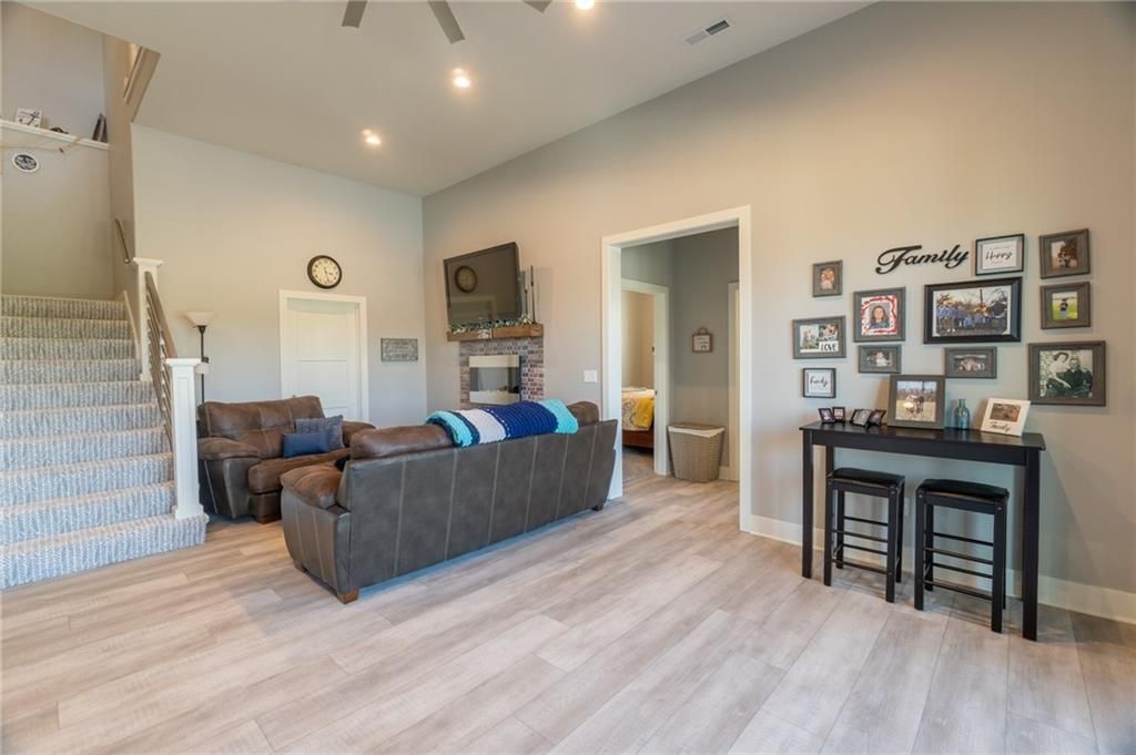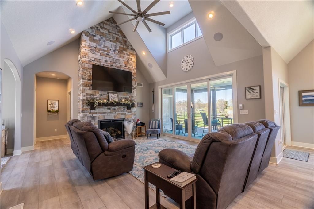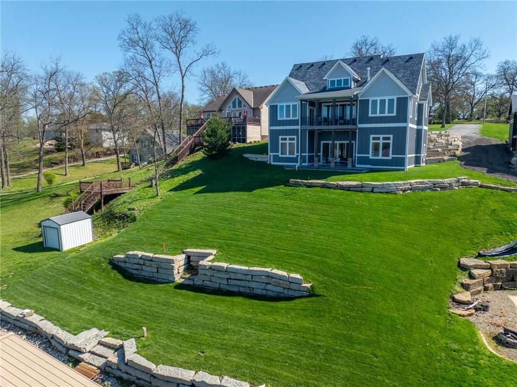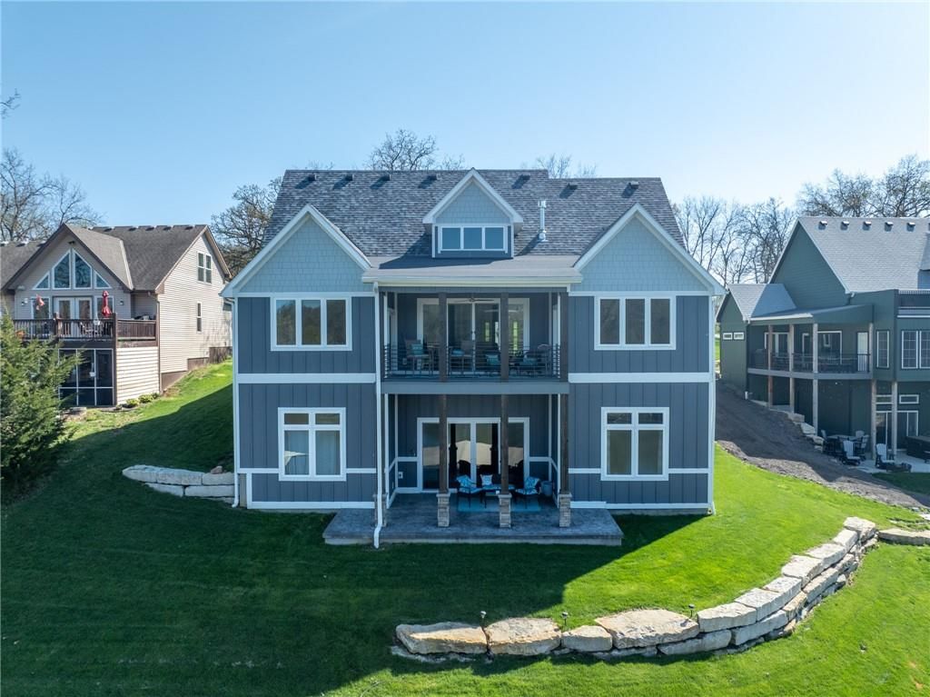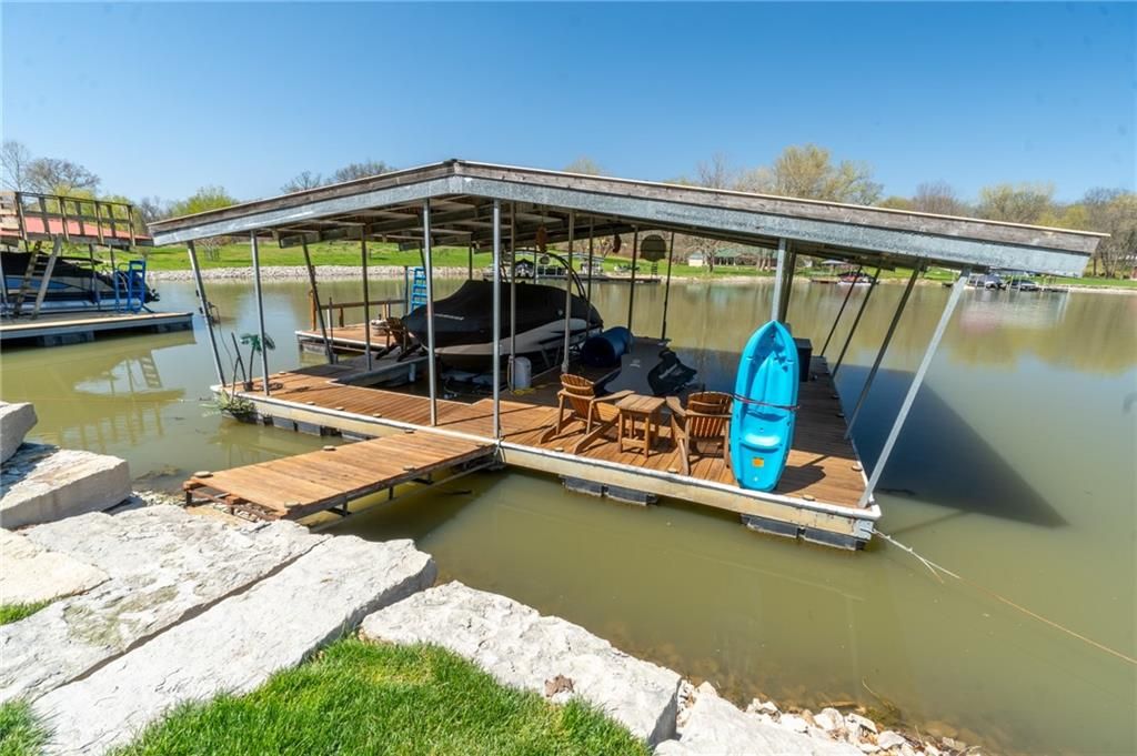 Motivated Seller! TURN-KEY Lakefront Luxury on Beautiful Lake Viking! Welcome to this newer construction, lakefront retreat. This stunning 4-bedroom, 3.5-bathroom home was thoughtfully designed for comfort, entertainment, and soaking in the water views. Step into the grand great room where soaring vaulted ceilings, a floor-to-ceiling stone fireplace, and windows framing the sparkling lake beyond. The open-concept layout flows effortlessly into a modern kitchen featuring a large quartz island, stylish finishes, and all the space you need for gathering with family and friends. The main-level primary suite is a private escape with dual vanities, a spacious walk-in closet, and a luxurious dual-headed custom shower. Downstairs, the walkout lower level boasts a cozy family room, three additional bedrooms, and a wet bar, perfect for hosting weekend getaways. Outside, enjoy your private dock complete with a 2-well boat slip, swim platform, 2018 Yamaha Jet Ski, and 2019 boat, all included! The exterior showcases Hardie Board siding and elegant stone retaining walls that blend durability with timeless curb appeal. Whether you're entertaining, relaxing, or playing on the water, this home is ready for you! Don't miss your chance to own a piece of paradise at Lake Viking!