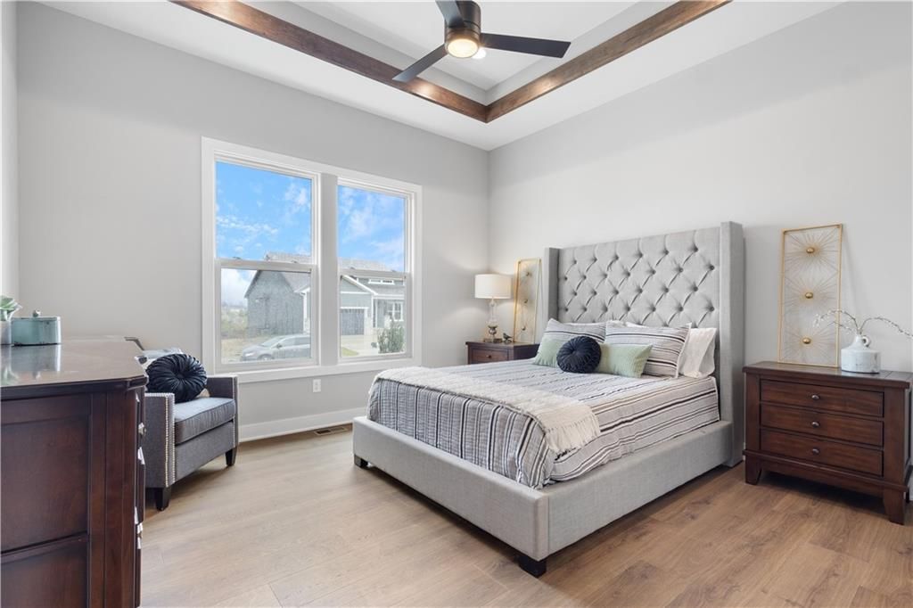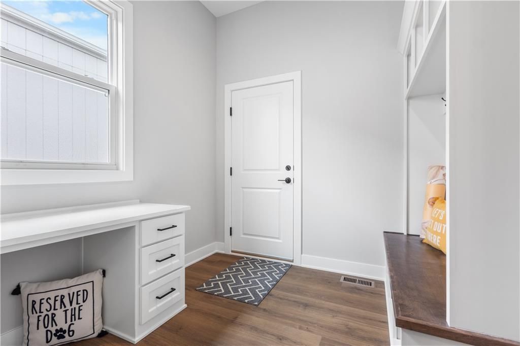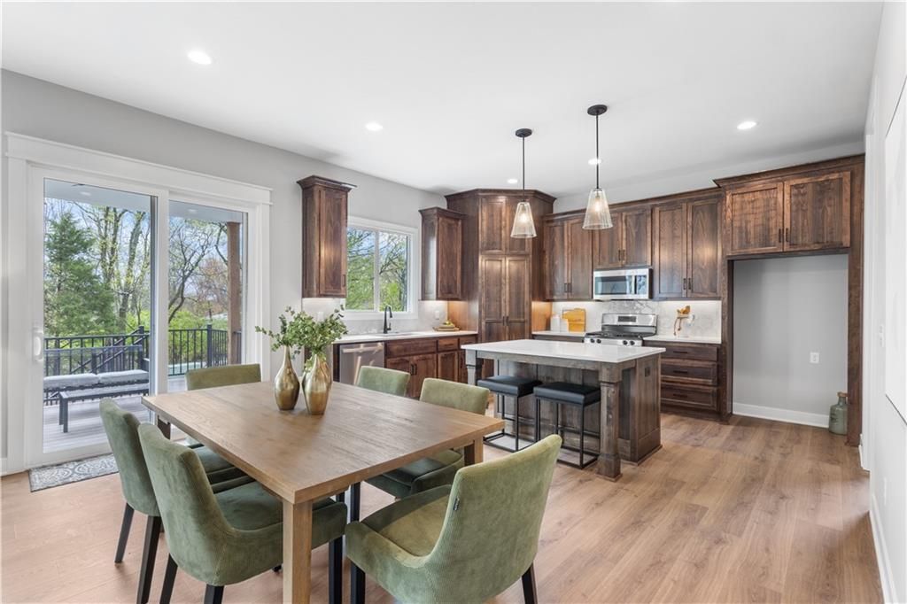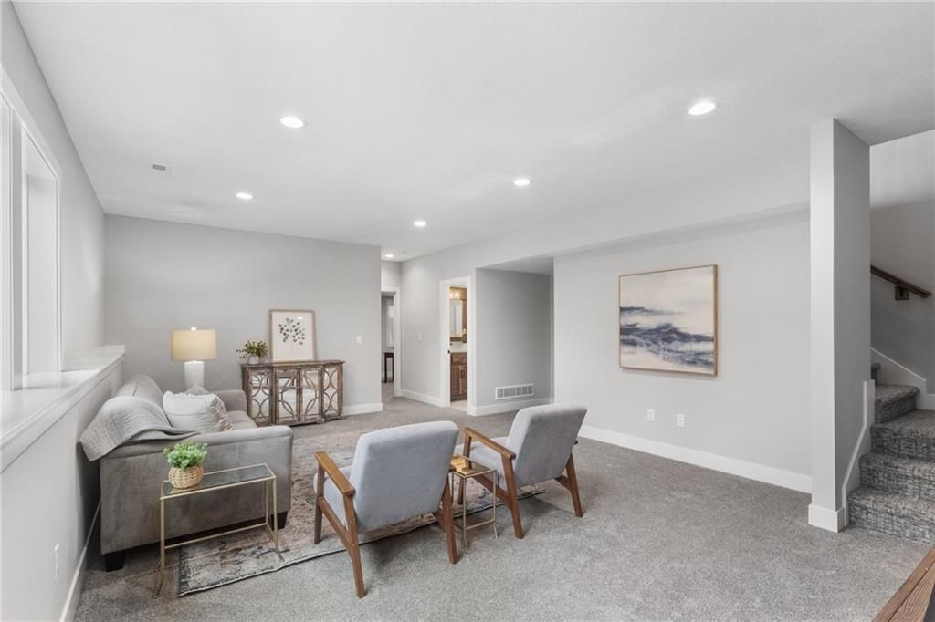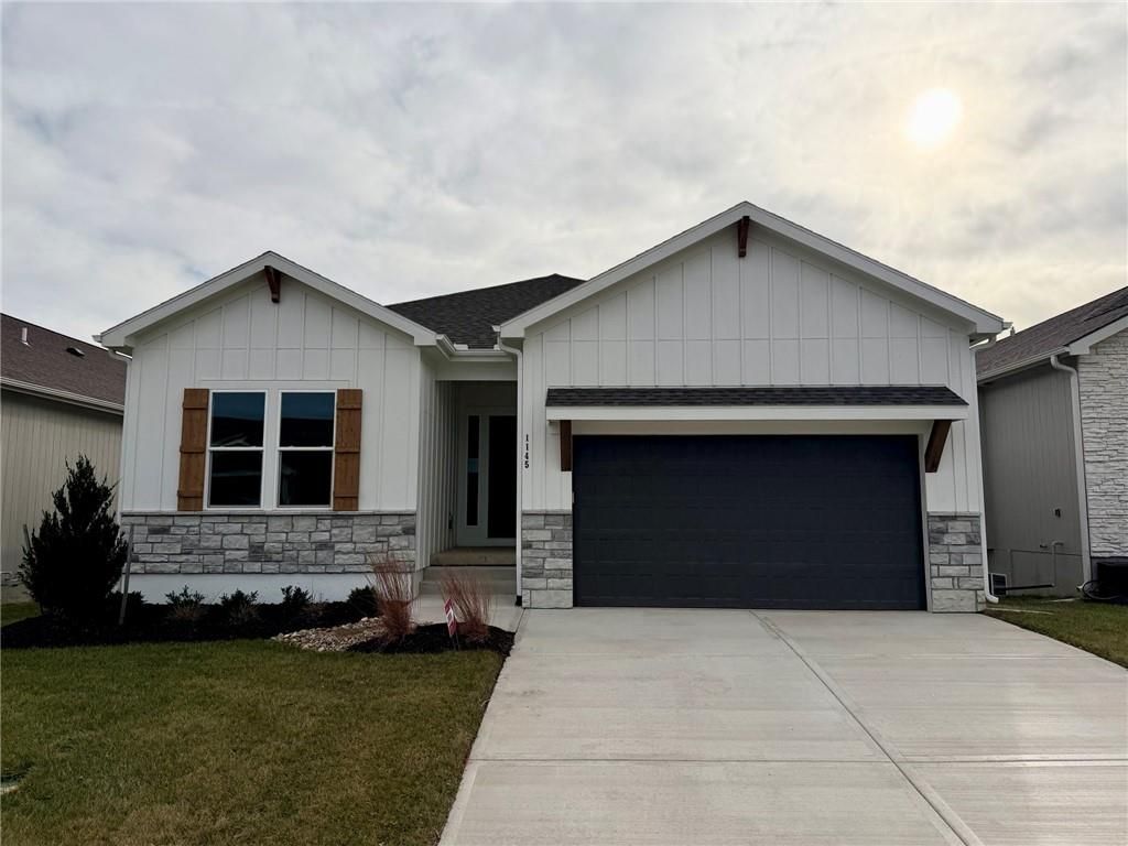 Back on Market, NO fault of Seller. This home is Move in Ready and priced well below reproduction! Hard to find Reverse 1.5 Story under $500k AND situated on a daylight lot backing to trees. Better Hurry!! NO BACKYARD NEIGHBORS. The gorgeous Danbury floorplan by Inspired Homes is a MUST SEE. Affordable, high quality main floor living at its finest featuring 10ft ceilings throughout main floor, a wide-open living area that overlooks your large, covered deck with stairs to a lower patio! Kitchen features custom cabinetry, walk-in corner pantry, extended kitchen island, upgraded appliances and quartz & granite countertops! Main floor primary bedroom/bathroom suite has trayed ceiling, spacious shower and large walk-in closet. Owner's entry features custom, built-in desk and boot bench. Main floor laundry located right off the owner's entry. Your finished lower level includes 2 large bedrooms, plus full bathroom, spacious rec room and large unfinished space perfect for storage. Extended garage bays give you ample space for cars plus more. This home is situated in the quiet, picturesque neighborhood of Kensington Farm, surrounded by mature trees, in Cass County with a Lee's Summit address. Plenty of designer features to enjoy including large custom windows that flood the home with natural light, custom cabinetry, popular Rev Wood flooring, GE appliances with gas range, tiled shower in Master bath and mud room/boot bench area with built-in desk. Irrigation system + garage door openers included!
