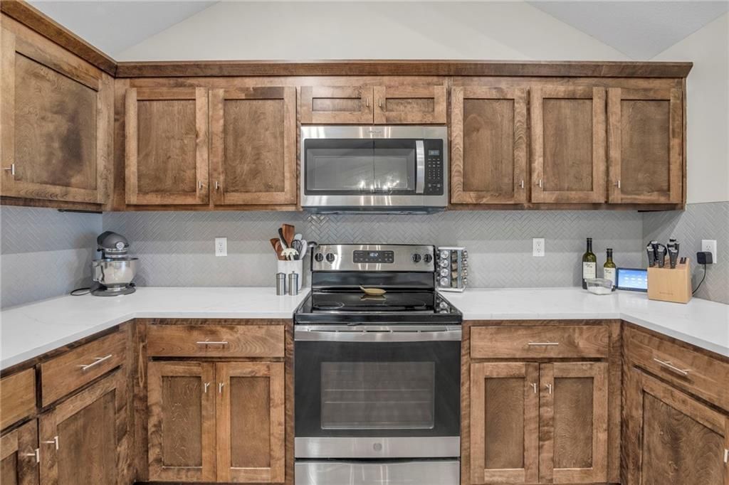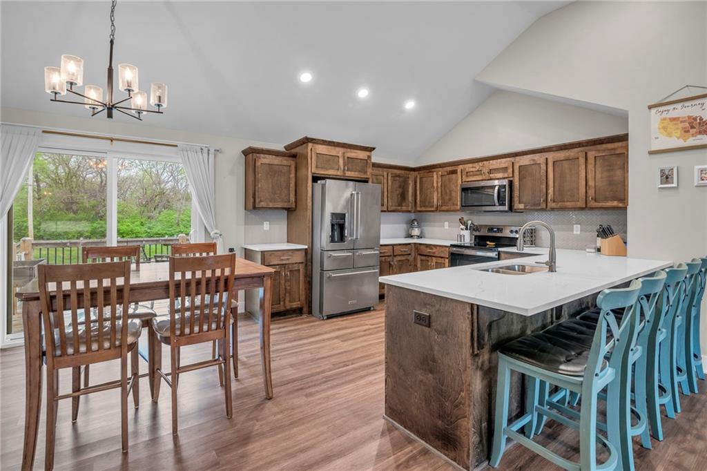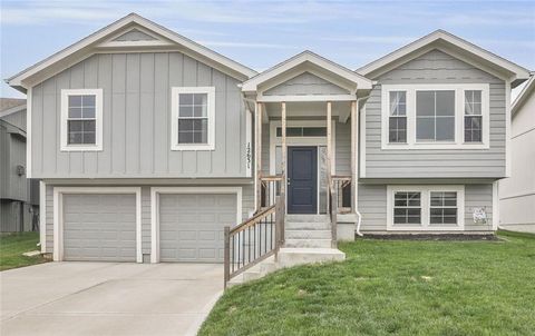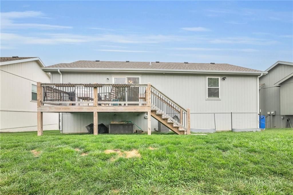MUST SEE!!! GORGEOUS HOME IN FOUNTAIN LAKE ONLY 3 YEARS YOUNG!!! Open Main Level Floor Plan featuring Vaulted Great Room with Fireplace to cozy up next to during those chilly months! Delight the chef in the timeless kitchen featuring quartz countertops, tons of stained cabinets, eat-in peninsula and stainless steel appliances! Adjacent dining area has deck access-perfect for summer BBQs! Down the hall find the primary suite with a walk-in closet and private en-suite. 2 more bedrooms and 2nd full bath completes this level. Lower level (garage entry) showcases a Family Room, 4th Bedroom, 3rd Full Bath and Laundry Room! Oversized Garage for your extra storage needs! Great Location just minutes the shops and dining in Martin City or Town Center Plaza and major highways to Access All KC Has to Offer! WELCOME HOME!
