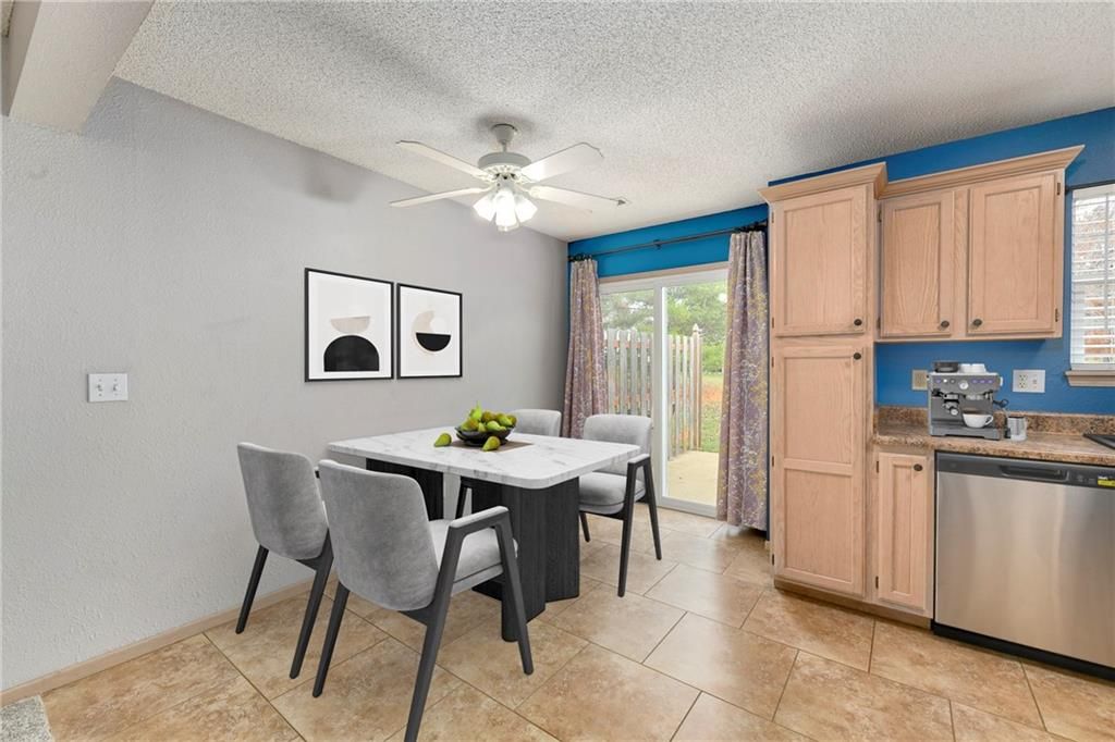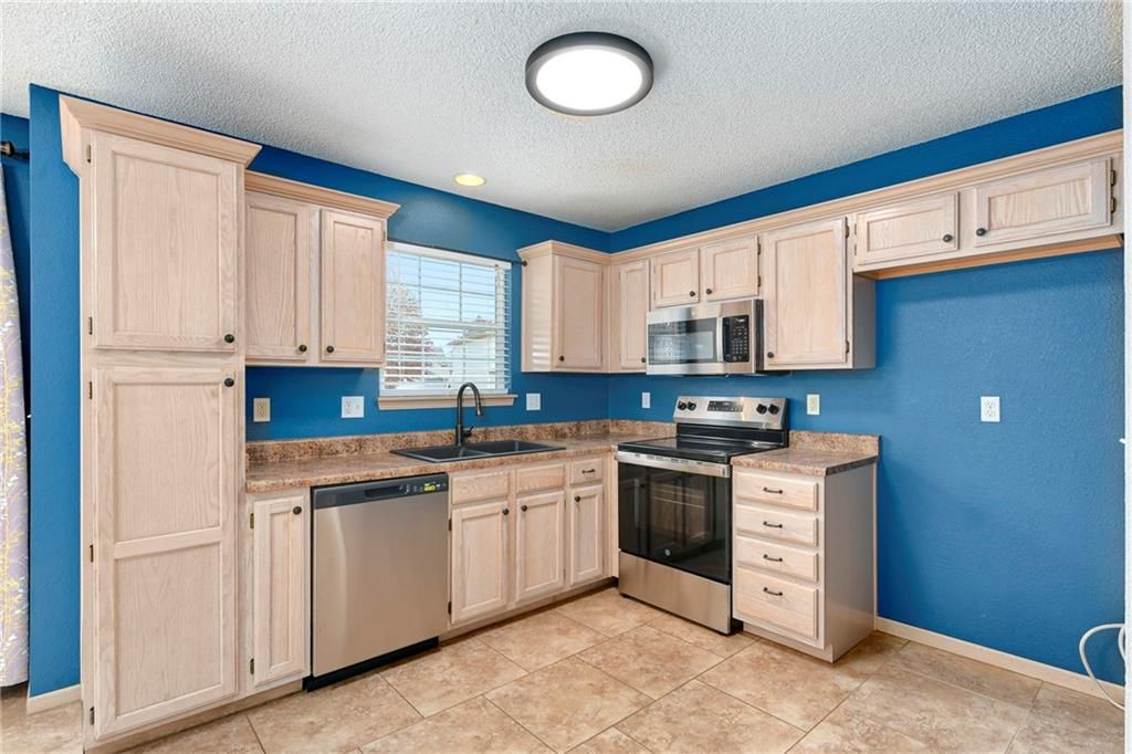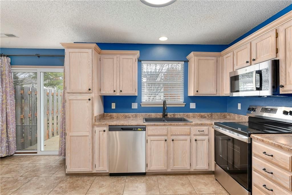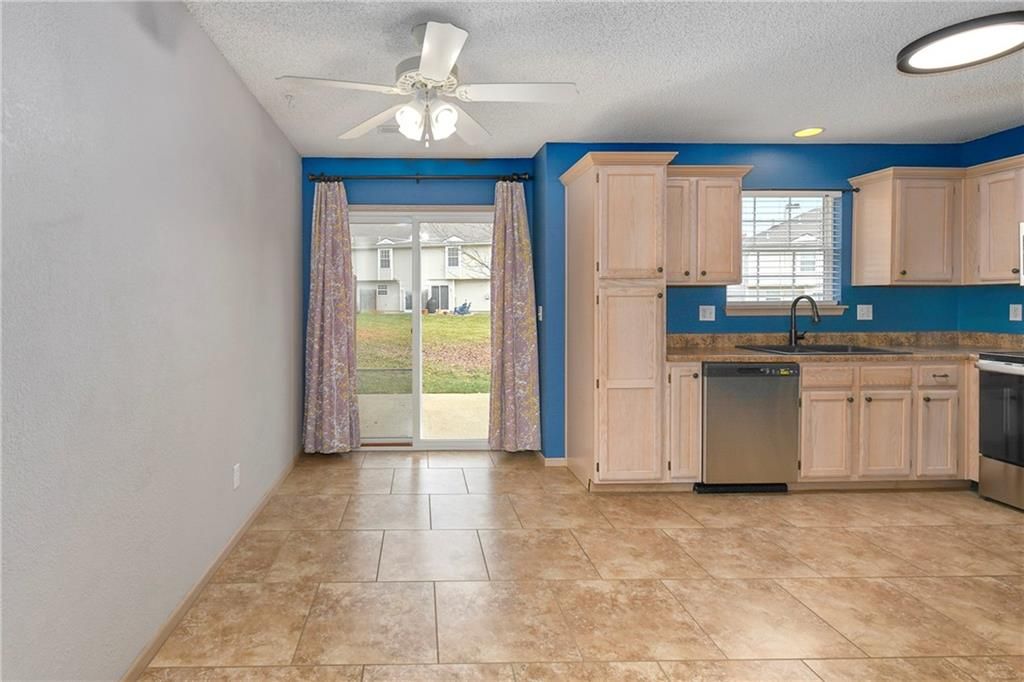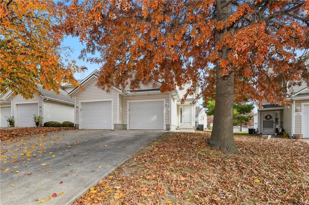 Highly sought after end unit that backs to greenspace with trees. MOVE IN READY!!! Cleaned from top to bottom (even power washed the patio) with a splash of color (various ocean/sky blues and relaxing grays). NEW - kitchen SS appliances (stove, microwave, & dishwasher), carpet throughout the whole unit, kitchen faucet, primary suite - light fixtures, sink faucet, shower & bathtub faucets, toilet flange ring & wax ring), water heater (next week), window & storm door screens (4), & 2 sets of blinds. Seller replaced A/C unit the summer of 2023 to a Trane XR (upgraded). Other updates include - kitchen ceiling light fixture, taller toilet in primary bath, & new fan in living room. BIG BONUS - Garage features an attic pull-down with stairs for additional storage. Front faces West (sun to clear driveway). The patio is on the East (shade for the evening). Washer & dryer stay with the unit. Amenities include lawn care, snow removal, community pool, exterior maintenance. Neighborhood is owner occupied only, no rentals allowed. Home is close to shopping and restaurants, with quick highway access, and located within award winning Lee's Summit School District (New middle school - 1 mile to the East). Don't miss out on this fantastic opportunity to own a move-in ready home with thoughtful updates in a prime location. COME SEE IT TODAY!
