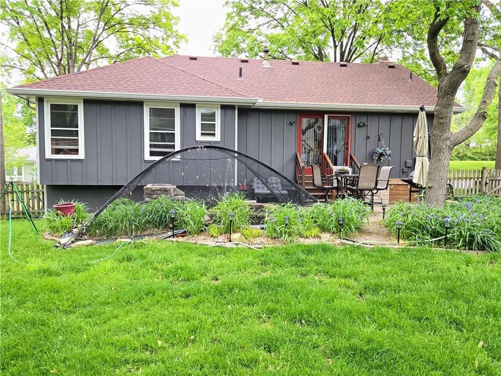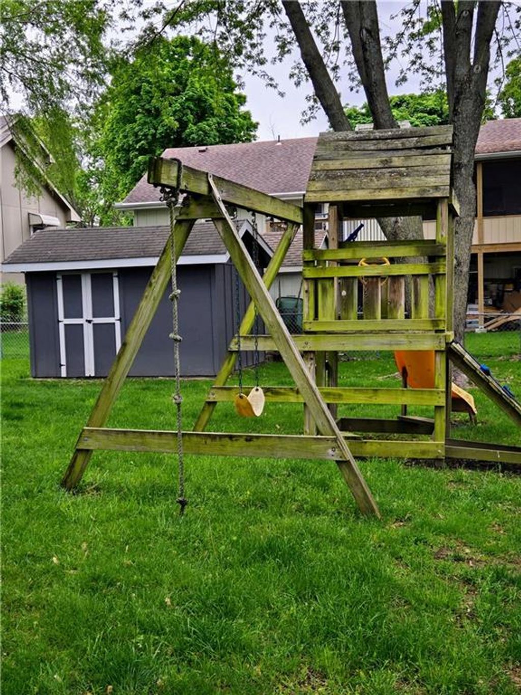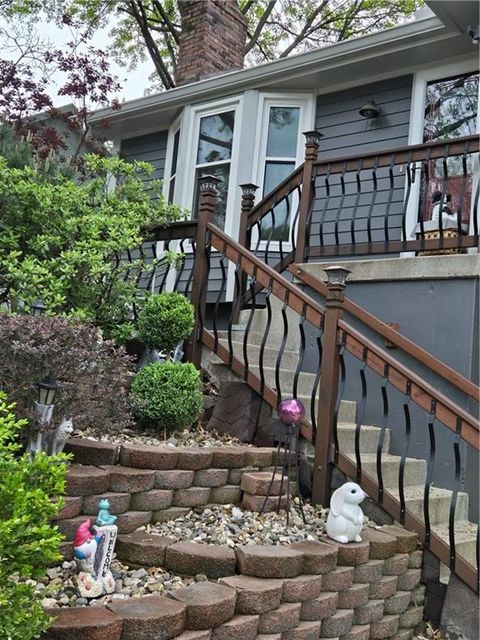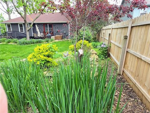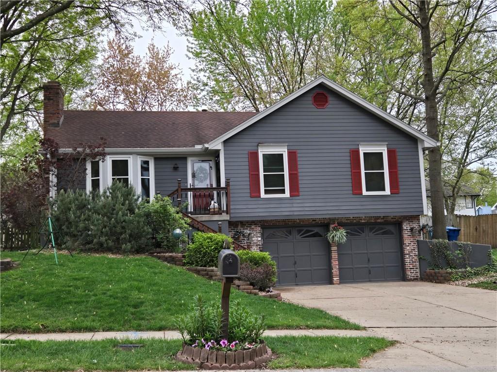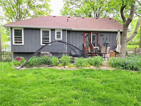 Charming Home in a Prime Location Near Schools, Parks, and Amenities. Welcome to this beautifully maintained home, ideally situated within walking distance of the local elementary school and directly across the street from the tranquil Place Libert Park. Nestled in a quiet neighborhood just behind the shops and restaurants near 291 and I-35, this home offers the perfect blend of convenience and serenity. Step inside to find a spacious, open-concept layout ideal for both everyday living and entertaining. The large kitchen flows seamlessly into the living and dining areas, creating a warm and inviting atmosphere. With two generous living spaces - one on each level - there's room for everyone to relax. Both living areas feature cozy fireplaces, adding charm and comfort year-round. All bedrooms are located upstairs, offering privacy and separation from the main living areas. Downstairs, you'll find a functional laundry area, a convenient half bath, and a large family room highlighted by a stunning brick fireplace with built-in cabinetry. A wet bar and wine rack add a touch of luxury and enhance the space's entertainment potential. Step outside to your serene backyard retreat, complete with lush landscaping, a cobblestone patio, playset, garden shed, and a captivating living Koi pond with a water fountain - perfect for peaceful mornings or lively gatherings. Don't miss the opportunity to own this inviting, well-appointed home in a truly desirable location.