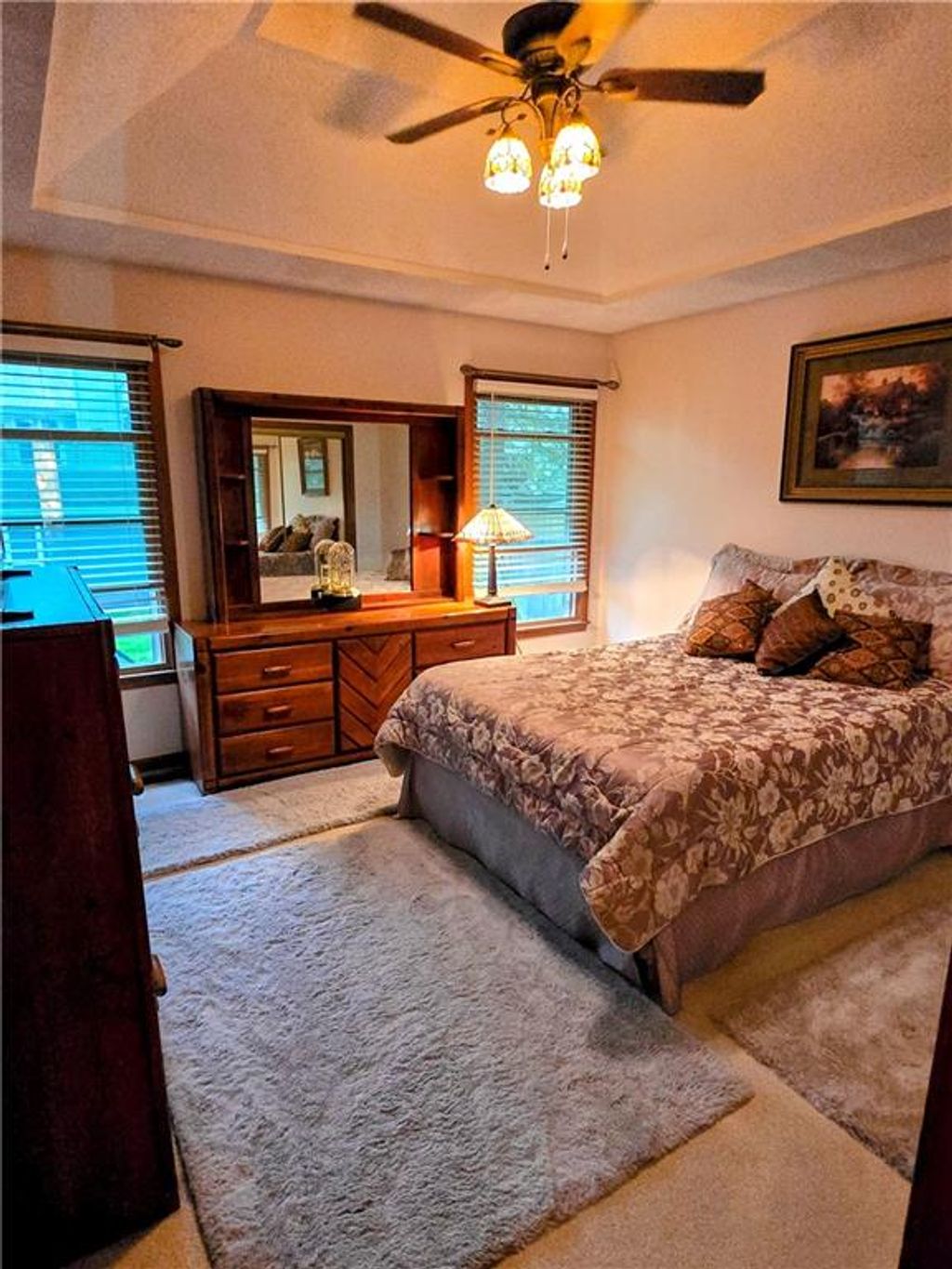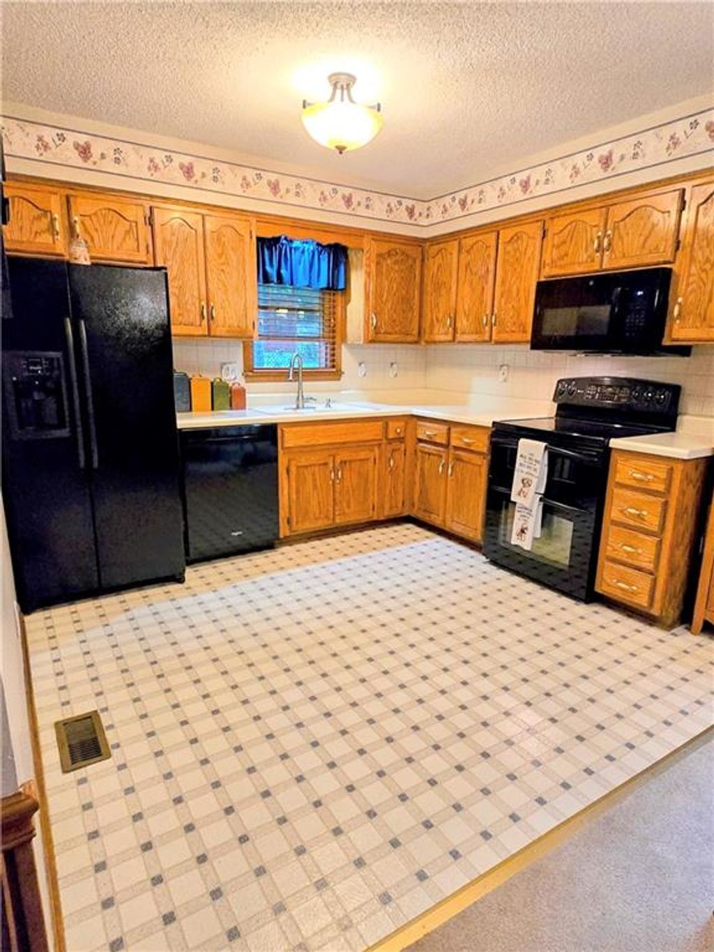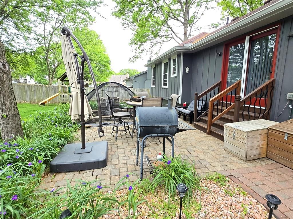 Charming Home in a Prime Location Near Schools, Parks, and Amenities. Welcome to this beautifully maintained home, ideally situated within walking distance of the local elementary school and directly across the street from the tranquil Place Libert Park. Nestled in a quiet neighborhood just behind the shops and restaurants near 291 and I-35, this home offers the perfect blend of convenience and serenity. Step inside to find a spacious, open-concept layout ideal for both everyday living and entertaining. The large kitchen flows seamlessly into the living and dining areas, creating a warm and inviting atmosphere. With two generous living spaces - one on each level - there's room for everyone to relax. Both living areas feature cozy fireplaces, adding charm and comfort year-round. All bedrooms are located upstairs, offering privacy and separation from the main living areas. Downstairs, you'll find a functional laundry area, a convenient half bath, and a large family room highlighted by a stunning brick fireplace with built-in cabinetry. A wet bar and wine rack add a touch of luxury and enhance the space's entertainment potential. Step outside to your serene backyard retreat, complete with lush landscaping, a cobblestone patio, playset, garden shed, and a captivating living Koi pond with a water fountain - perfect for peaceful mornings or lively gatherings. Don't miss the opportunity to own this inviting, well-appointed home in a truly desirable location.