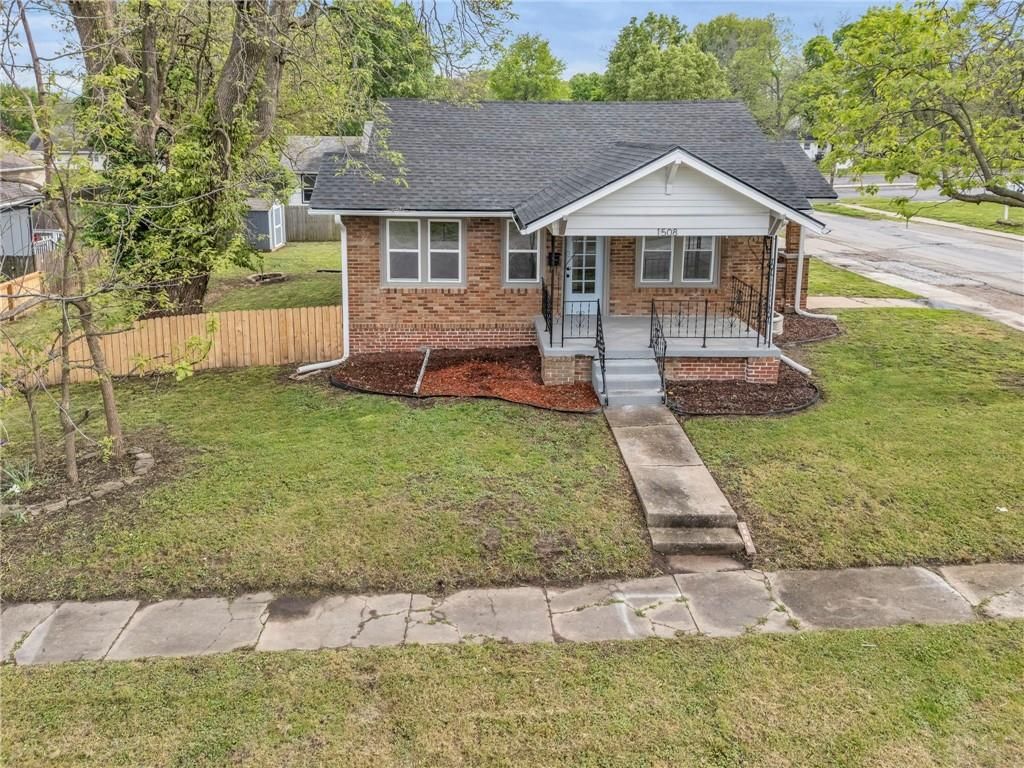 Charming Tudor-Style Ranch in Prime Blue Springs Location! Welcome to 1508 SW Smith St - a beautifully updated 3-bedroom, 2-bath home nestled on an oversized corner lot just steps from vibrant downtown Blue Springs! This timeless Tudor ranch blends character and modern updates with perfection. Enjoy a fully fenced yard, ample street parking, and a dedicated off-street parking pad. Inside, everything has been thoughtfully renovated: brand new kitchen and bathrooms, refinished hardwood floors, fresh interior and exterior paint, and a brand new roof. Relax on not one, but two covered porches and soak in the quiet, tree-lined neighborhood. This is the one you've been waiting for!