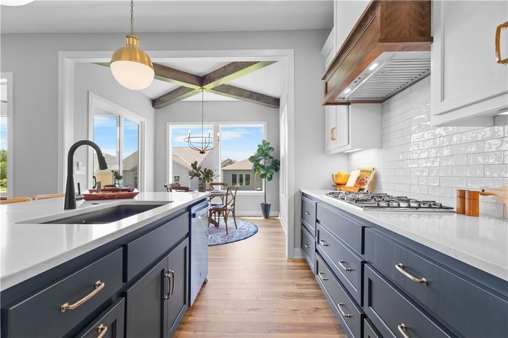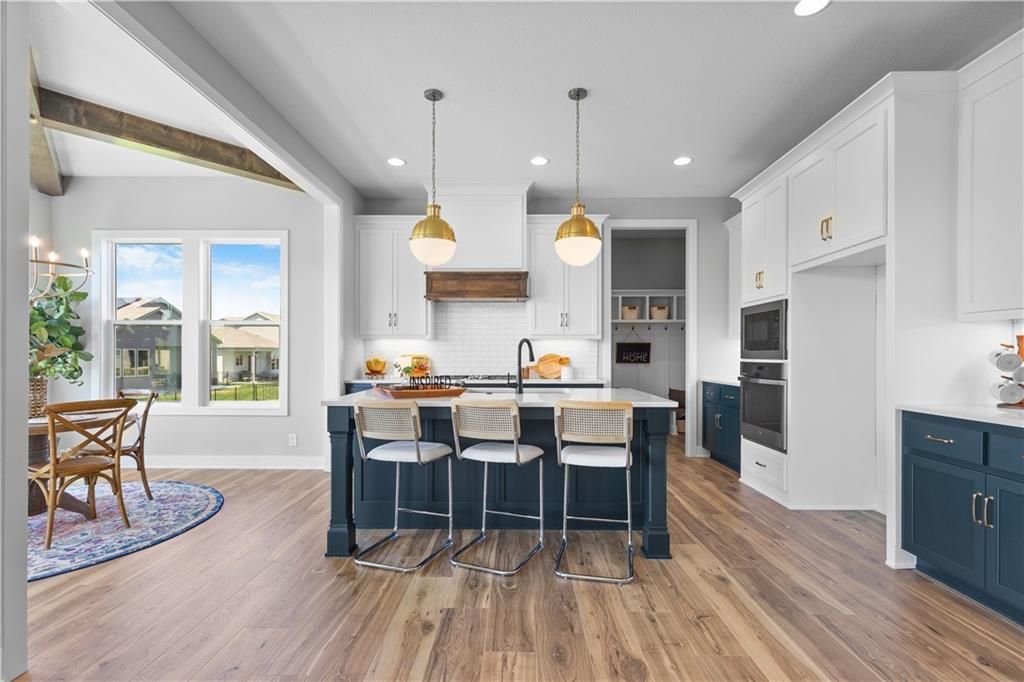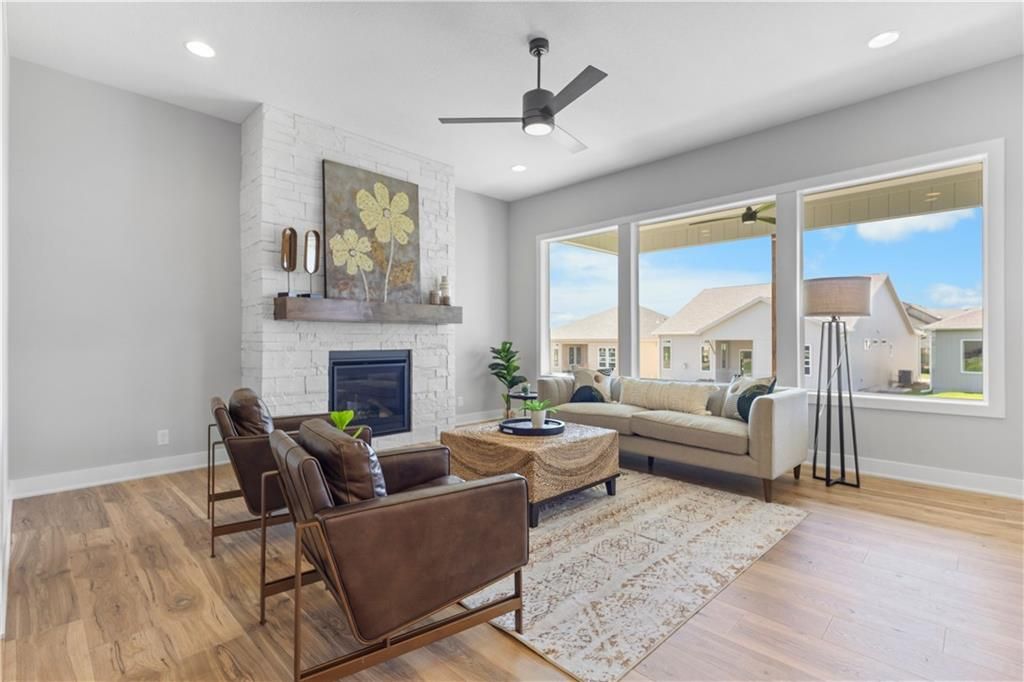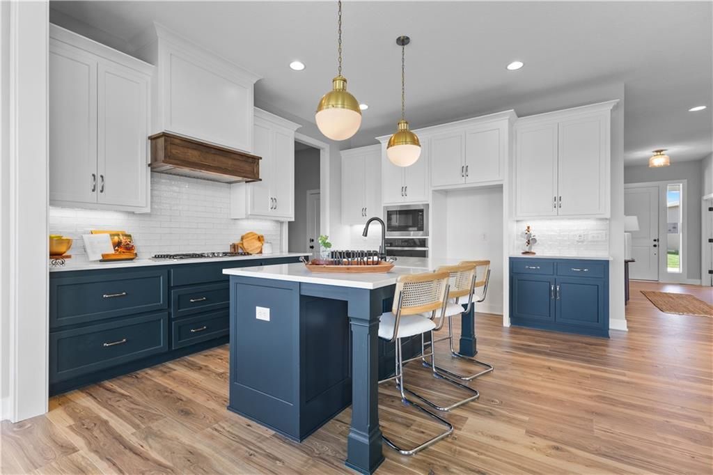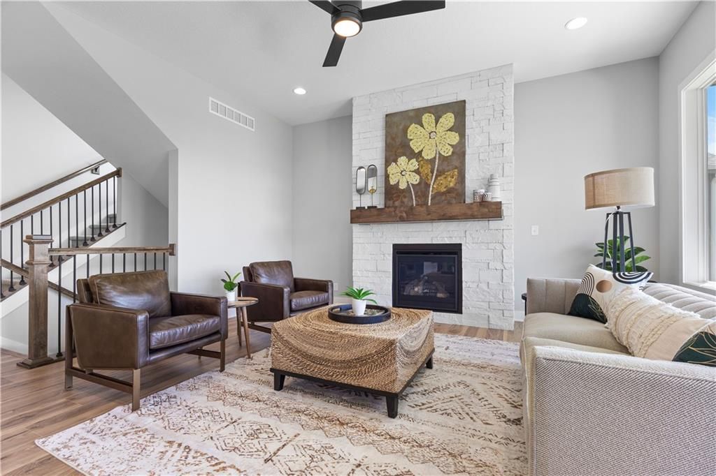 MOVE IN READY and AVAILABLE FOR A QUICK CLOSE! This MUST SEE 2-Story Inglenook with 4ft extended 2-car garage, 5 beds & 3.5 baths has everything! An open foyer with bonus flex/bedroom that is perfect for an office or guestroom. Main floor boasts 10' ceilings, warm & welcoming kitchen with gas cooktop & built-in appliances, huge island and walk-in pantry! Open floorplan concept features gorgeous floor to ceiling stone gas fireplace w/blower, oversized custom windows & 8' sliding glass door that steps out to your covered patio! Relax in your spacious master bedroom suite w/huge walk-in closet and built-in mirror! Second level also features additional 3 spacious bedrooms with walk-in closets, 2 full bathrooms, laundry room and extra storage space. Unfinished basement is stubbed for a future bathroom, wetbar and basement finish. Tons of extra design touches make this home truly special. **Pryor Ridge has a full community amenity package that includes a playground, open green space, walking trails, basketball & pickleball courts, off-leash dog park and junior-competition sized swimming pool with shade cabanas.