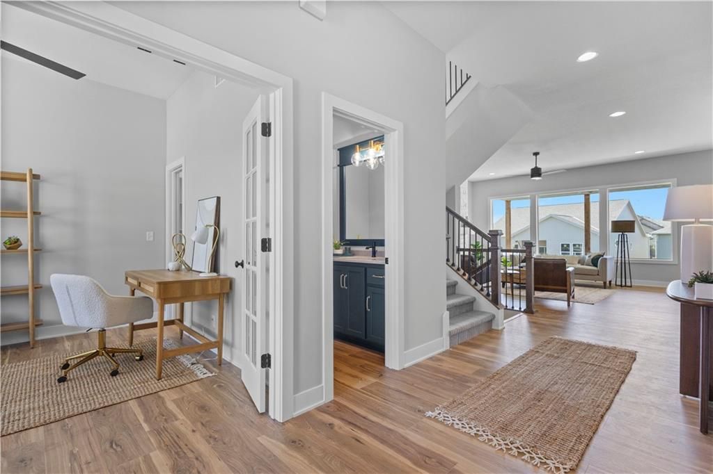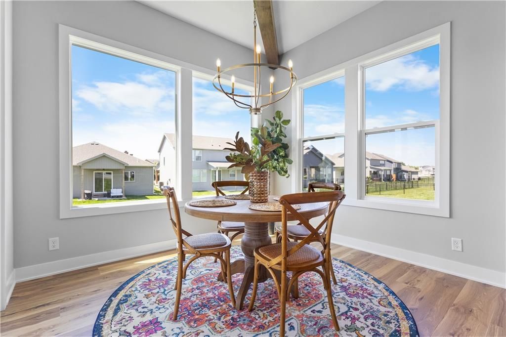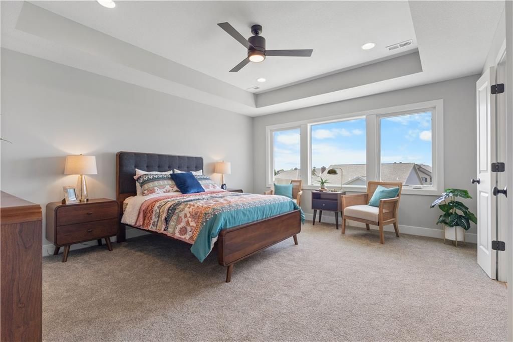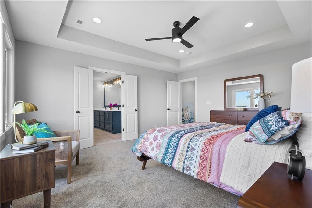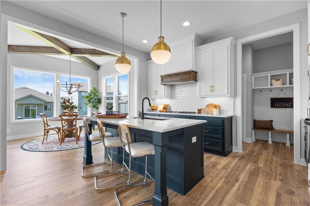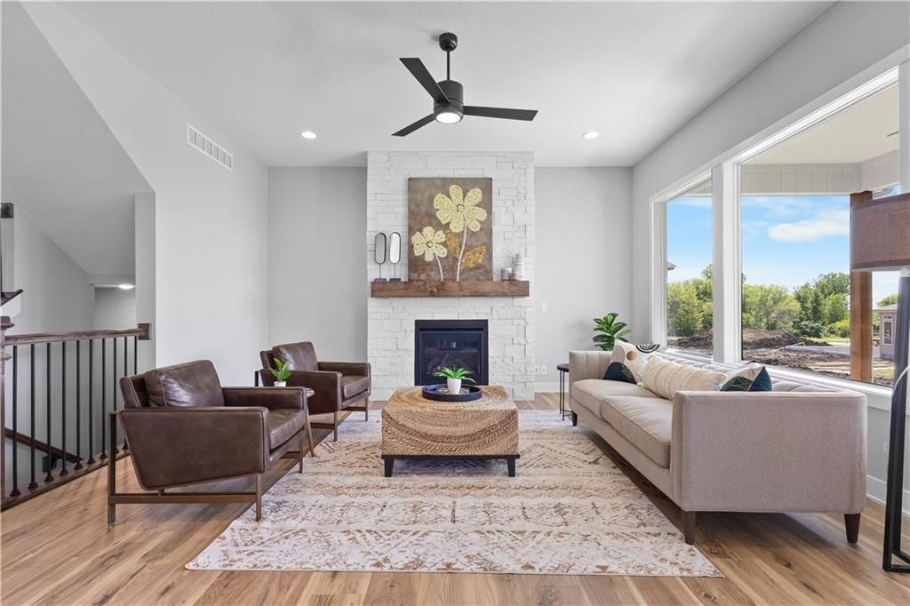 MOVE IN READY and AVAILABLE FOR A QUICK CLOSE! This MUST SEE 2-Story Inglenook with 4ft extended 2-car garage, 5 beds & 3.5 baths has everything! An open foyer with bonus flex/bedroom that is perfect for an office or guestroom. Main floor boasts 10' ceilings, warm & welcoming kitchen with gas cooktop & built-in appliances, huge island and walk-in pantry! Open floorplan concept features gorgeous floor to ceiling stone gas fireplace w/blower, oversized custom windows & 8' sliding glass door that steps out to your covered patio! Relax in your spacious master bedroom suite w/huge walk-in closet and built-in mirror! Second level also features additional 3 spacious bedrooms with walk-in closets, 2 full bathrooms, laundry room and extra storage space. Unfinished basement is stubbed for a future bathroom, wetbar and basement finish. Tons of extra design touches make this home truly special. **Pryor Ridge has a full community amenity package that includes a playground, open green space, walking trails, basketball & pickleball courts, off-leash dog park and junior-competition sized swimming pool with shade cabanas.