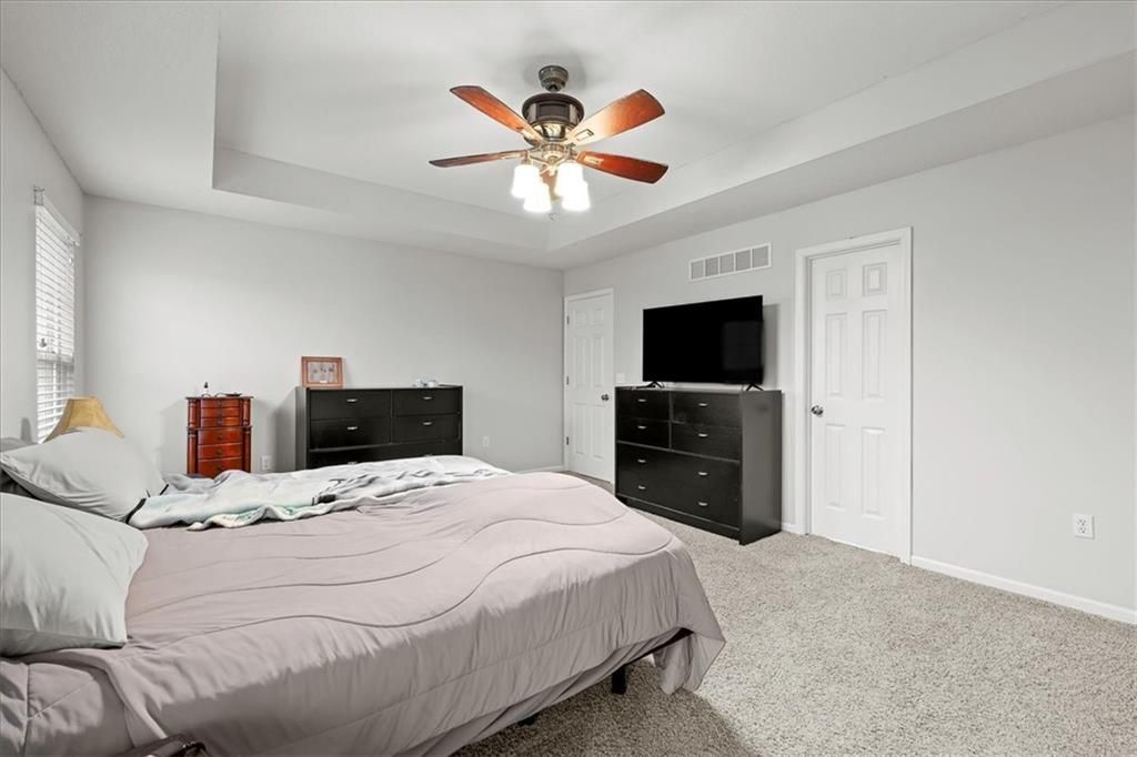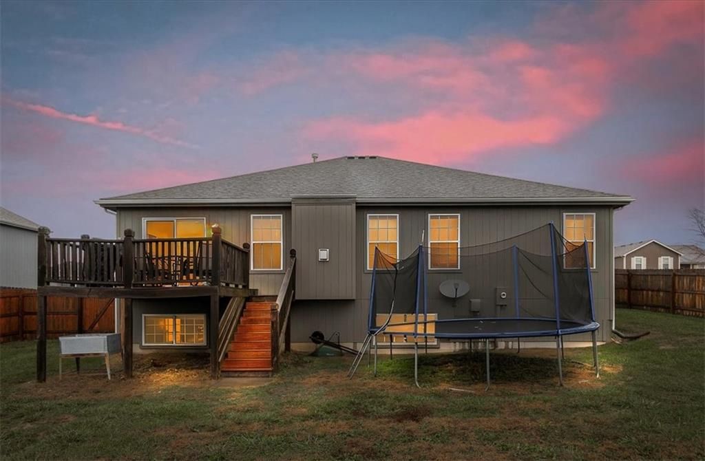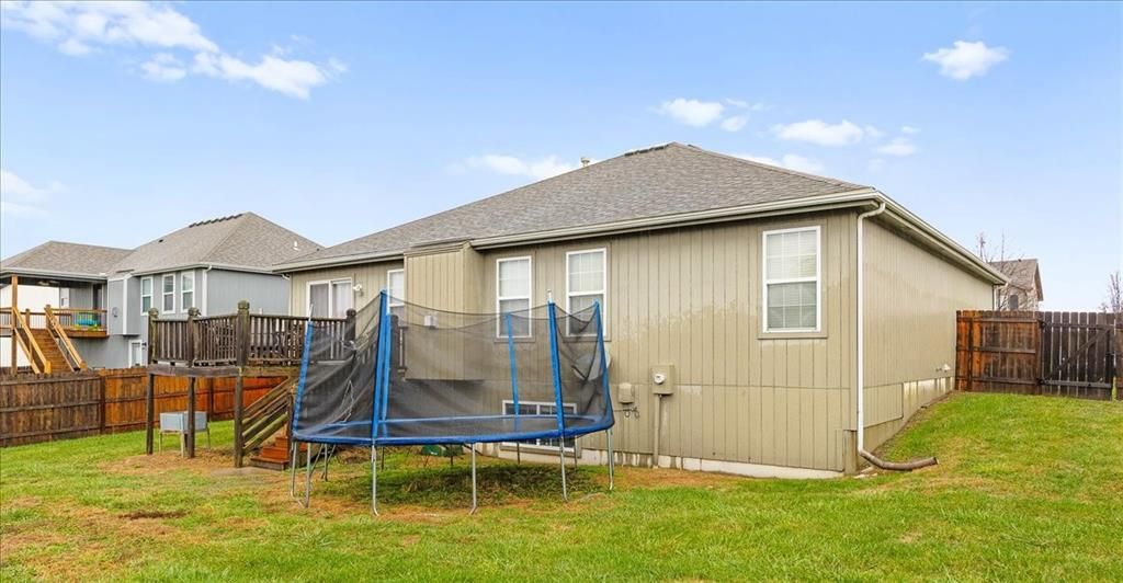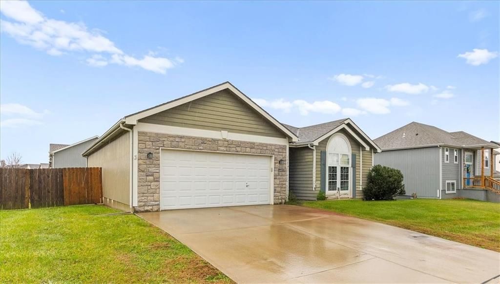 Don't miss this opportunity for a rare Ranch WITH a finished basement in Fox Ridge at Prairie Gardens! Tons of living space in this great home! Brand new paint on main level and brand new exterior paint Large living room with vaulted ceiling and gas fireplace. Three bedrooms and 2.5 baths on the main floor with generously sized bedrooms, especially the primary at 18x14! Bedrooms 2 and 3 share a Jack and Jill bathroom. Additional half bath in the hall. Kitchen boasts newer appliances and hardwood floors. Dining area has room for the table as well as a buffet or additional pantry cabinet. Sliding door to the deck and back yard. Lower Level finished with huge rec room and separate office/gaming area. Basement stubbed for additional bath. The home sits on a large corner lot with privacy fence. Neighborhood pool and acclaimed Basehor-Linwood schools!