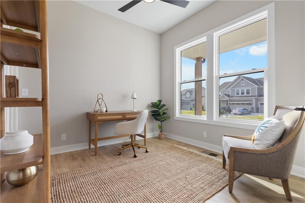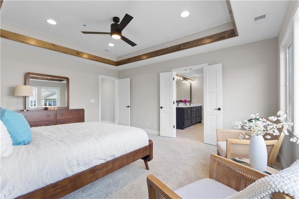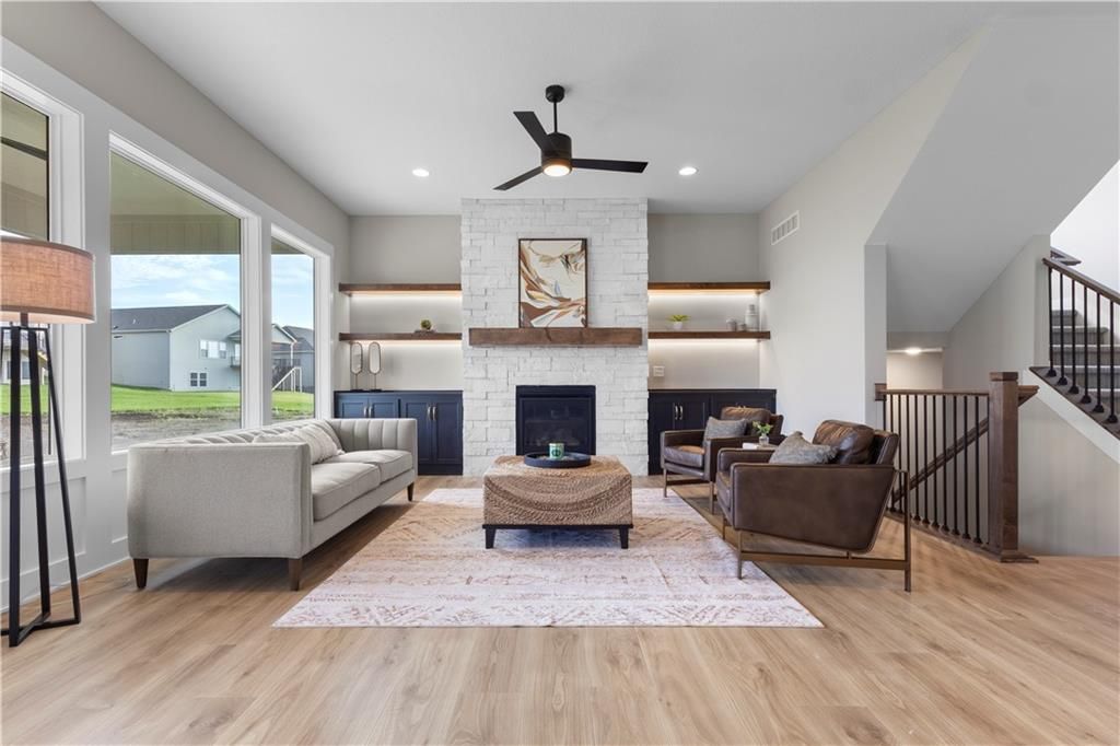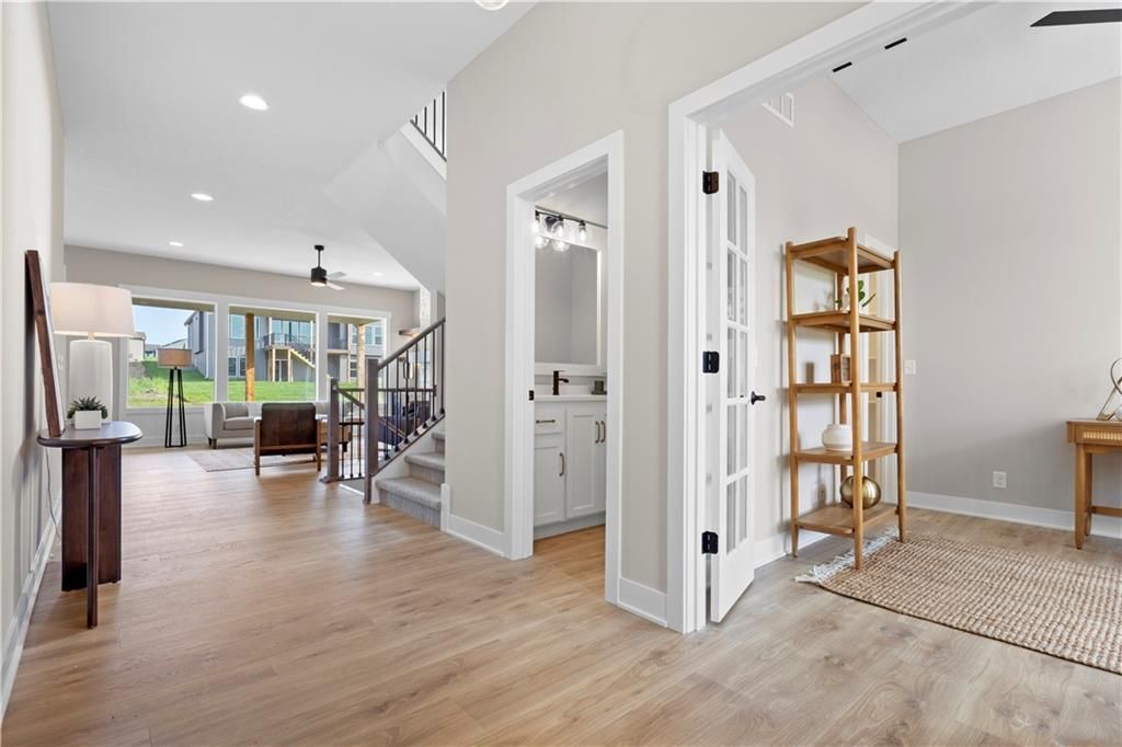 Move in Ready! The Inglenook by Inspired Homes features a stunning Modern farmhouse exterior, oversized porch and black metal roofing. Large flat lot and yard is perfect for evening BBQ's on your perfectly large, covered patio. Unique and fantastic layout with all of the rooms you are looking for. Glass doors as you enter your home office with walk-in closet to store all of your office paperwork. Office can double as main floor 5th bedroom. Main floor features 10 ft ceilings and large picture windows. Large kitchen with high end finishes, quartz counters, built in appliances with gas cooktop, upgraded lighting, under counter lighting, oversized walk-in pantry and opens to and even larger great room that features custom built in's next to fireplace. To die for breakfast room with panoramic views and custom X-beam ceiling detail. Rare and oversized 3 car garage fits your TRUCK or LARGE SUV! 2nd floor is equally as impressive. Large bedrooms on second floor all featuring walk in closets. Master suite with high end master bath and closet and convenient 2nd floor laundry. This home has many upgraded features and is at an incredible value. Unfinished basement is ready for a future finish with stubs for a bathroom and wetbar! Pryor Ridge Community offers its homeowners a sparkling jr-competition sized pool, playground, basketball & pickleball courts, off-leash dog park, open green space and walking trails....all within a convenient and close location to shopping, restaurants, grocers, entertainment and highway access!