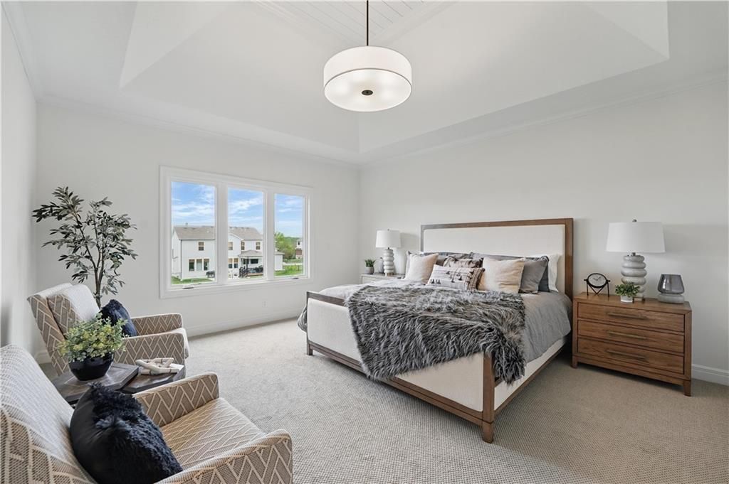 Model home now for sale! Welcome to your dream home! This stunning 5-bedroom, 4-bathroom reverse story and a half residence offers a perfect blend of modern luxury and comfortable living. With the primary bedroom conveniently located on the main level, this home caters to your every need. Step inside and be captivated by the spacious and open floor plan that invites natural light to flow throughout. The heart of the home is the well-appointed kitchen, boasting sleek countertops, premium appliances, and ample cabinet space. It's a chef's delight! The main level also features a cozy living room, perfect for gatherings, and a dining area that leads to a covered deck, providing a delightful space for outdoor entertaining and relaxation. Head downstairs to the finished lower level, where you'll discover a versatile space that can serve as an entertainment hub, a home office, or a guest suite. The wet bar area adds a touch of sophistication and convenience for your entertainment needs. The lower level opens to a walkout patio, extending your indoor living space. With 5 generously sized bedrooms, everyone in the family can have their own space, and the 4 bathrooms ensure that morning routines run smoothly. This home is ideally situated in a desirable neighborhood, close to schools, parks, and shopping. The Reserve at Woodside Ridge offers a convenient location to highway access, shopping centers, and the Rock Island Trail. The amenities complex features: a club house, pool, pickleball court, hammock garden, and playground area. The HOA dues also include trash, recycling, and paved walking trails.