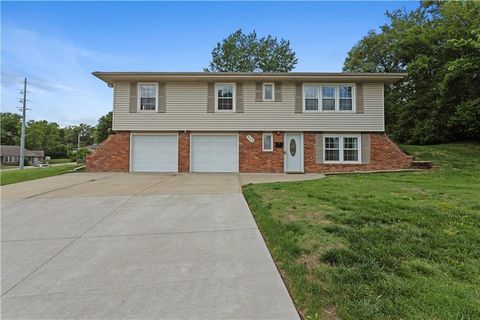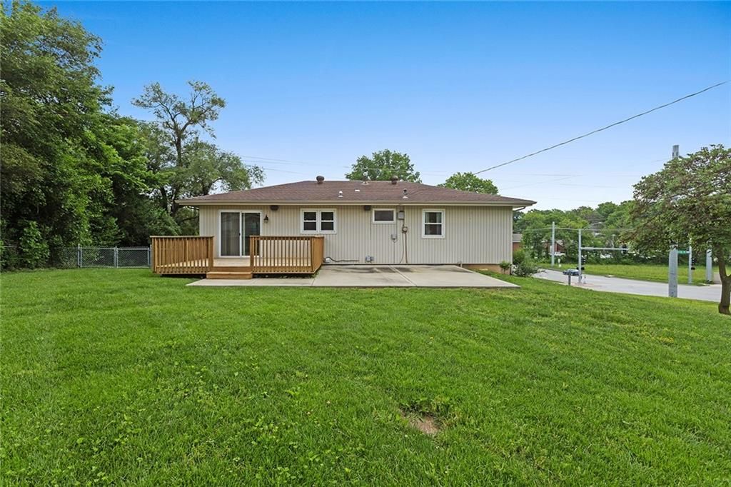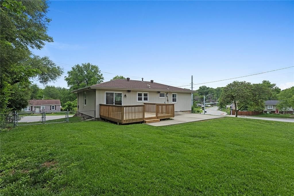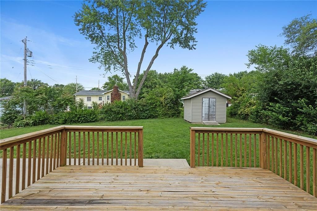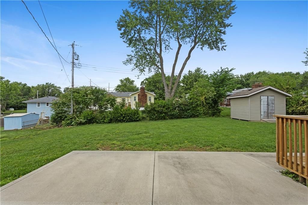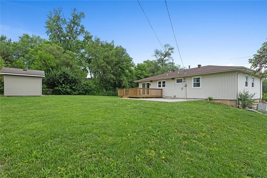 Step into this charming maintained 3-bedroom home, featuring wood floors throughout most of the main level. The spacious living room offers ideal space that flows into a generous dining area. The kitchen offers stainless steel appliances, convenient pull-out drawers, and ample cabinet space - perfect for everyday living and entertaining. The main level bathroom is updated with stylish tile and new countertop. From the dining area step outside to a spacious 16' x 14' deck overlooking a generous extended patio area, ideal for gatherings. Enjoy the benefits of newer vinyl windows, a newer water heater, and a finished walkout lower level complete with a half bath - ideal for a family room, home office, or guest space. A shed offers additional storage, and there is also partial fencing of the yard. The extra-wide driveway provides ample parking, and the location can't be beat - just minutes from scenic parks with walking trails, popular restaurants, and shopping. Just minutes from the historic downtown Lee's Summit shopping area! Don't miss out on this gem in a prime location!