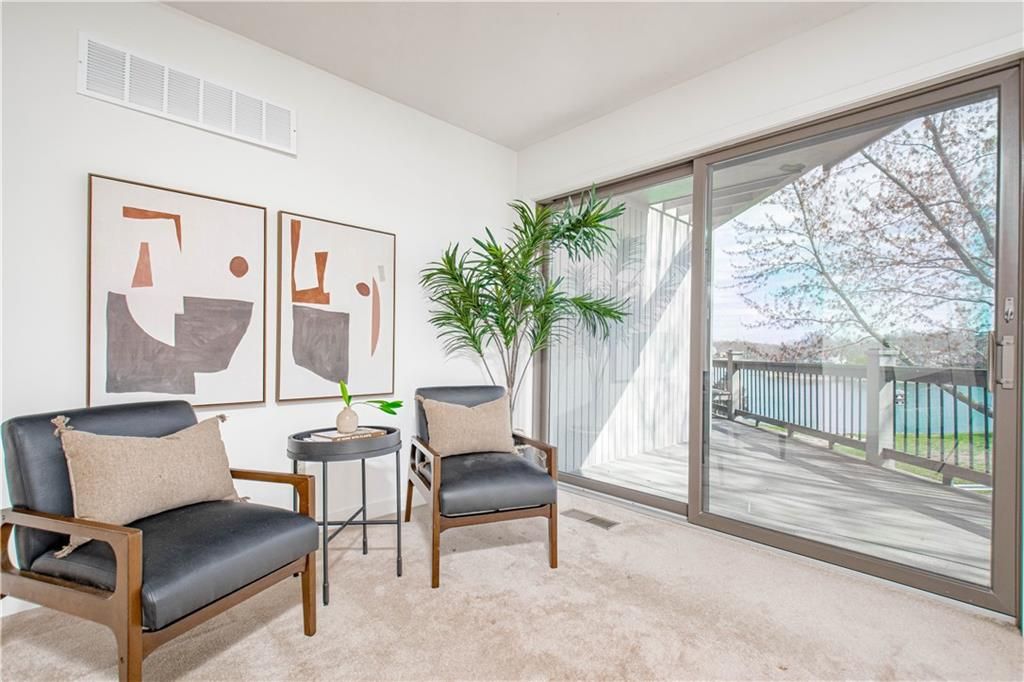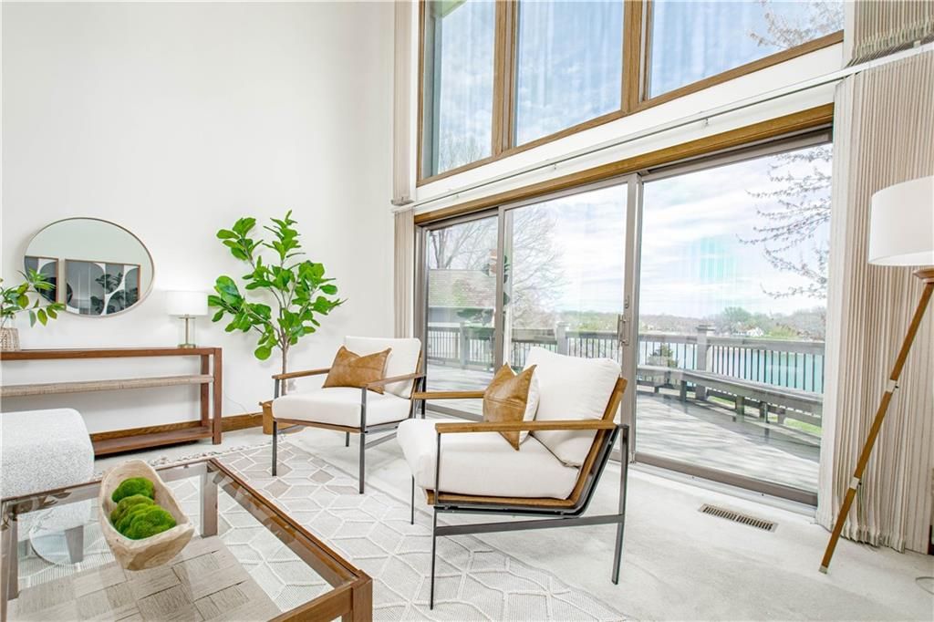 Amazing Mid-Century Modern 4 bedroom, 3 full & 2 half bath lake home is designed to take full advantage of the breathtaking adjoining green space and waterfront setting. Sitting by the shores of the lake, every room along the back of the house boasts uninterrupted lake views, creating a seamless connection between indoor & outdoor living. Step inside to 2 story ceilings that enhance the living, dining, kitchen and hearth rooms all offering panoramic views of the lake. The floor plan is perfect for everyday living, with large windows that flood the home w/ natural light. Wake up to gorgeous views of the lake. The primary bedroom and bath, offer a walk-in closet, heated floors, double vanity, soaker/air tub and separate shower. 3 bedrooms and a full bath upstairs, with a wonderful loft/office open area with more gorgeous views of the lake. The finished basement w/ full kitchen, full bath and a bonus room, walks out to a covered patio. Continue walking directly out to your backyard and the water's edge, making lake access effortless. Whether you're launching a kayak, fishing off the shore, or simply enjoying the scenery, this home embodies lake life at its finest. Expansive deck stretches across the back of the house, a perfect spot to unwind, enjoy coffee or host a sunset gathering. 3 car garage offers room for vehicles and water toys. Zoned heating and cooling. Lots of storage space in the walk-in attic, cedar closet and basement. 2X6 construction, home is very well insulated. A unique home like no other! It s ready for you to make your own changes or enjoy it just like it is. For HOA Governing Docs, go to: LPOA.com Sq Ft per public record to be verified by Buyer or Buyer Agent.