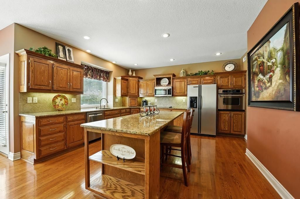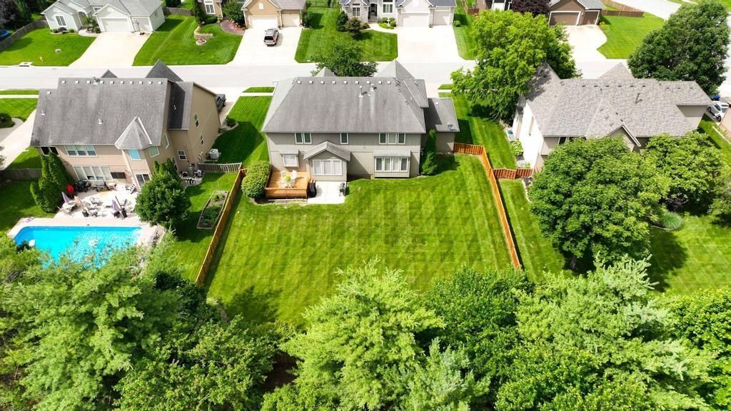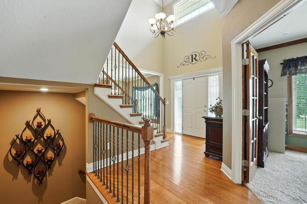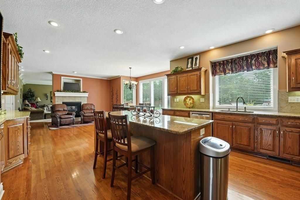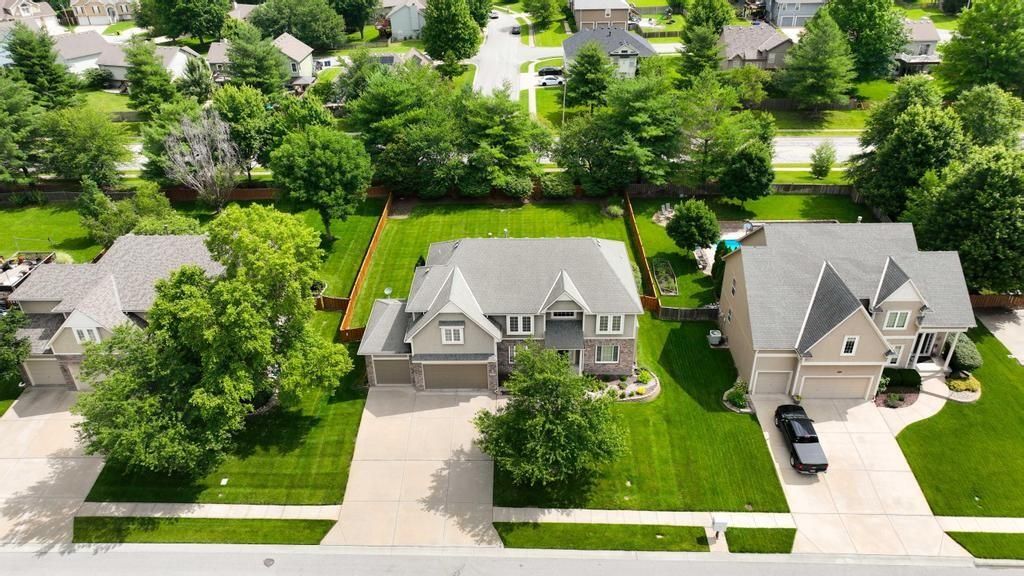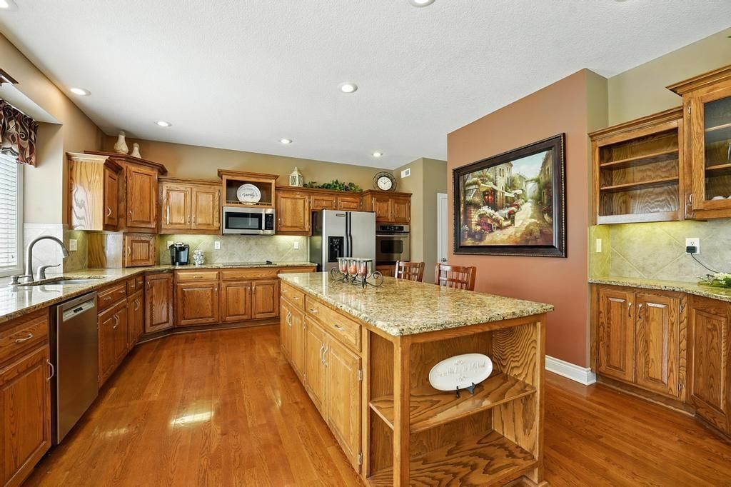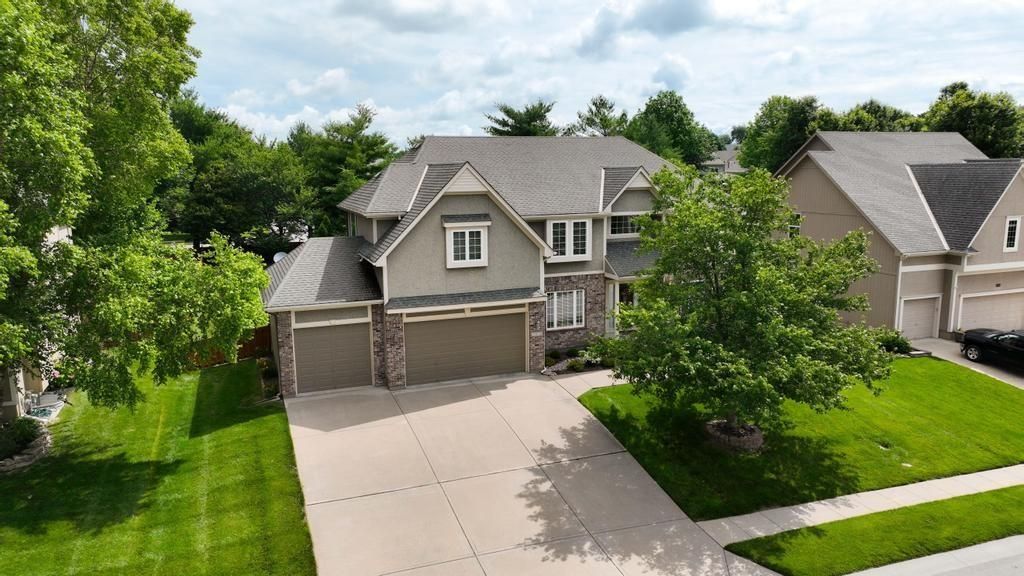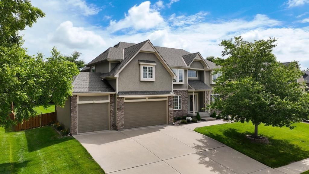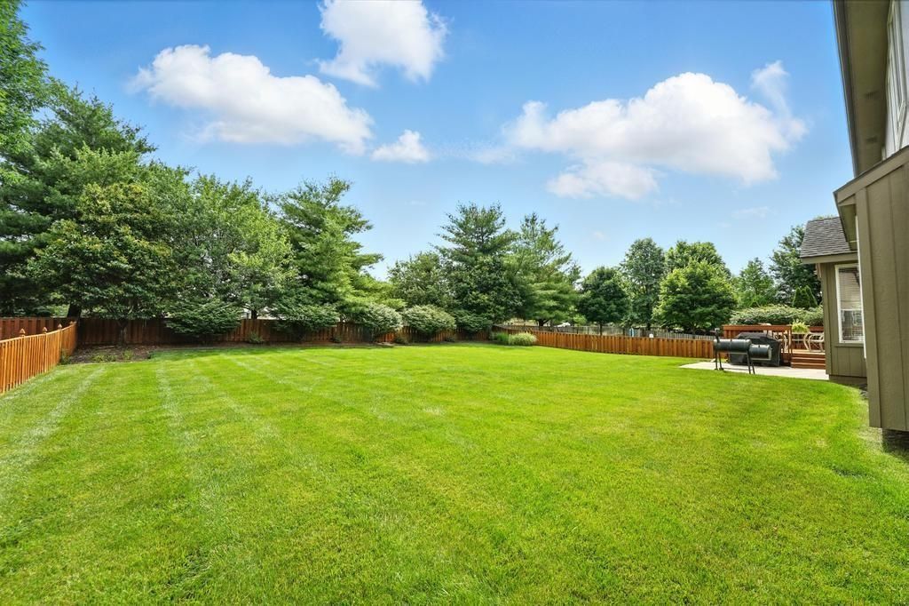 Exceptional 2 Story home on gorgeous lot offers 5 large bedrooms & 4 1/2 bathrooms over 4200 sqft of finished living space! Established lawn & landscape are low maintenance. Welcoming front porch opens to 2 story entry w/wood floors leading to open plan. Private office with glass French doors to the left, formal dining to the right of entry. Large great room has wall of windows, see thru fireplace to spacious hearth room kitchen. Ideal for gatherings, the hearth room is cozy with sunny breakfast room, built-in buffet with granite top & glass front upper cabinets, large island in kitchen offers more informal seating & tons of workspace with ample cabinets around perimeter with pantry. Wide staircase leads to 2nd floor bedrooms & large laundry. Primary suite has luxury bath and incredible walk-in closet, vaulted ceilings, separate vanities, extensive trim. Guest suite has vaulted ceiling, walk-in closet & private bath. 2 additional bedrooms have separate vanities, walk-in closets & share tub/shower. Laundry room offers plenty of space for ironing, sewing, storage. Lower level is over 1400 sqft, with great layout. Family room has daylight window & built ins, separate area is ideal for game room-pingpong or pool table, with custom built ins along 1 wall. 5th bedroom & 4th full bath are ideal for guests. Ample unfinished storage space as well. The garage is also oversized, 31.4' wide x 23' deep! Garage doors are 8' tall and insulated. Plenty of space for workbench, shelves, outdoor toys. Off the breakfast room is a large deck with just a couple of steps down to patio & level yard with shadowbox fence & mature trees & landscape.