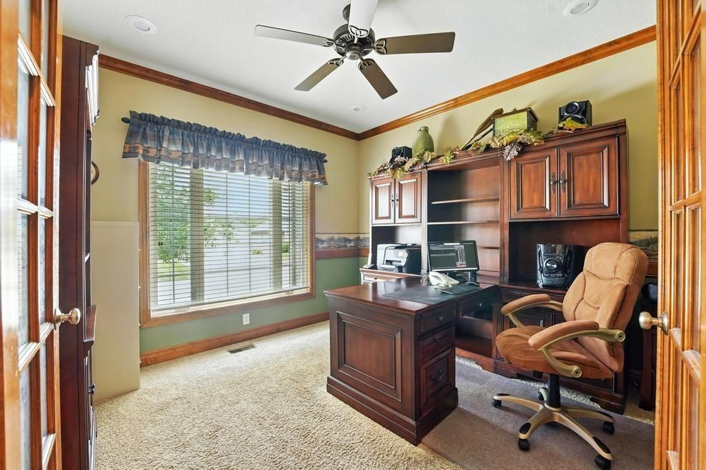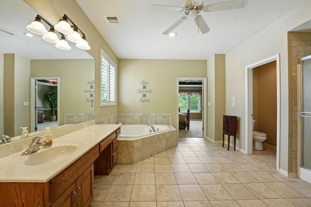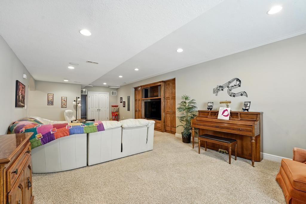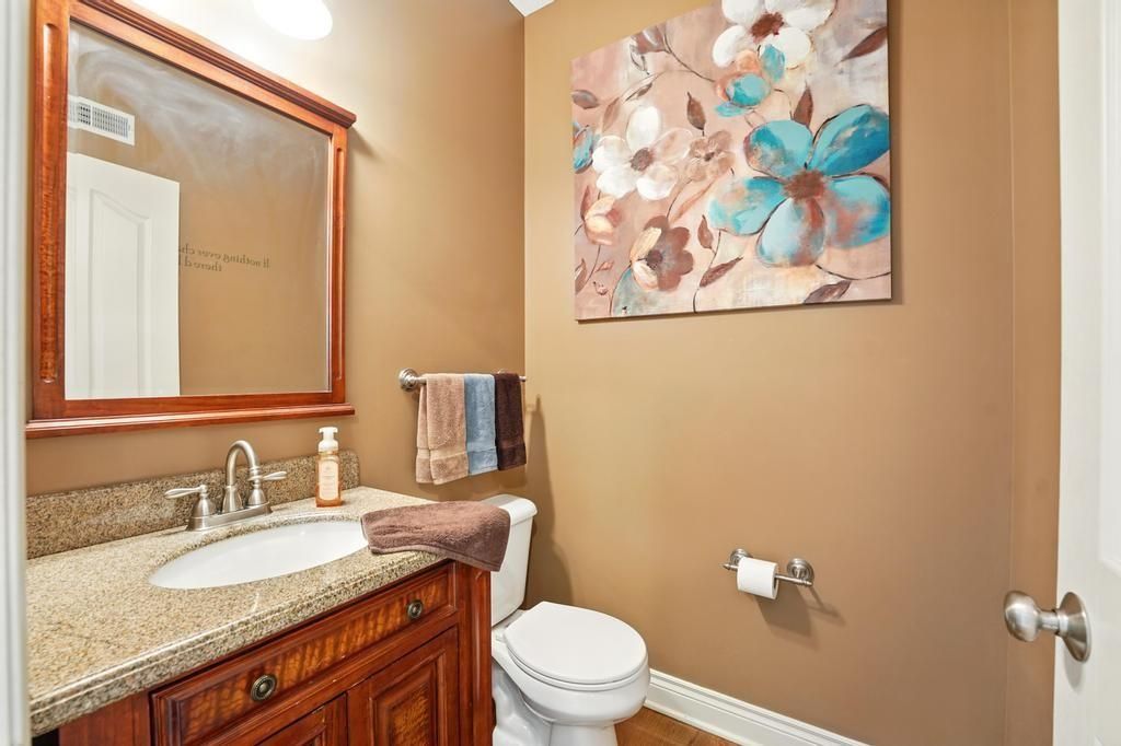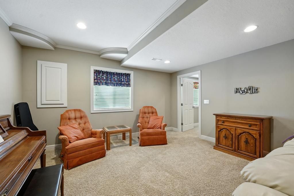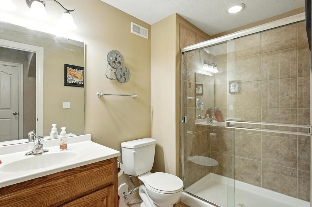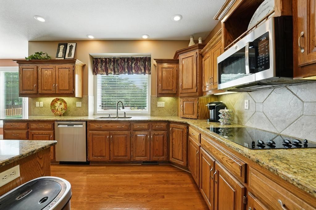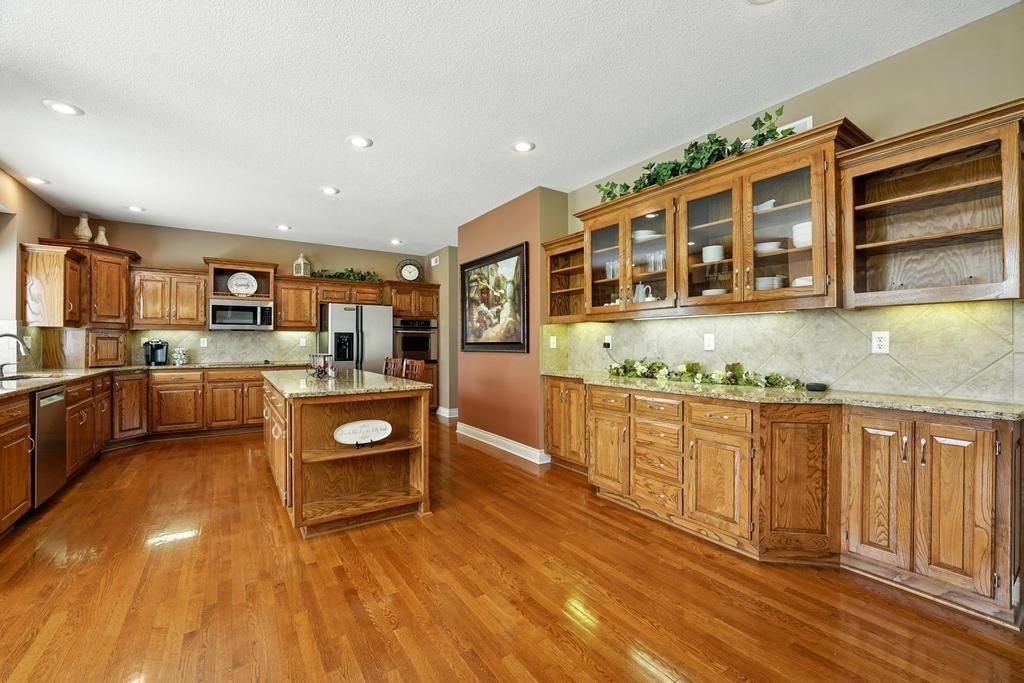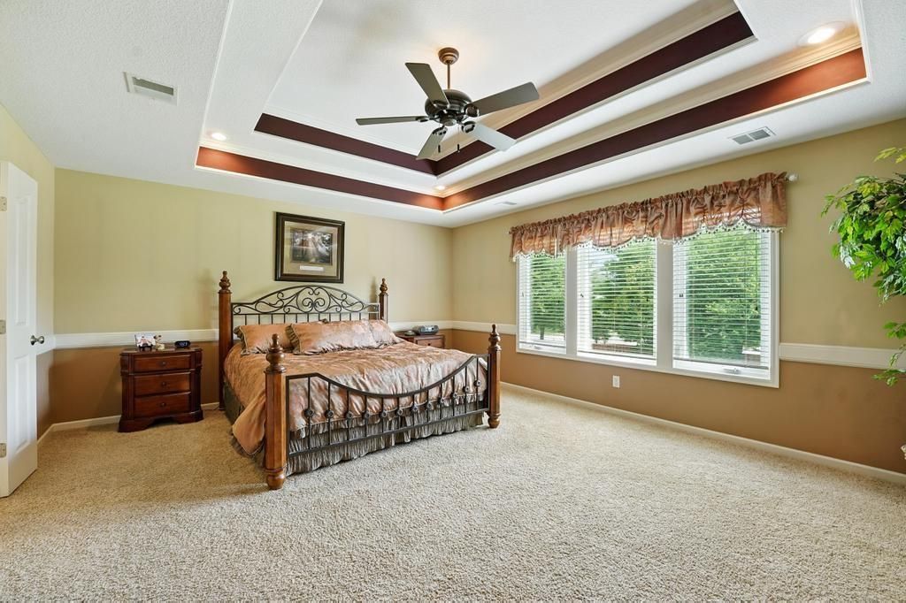 Exceptional 2 Story home on gorgeous lot offers 5 large bedrooms & 4 1/2 bathrooms over 4200 sqft of finished living space! Established lawn & landscape are low maintenance. Welcoming front porch opens to 2 story entry w/wood floors leading to open plan. Private office with glass French doors to the left, formal dining to the right of entry. Large great room has wall of windows, see thru fireplace to spacious hearth room kitchen. Ideal for gatherings, the hearth room is cozy with sunny breakfast room, built-in buffet with granite top & glass front upper cabinets, large island in kitchen offers more informal seating & tons of workspace with ample cabinets around perimeter with pantry. Wide staircase leads to 2nd floor bedrooms & large laundry. Primary suite has luxury bath and incredible walk-in closet, vaulted ceilings, separate vanities, extensive trim. Guest suite has vaulted ceiling, walk-in closet & private bath. 2 additional bedrooms have separate vanities, walk-in closets & share tub/shower. Laundry room offers plenty of space for ironing, sewing, storage. Lower level is over 1400 sqft, with great layout. Family room has daylight window & built ins, separate area is ideal for game room-pingpong or pool table, with custom built ins along 1 wall. 5th bedroom & 4th full bath are ideal for guests. Ample unfinished storage space as well. The garage is also oversized, 31.4' wide x 23' deep! Garage doors are 8' tall and insulated. Plenty of space for workbench, shelves, outdoor toys. Off the breakfast room is a large deck with just a couple of steps down to patio & level yard with shadowbox fence & mature trees & landscape.
