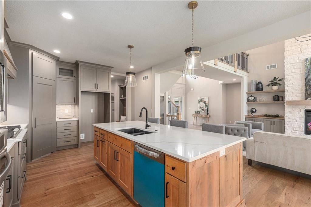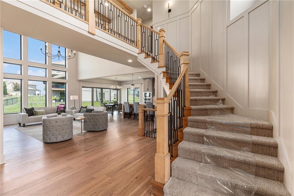 Move in ready and staged, Walker Custom Homes 1.5 Story plan offers exceptional design with lots of open space and nice room sizes. Soaring great room ceilings with floor to ceiling windows and beautiful fireplace. Kitchen with oversized island, tile upgrades and stainless appliances. Luxurious master suite with double vanity, shower, & huge walk-in closet. Access to the laundry room from the master closet. Upper level features catwalk overlooking great room with 4 bedrooms and 2 full baths. Daylight lower level is ready for a future finish that could include family room, 6th bedroom and another full bath. Home has covered patio and lawn irrigation system. Attention to detail and upgrades throughout the home!