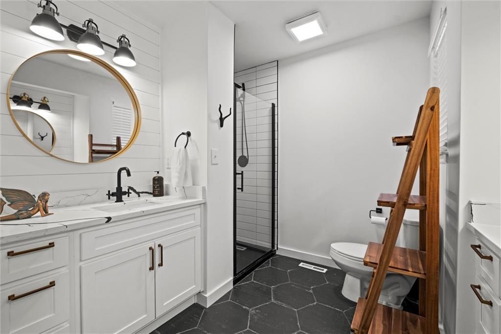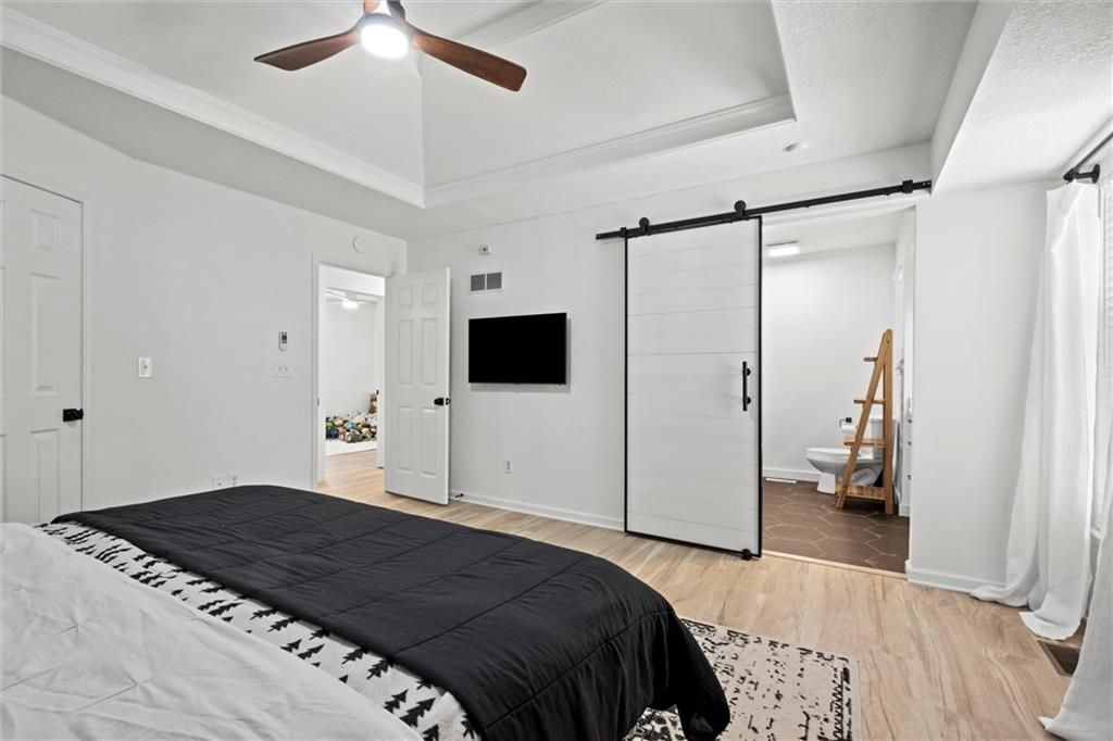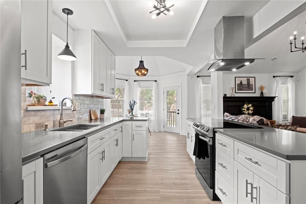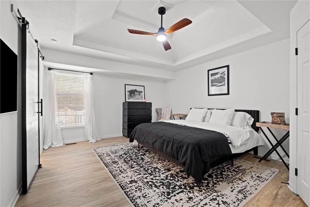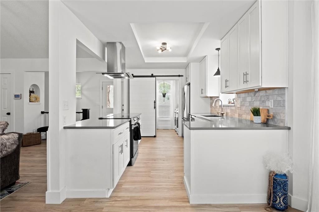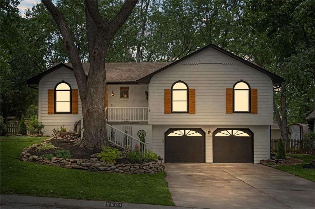 Located in the award-winning Blue Springs School District and just a short walk to top-rated (8/10) Lucy Franklin Elementary and Brittany Hill Middle School, this beautifully renovated home offers modern updates in a prime location. You're also less than 5 minutes from Burr Oak Woods Conservation Area walking trails, and just 10 minutes from Coronado Shopping Center with Target, Kohl's, Old Navy, and more. Inside, you'll find 1,983 square feet of bright, stylish living space with 3 bedrooms and 3 full bathrooms. The entire home has been thoughtfully updated from top to bottom and is truly move-in ready. You'll love the brand-new luxury vinyl plank flooring, fresh interior and exterior paint, designer lighting, and the completely reimagined primary suite with a walk-in closet and spa-like ensuite bath. The kitchen blends function and style with neutral countertops, a sleek backsplash, modern hardware, and a charming sliding barn door that adds character. All three bathrooms feature clean, cohesive finishes that feel fresh and timeless. The spacious primary suite has been redesigned to feel like your own personal retreat, filled with natural light and thoughtfully designed for comfort. It features a large walk-in closet with plenty of room for storage and organization. The master bathroom has been fully renovated with modern tilework, his and her modern vanities, updated fixtures, and a walk-in shower that brings a spa-like feel right into your daily routine. Downstairs, the finished basement offers a versatile second living area, two storage spaces, and a full bathroom. Perfect for guests, hobbies, or a bonus hangout spot. The oversized garage, newly painted and approx. 575 sq ft, provides plenty of extra room for storage, projects, or even a home gym. Step outside to enjoy a freshly painted 504-square-foot deck that offers a great space for entertaining. With its amazing curb appeal, modern aesthetic, and neutral tones, this home is a beautiful fit for any style.