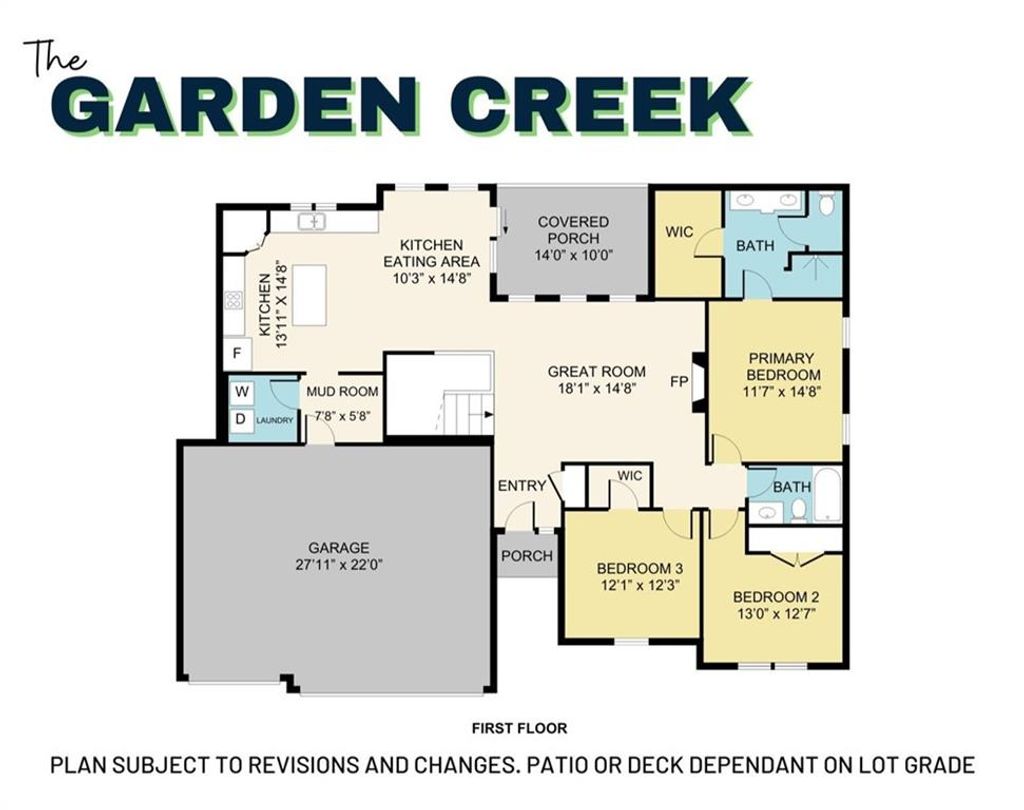 The Garden Creek is a beautifully designed 4-bedroom, 3-bath, 3-car garage, ranch-style home featuring a spacious open layout that's perfect for both everyday living and entertaining guests. The main level flows effortlessly from the living room to the large kitchen, which boasts plenty of countertop space and a convenient corner pantry to keep everything organized. Whether you're hosting family dinners or casual get-togethers, the open floor plan makes it easy to connect with everyone. When it's time to unwind, the finished basement offers a second living area - ideal for movie nights, a playroom, or a quiet retreat. With its smart design and comfortable flow, the Garden Creek has everything you need to feel right at home!
