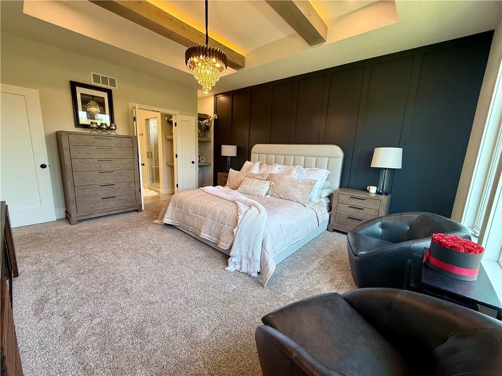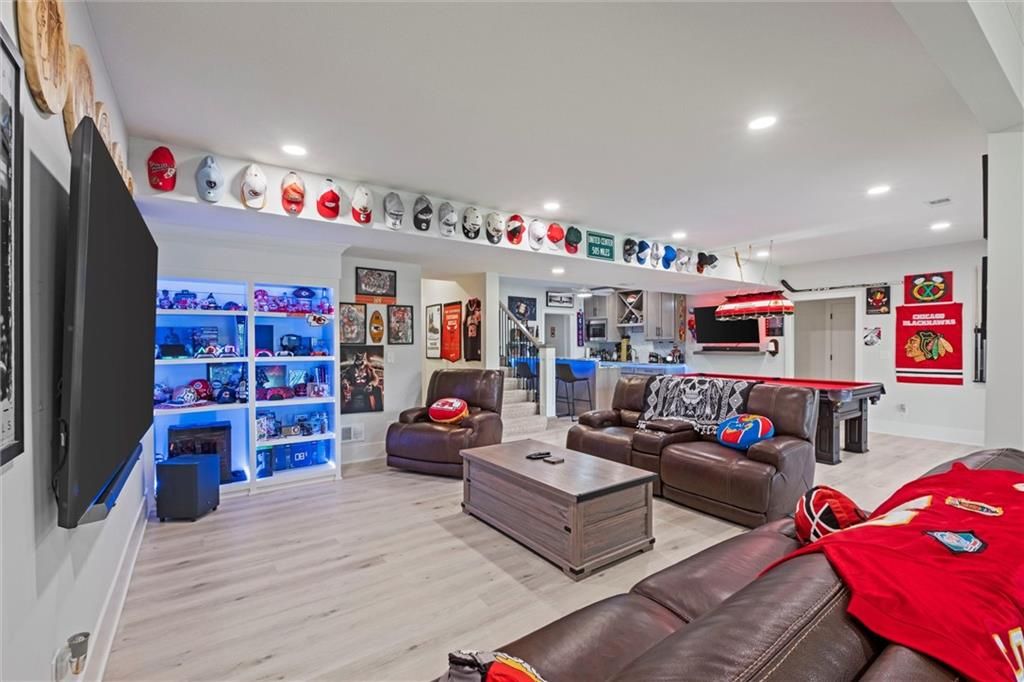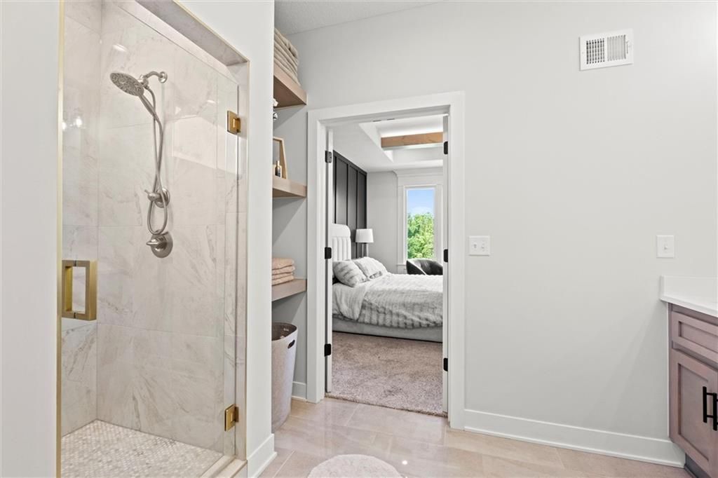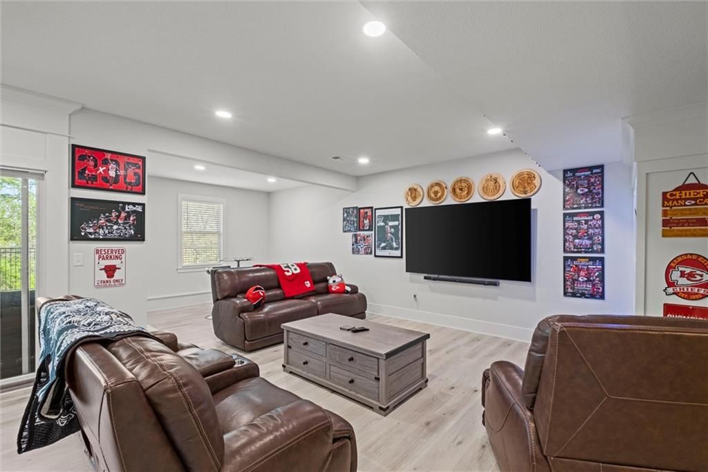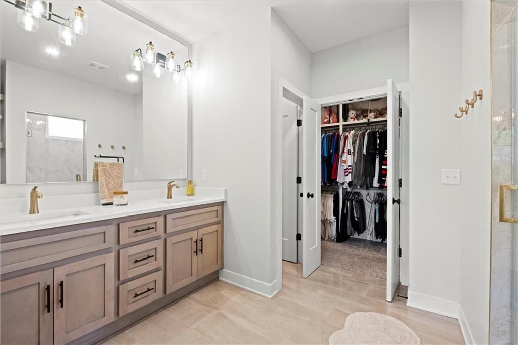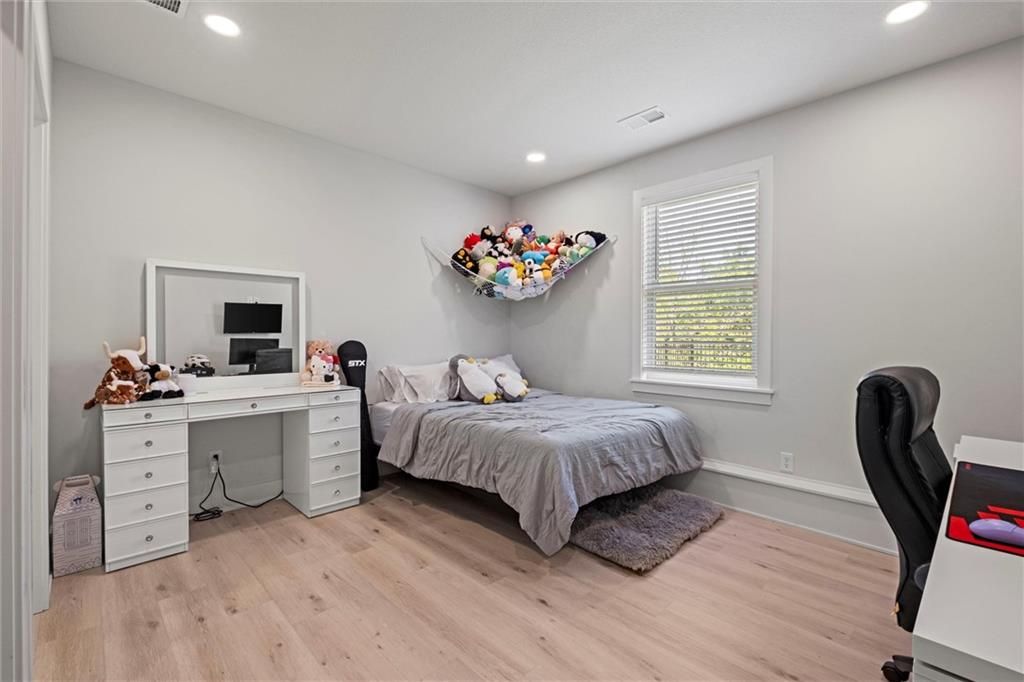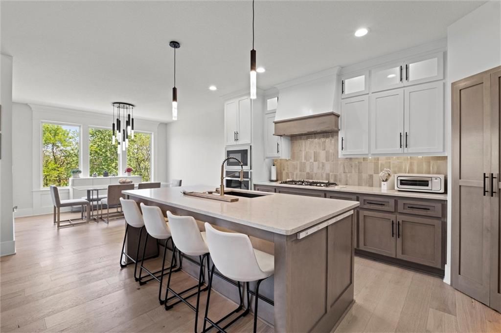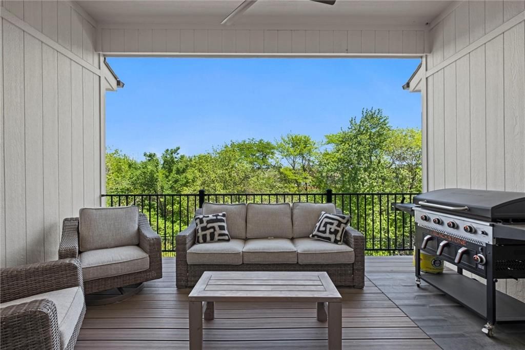 Motivated Sellers - Ready for a New Owner! This move-in-ready home has it all - privacy, beautiful finishes, and a peaceful setting backing to wooded greenspace, a creek, and a 23-acre nature park. Sellers are motivated and have priced this home to sell quickly! Inside, you'll love the spacious great room with 13' ceilings, exposed beams, soft lighting, a cozy fireplace, and a wall of windows with 8' sliders leading to a large covered deck. The kitchen is perfect for cooking and entertaining with a gas range, oversized island, upgraded lighting, and a roomy walk-in pantry, all opening to a dining area with backyard views. The primary suite offers a beamed ceiling, a spa-like bathroom with double vanities, a tiled shower with rainforest head, and a large L-shaped walk-in closet with built-ins. There's also a second main-floor bedroom with its own walk-in closet, plus a combined laundry and office space with a built-in desk right off the garage. The finished walkout lower level is an entertainer's dream, featuring a huge rec room with a wet bar and microwave, a full second kitchen, a half bath, and two more bedrooms - each with its own vanity - sharing a Jack-and-Jill bath. Luxury vinyl plank flooring runs throughout (no carpet). Enjoy the outdoors from the covered patio overlooking the creek - the property extends beyond the water for extra space and privacy. Neighborhood perks include 2 stocked ponds, 1.8 miles of walking trails, a playground, and 26 acres of preserved greenspace.