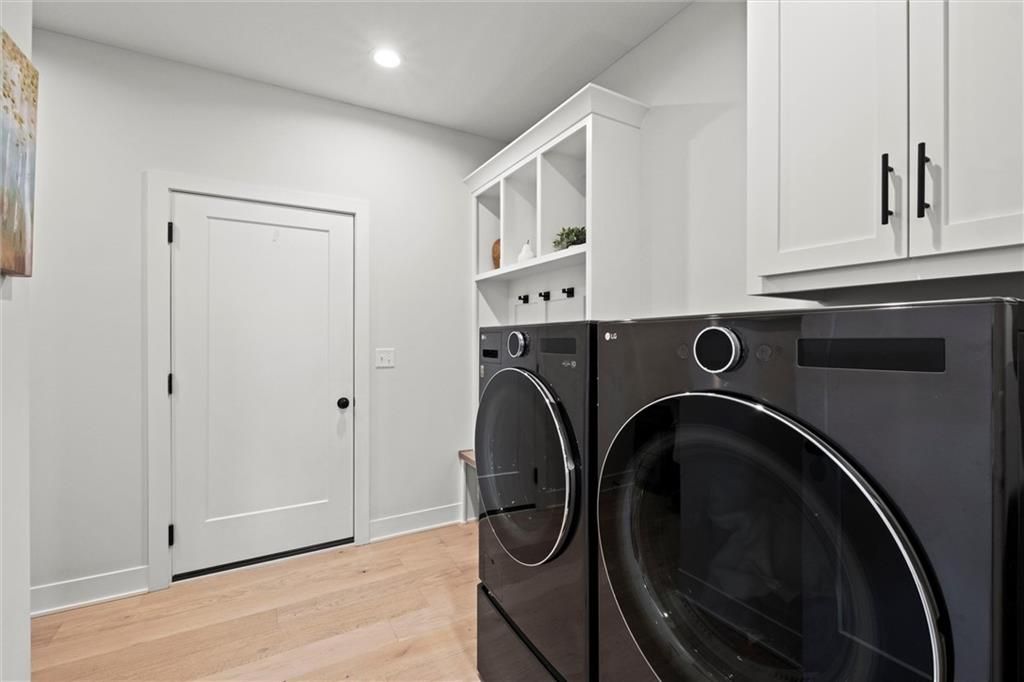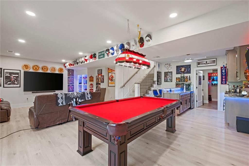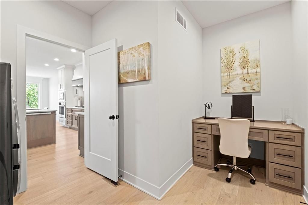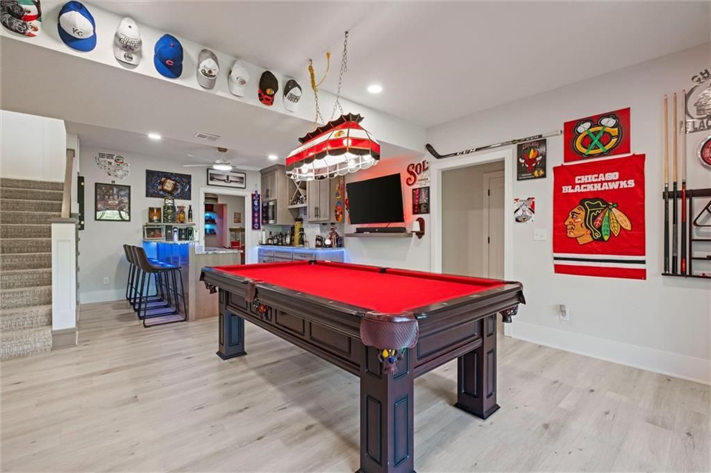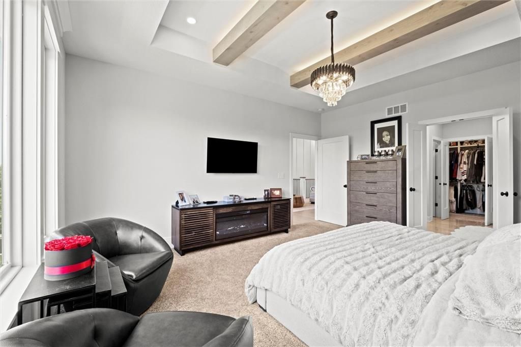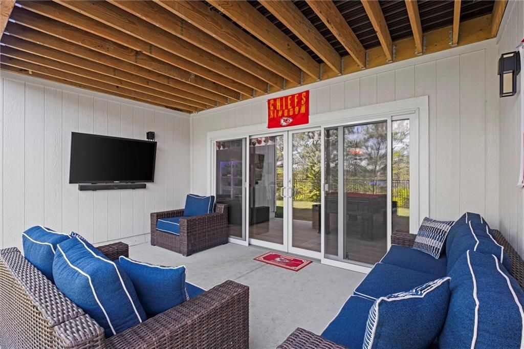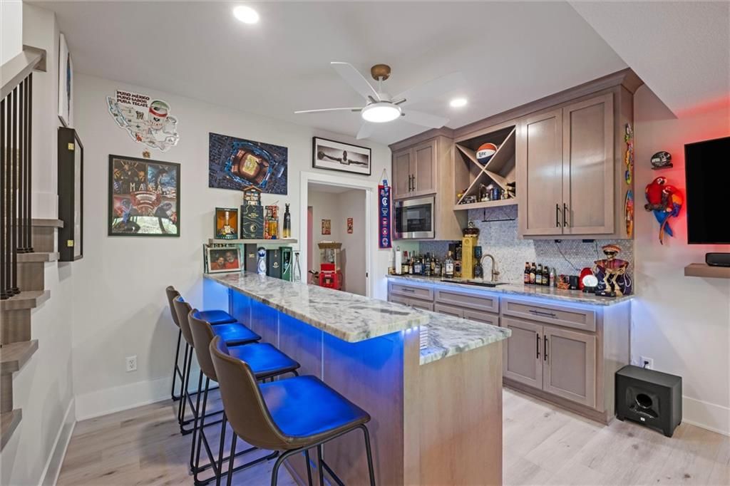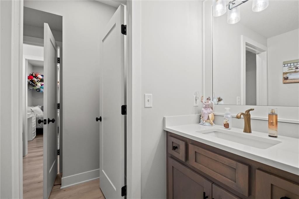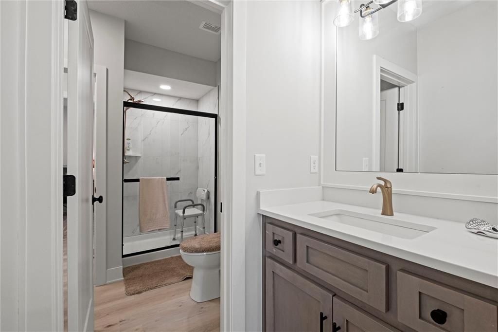 Motivated Sellers - Ready for a New Owner! This move-in-ready home has it all - privacy, beautiful finishes, and a peaceful setting backing to wooded greenspace, a creek, and a 23-acre nature park. Sellers are motivated and have priced this home to sell quickly! Inside, you'll love the spacious great room with 13' ceilings, exposed beams, soft lighting, a cozy fireplace, and a wall of windows with 8' sliders leading to a large covered deck. The kitchen is perfect for cooking and entertaining with a gas range, oversized island, upgraded lighting, and a roomy walk-in pantry, all opening to a dining area with backyard views. The primary suite offers a beamed ceiling, a spa-like bathroom with double vanities, a tiled shower with rainforest head, and a large L-shaped walk-in closet with built-ins. There's also a second main-floor bedroom with its own walk-in closet, plus a combined laundry and office space with a built-in desk right off the garage. The finished walkout lower level is an entertainer's dream, featuring a huge rec room with a wet bar and microwave, a full second kitchen, a half bath, and two more bedrooms - each with its own vanity - sharing a Jack-and-Jill bath. Luxury vinyl plank flooring runs throughout (no carpet). Enjoy the outdoors from the covered patio overlooking the creek - the property extends beyond the water for extra space and privacy. Neighborhood perks include 2 stocked ponds, 1.8 miles of walking trails, a playground, and 26 acres of preserved greenspace.