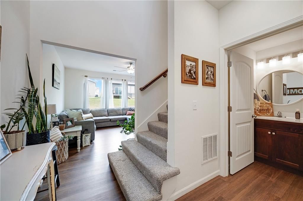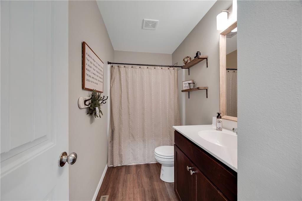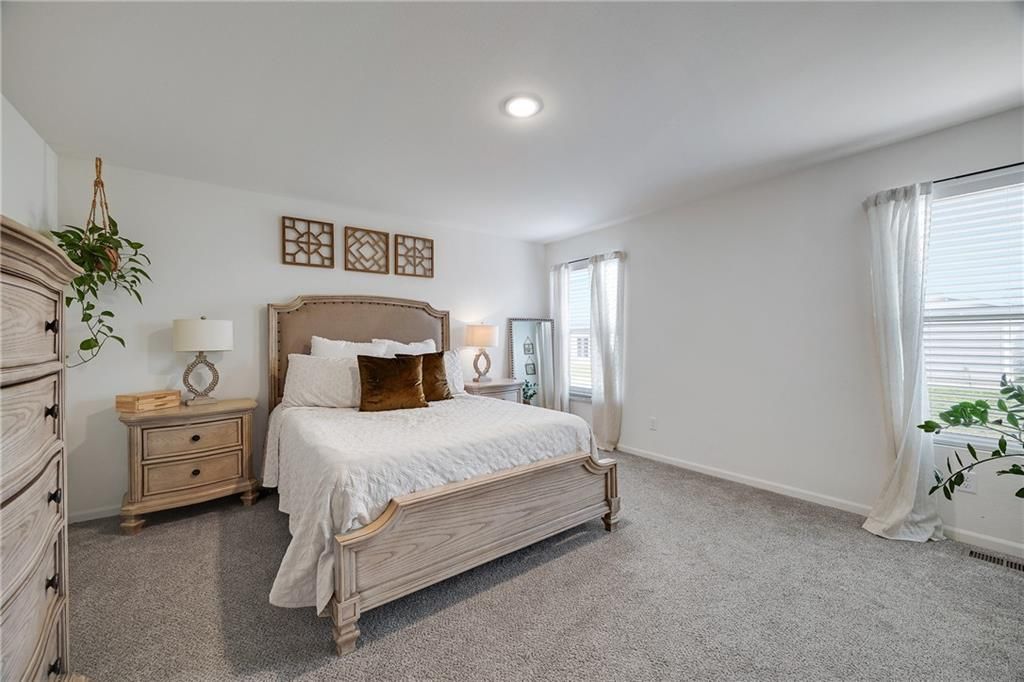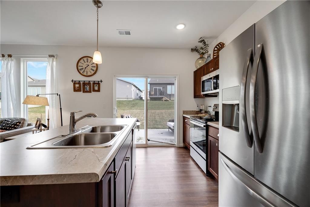 Better than new, turn key opportunity! This stunning two-story home offers 3 bedrooms, 2.5 baths and a 2 car garage. The open-concept kitchen features a spacious island, quartz countertops, stylish tile backsplash, and flows seamlessly into the dining and living areas with beautiful LVP flooring throughout. The expansive primary suite boasts a luxurious en-suite bath with a double vanity, shower, and walk-in closet. Convenient bedroom-level laundry adds ease to your daily routine. Located in a vibrant amenity-rich community, residents enjoy access to a pool, playground, firepit, and upcoming pickleball & basketball courts plus frisbee golf!