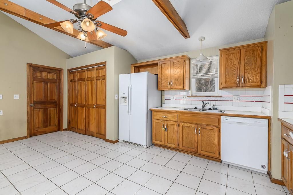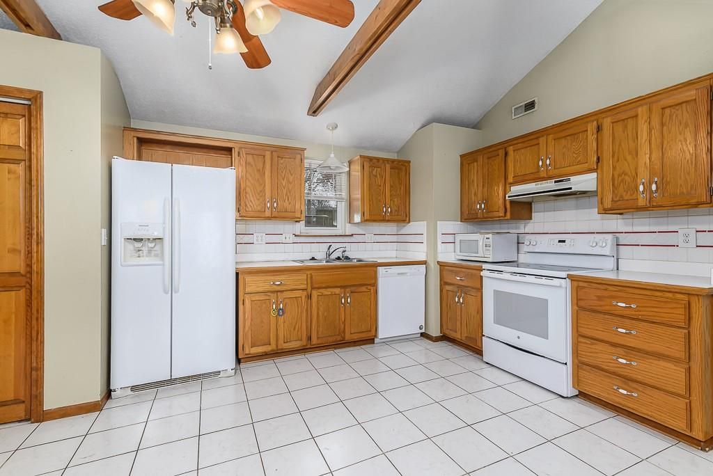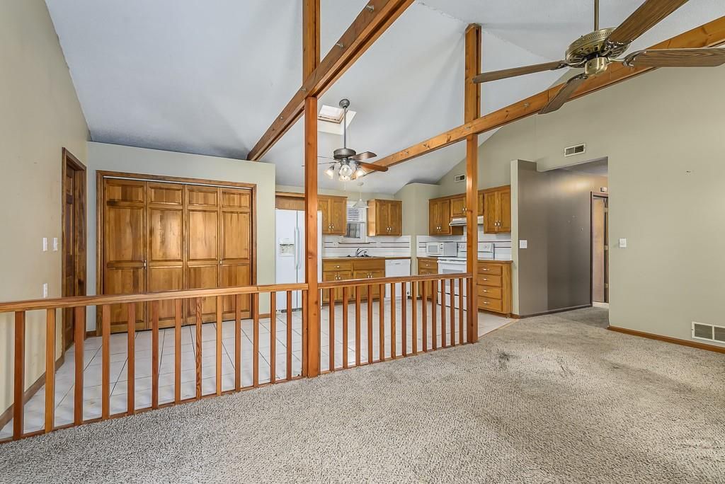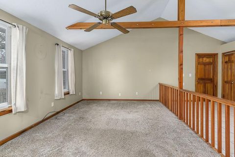 3-BED RANCH WITH OPEN LAYOUT AND BIG FENCED YARD. This earth-contact home sits on a private, tree-shaded lot at the end of a quiet dead-end street. Inside, you'll find an easy one-level layout with cathedral ceilings, exposed beams, and an open floor plan that feels bright and comfortable. The primary bedroom includes a walk-in closet and private bath, and the home's design helps keep heating and cooling costs low. The large fenced backyard offers plenty of room to relax, play, or garden under mature trees. Recent updates include a new roof, 1-year-old AC and furnace, and a 2-year-old water heater. Enjoy small-town convenience with quick access to local shopping, dining, and entertainment - all in a spot that gives you extra privacy and everyday comfort.