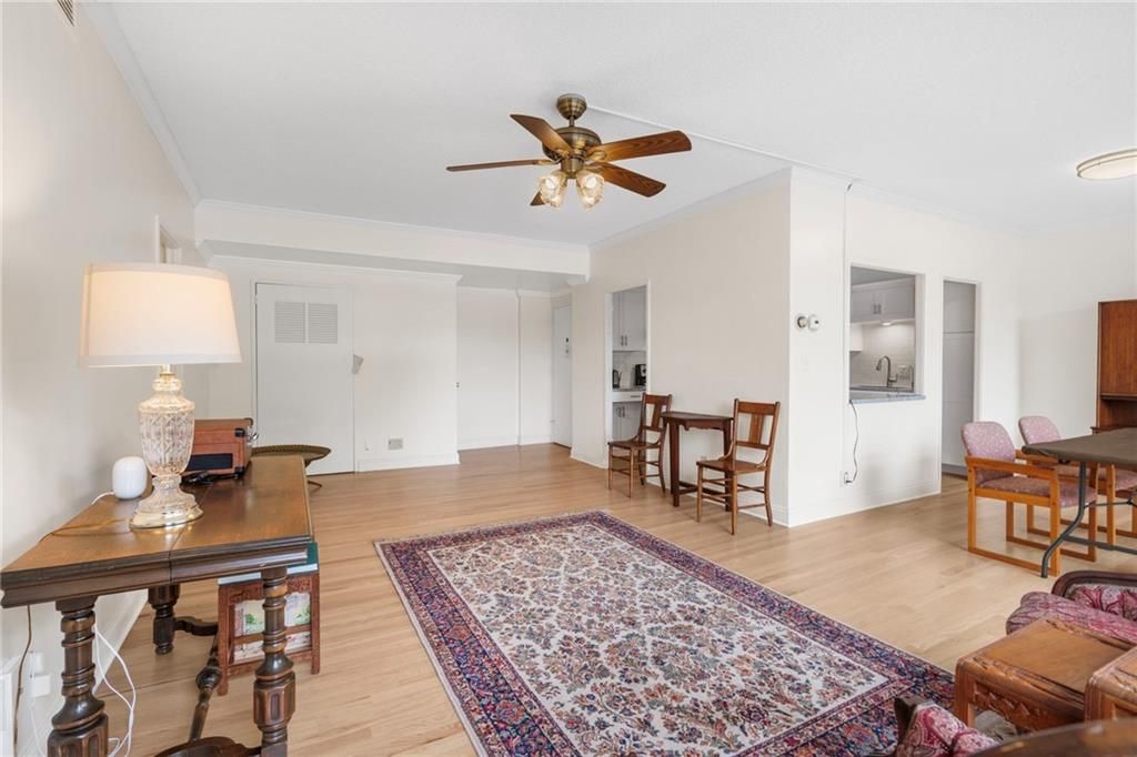 This Bright corner unit in the popular Meyer Condominiums is just waiting for it's new owner. Living room is framed by a wall of windows allowing for natural light to flood the room. Main bedroom w/ full bath and walk in closet is located in the back of the unit for privacy. Newer kitchen with a new RO System (Reverse Osmosis) has plenty of storage and counter space and also provides a "pass through" to the dining room. Recently painted the large open spaces make this unit perfect for relaxing or enjoying time with friends and family. Just a block from the grocery store and Brookside shopping district makes it easy to get out and about without the use of a car. The full time Doorman in the main lobby provides a nice warm greeting when returning home! The North Room is a large meeting space available to all residents and the well equipped gym and laundry room is a definite added bonus. Come see this