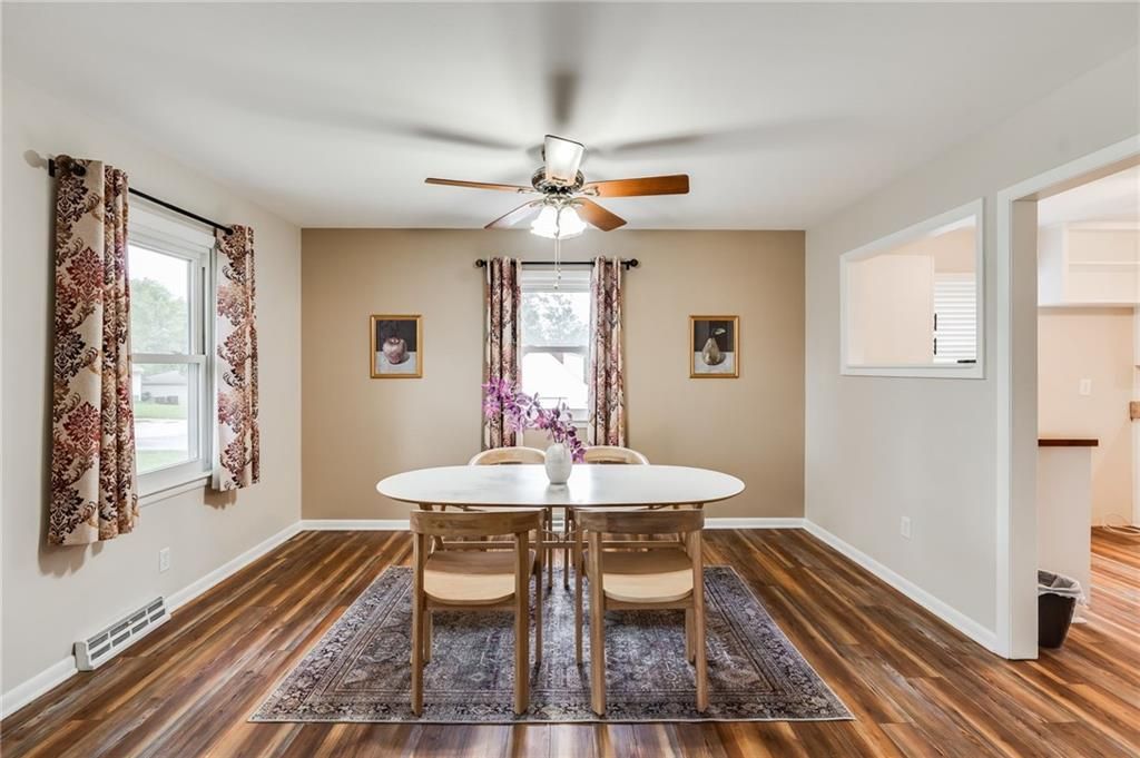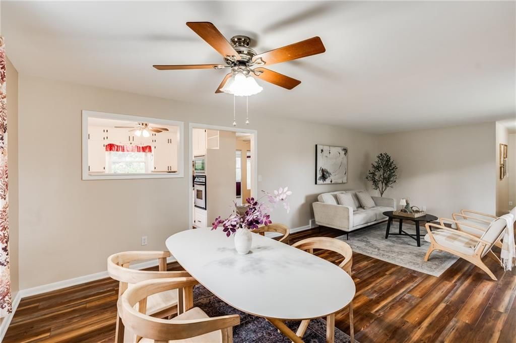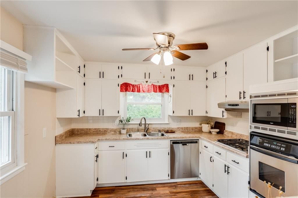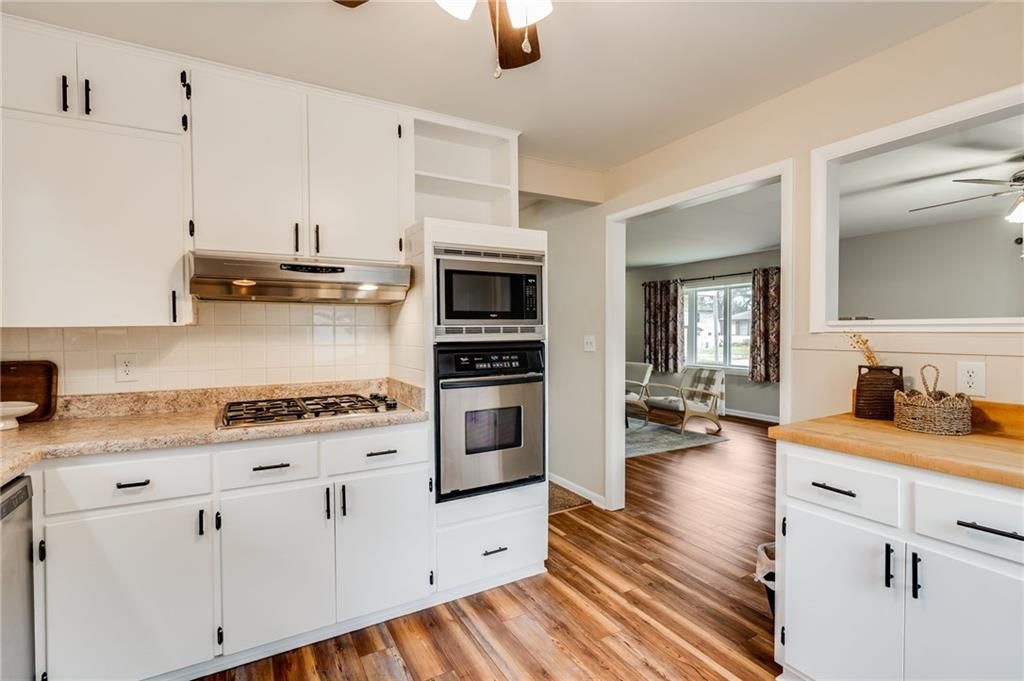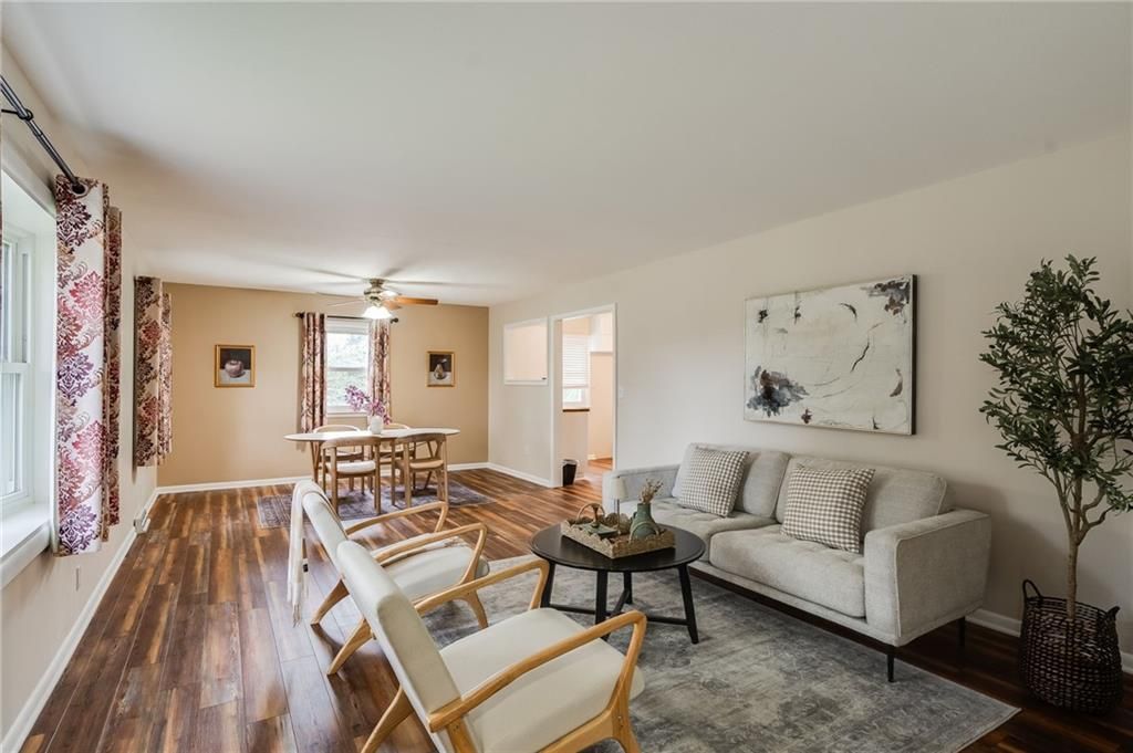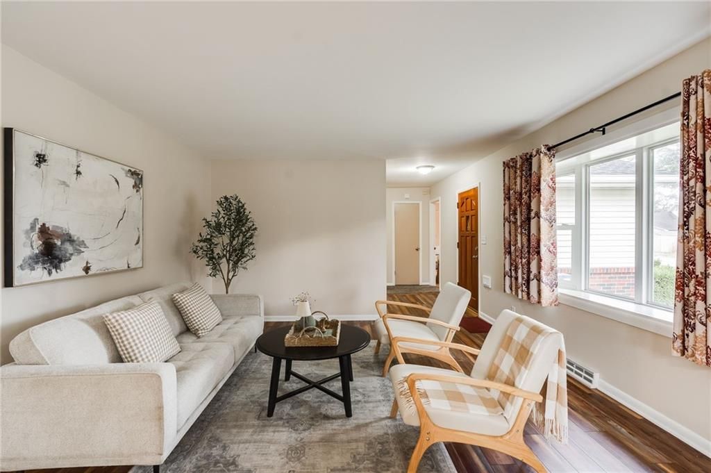 Beautifully maintained home on a corner lot with mature trees. The main level features updated LVP flooring in the living room and kitchen, fresh paint throughout, and a newly updated kitchen with stainless steel appliances. Enjoy multiple living areas, including a spacious dining/family room large enough for a piano and a full dining set. The finished basement has been thoughtfully converted into its own 1-bedroom, 1-bath apartment with a full kitchen - perfect for in-laws, grown kids, or even as an income-producing space. If you prefer, it can also serve as a flexible living area, ideal for guests, a recreation room, home gym, or private retreat. Additional highlights include high-efficiency windows, ceiling fans, and bright, energy-efficient lighting throughout, helping to keep utility costs lower. Practical features include a large garage with insulated doors, an expanded driveway, and a unique safe room/pantry. Centrally located with easy access to Kansas City amenities, this home truly stands out for its quality updates, flexible living spaces, and thoughtful improvements over the years.