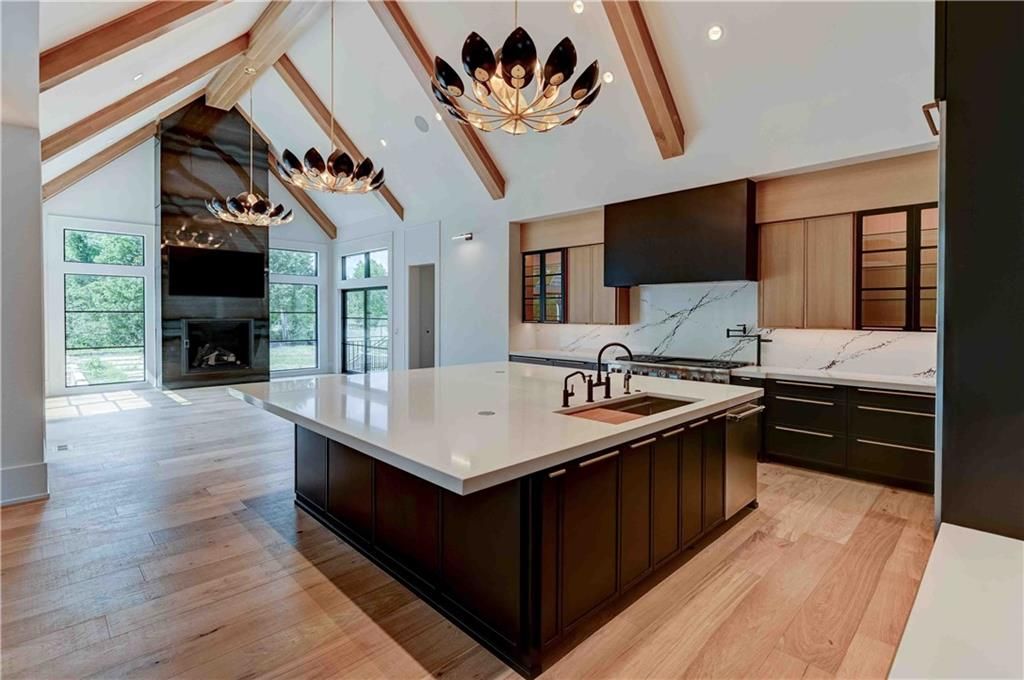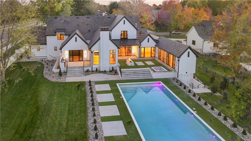 Welcome Home to this Luxurious New Construction! Just completed & landscaped! This remarkable find sits on over an acre of property! Modern Farmhouse w/beautiful high-end touches at every corner! The perfect Leawood location, this fabulous residence features 6 beds/6 bath & (2) half baths. The perfect open main floor/lots of glass lifestyle w/trophy kitchen featuring a 10x10 kitchen island, custom cabinets w/high end appliances. WOW caterer's kitchen to make special events easy! Owner's suite is a statement w/accent wall & walls of glass overlooking the magical outdoor lifestyle. Master bath showcases eye-popping (2) floating vanities, striking oversize shower w/striking back slab wall focal panel. his/her water closets. high finishes continue to lead into the master closet w/customer-built cabinetry. Main flr secondary bedroom/office w/ private bath. Marble treads lead you up to the upstairs leads into the perfect fun loft space for the kids hang out area. All other up (4) bedroom suites are oversized w/private baths & closets. 2nd floor laundry location, WOW outdoor retreat flaunts 63'x25 gunite swimming pool, 7x7 spa & firepit. use condition pool pavilion for bathroom access & out of the sun relaxation Built BBQ station off the great room near the pool for a fun summer grill out. Home Automation is featured thru a Control 4 system for lighting, security, televisions and in house audio. Large unfinished basement w/9' tall walls, daylight windows & stubbed for the perfect opportunity to finish out additional flex space. This a rare opportunity combination of new construction, prime location, acreage and private setting. One of a kind lifestyle ... IF YOU HAVE BUYERS AT THIS LEVEL, THIS IS A MUST-SEE RESIDENCE! PICTURES CANNOT CAPTURE THE BEAUTY OF THIS RESIDENCE!