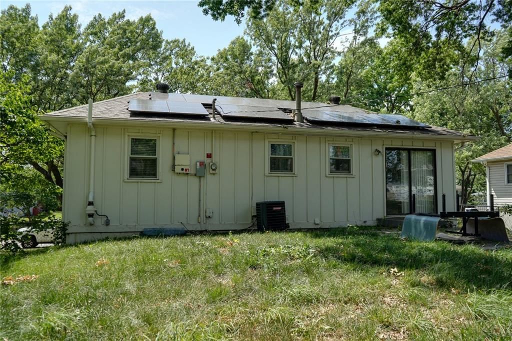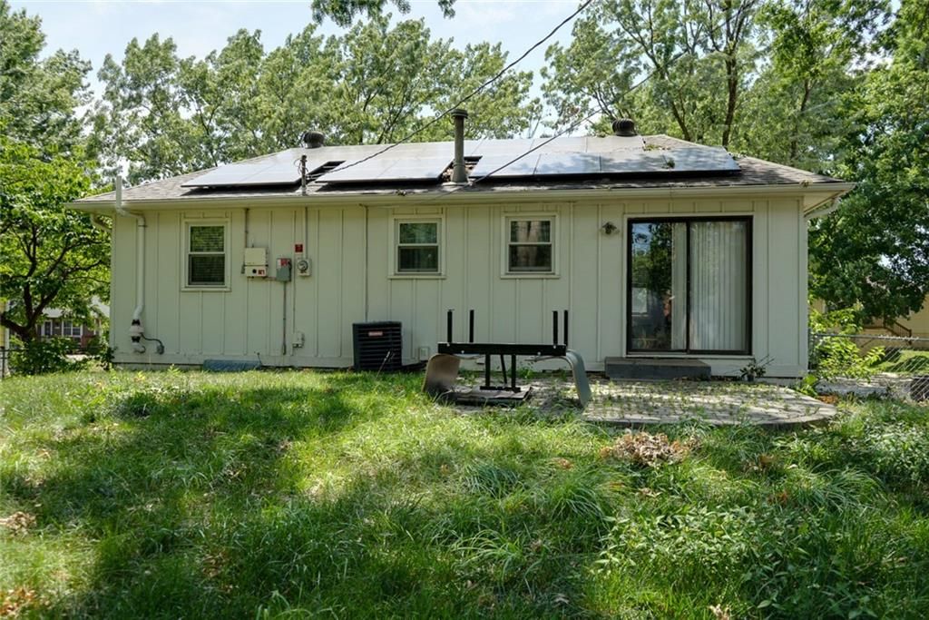 Blue Springs schools with low Independence water and taxes! The solar panels on the roof are paid for and will substantially save money on the electric bills. This Carriage Hills beauty has newer A/C, lighting, and other updates, including gorgeous hardwood floors. The kitchen has painted cabinets, tile backsplash and stainless appliances, all of which stay! The hall bath has a double vanity and convenient access to the primary bedroom, for total convenience. Outside is a cobblestone patio and large yard for entertaining or just relaxing. Downstairs is a carpeted, finished family room with a FULL bathroom - this would also make a great primary bedroom! The washer and dryer in the spacious laundry room also stay! The garage has room for two cars, as well as toys or tools. Finally, the radon mitigation system is already there, for peace of mind.