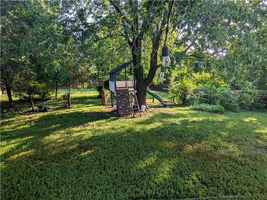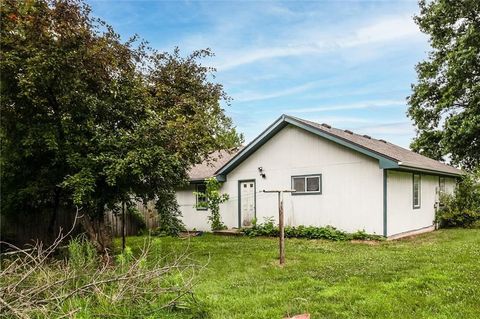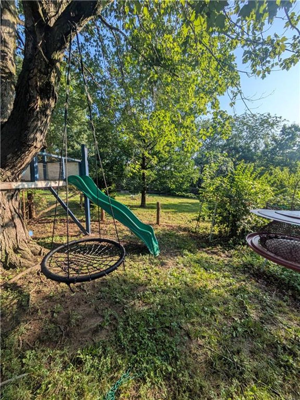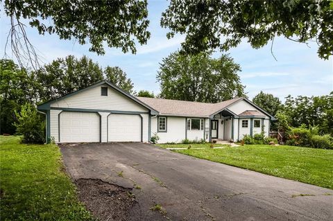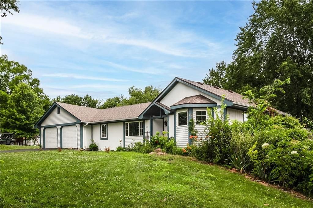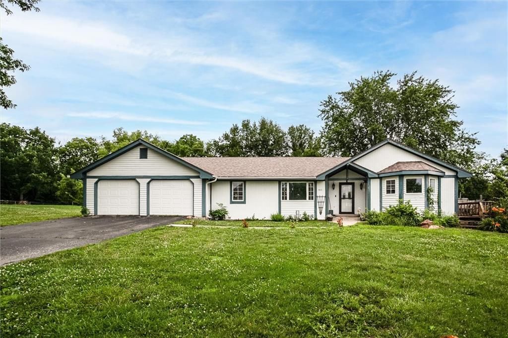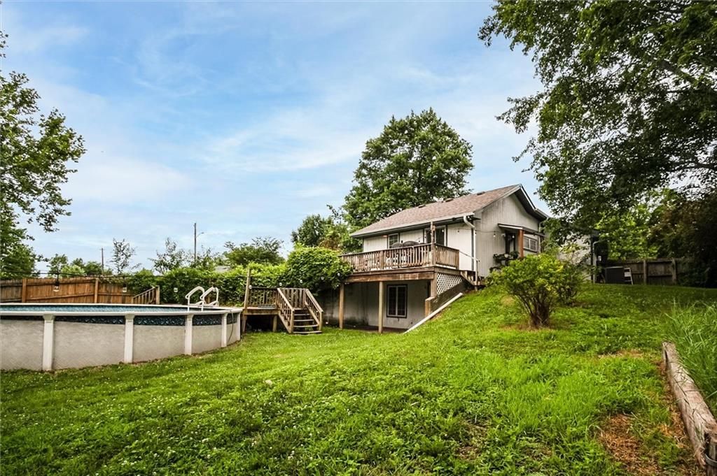 This is the RANCH LOT you've been waiting for! Over 2,700 sq ft nestled on .99 acre, dead end street with woods behind property, you'll love this secluded, privacy fenced back yard with some raised beds, large shade trees and fruit trees (peach!). There are blueberries, raspberry, blackberries, elderberries and plenty more land to get your garden on! Large above ground pool w/ deck area. Main level has kitchen, dining, living room, two bdrms, two full baths. Main level bedrooms each have their own full bath and laundry room is right off primary. Loads of kitchen cabinets, counter space and natural light make this kitchen a delight for the chef in your family! Kitchen and dining room are hardwoods, new flooring in living room and upstairs bdrms and lower level rec rm. Lower level has two big rec rooms, half bath, 3rd non conforming bdrm, and canning room. House has 3 walkouts, one from dining to back yard, one from garage and walkout basement. Garage is oversized and has workshop area with pegboards to hang all your tools. There's a three stall wooden chicken coop, too. The back yard is really something...the privacy is unmatched and there's so many homesteading possibilities here. So quiet and at night, the stars are unbelievable! Oversized driveway. Newer roof! Plattsburg is a quiet town 35 miles NE of downtown KC. To MKC airport, it's 34 miles.