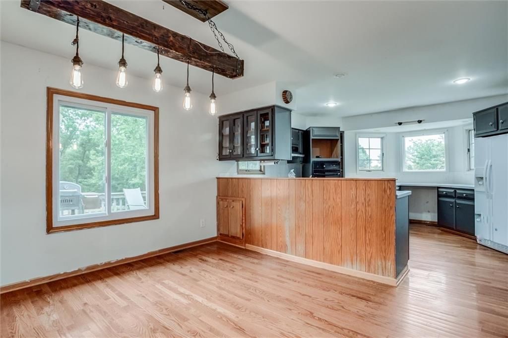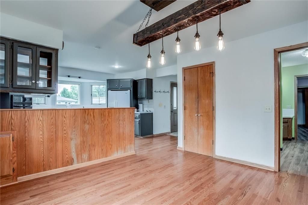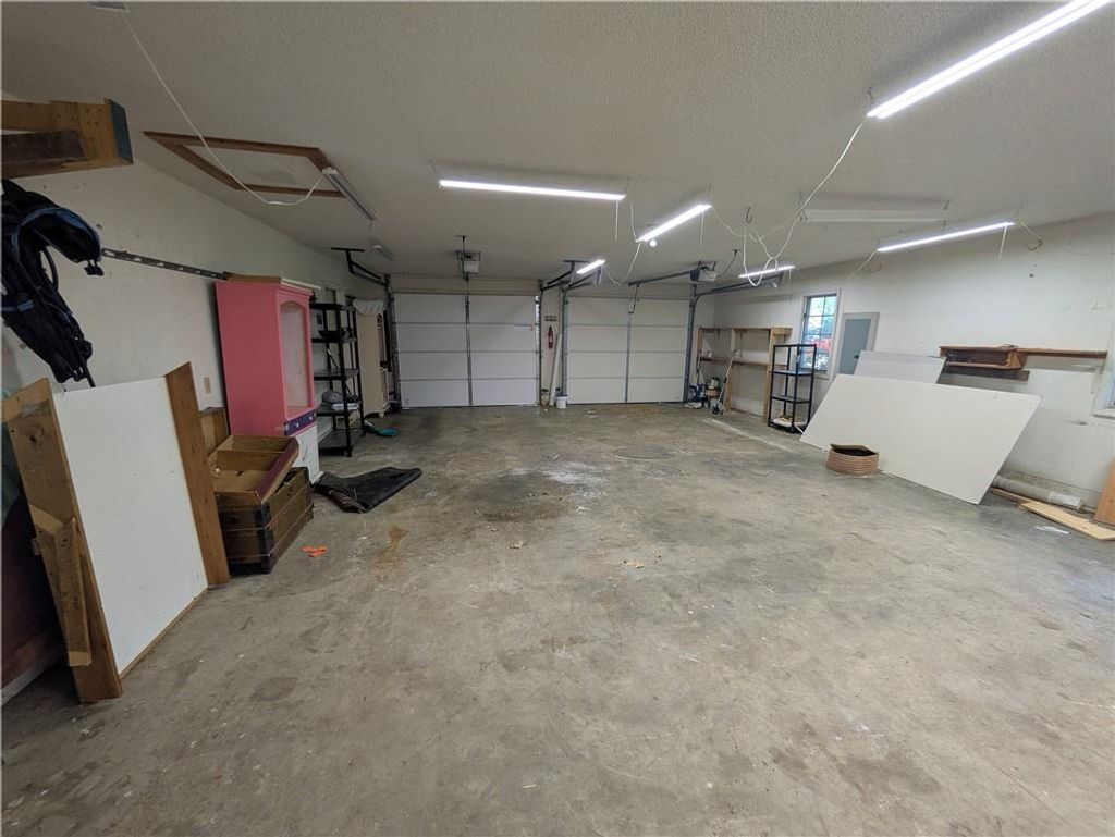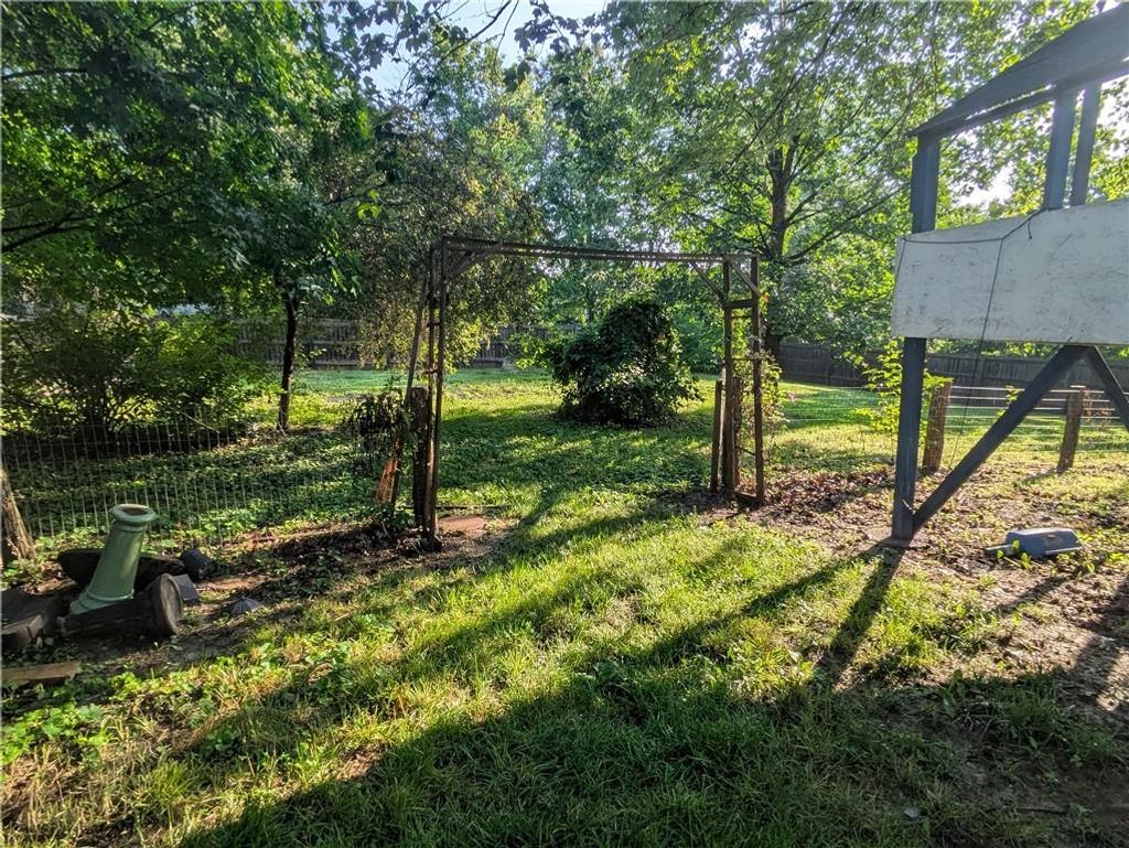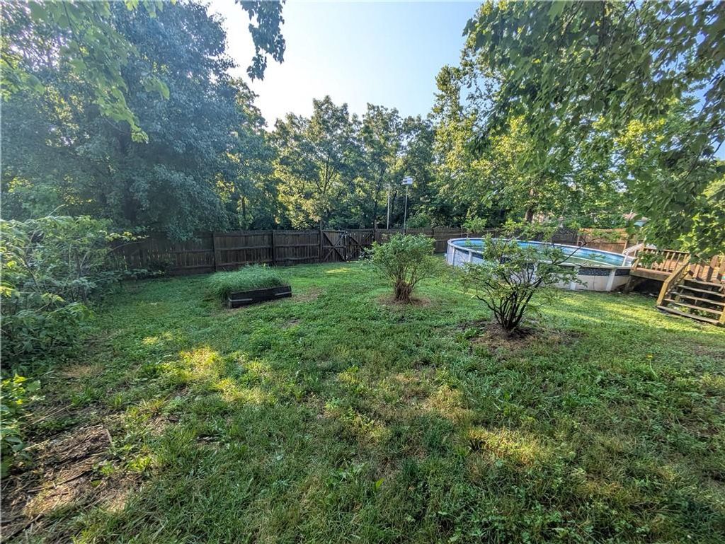 This is the RANCH LOT you've been waiting for! Over 2,700 sq ft nestled on .99 acre, dead end street with woods behind property, you'll love this secluded, privacy fenced back yard with some raised beds, large shade trees and fruit trees (peach!). There are blueberries, raspberry, blackberries, elderberries and plenty more land to get your garden on! Large above ground pool w/ deck area. Main level has kitchen, dining, living room, two bdrms, two full baths. Main level bedrooms each have their own full bath and laundry room is right off primary. Loads of kitchen cabinets, counter space and natural light make this kitchen a delight for the chef in your family! Kitchen and dining room are hardwoods, new flooring in living room and upstairs bdrms and lower level rec rm. Lower level has two big rec rooms, half bath, 3rd non conforming bdrm, and canning room. House has 3 walkouts, one from dining to back yard, one from garage and walkout basement. Garage is oversized and has workshop area with pegboards to hang all your tools. There's a three stall wooden chicken coop, too. The back yard is really something...the privacy is unmatched and there's so many homesteading possibilities here. So quiet and at night, the stars are unbelievable! Oversized driveway. Newer roof! Plattsburg is a quiet town 35 miles NE of downtown KC. To MKC airport, it's 34 miles.