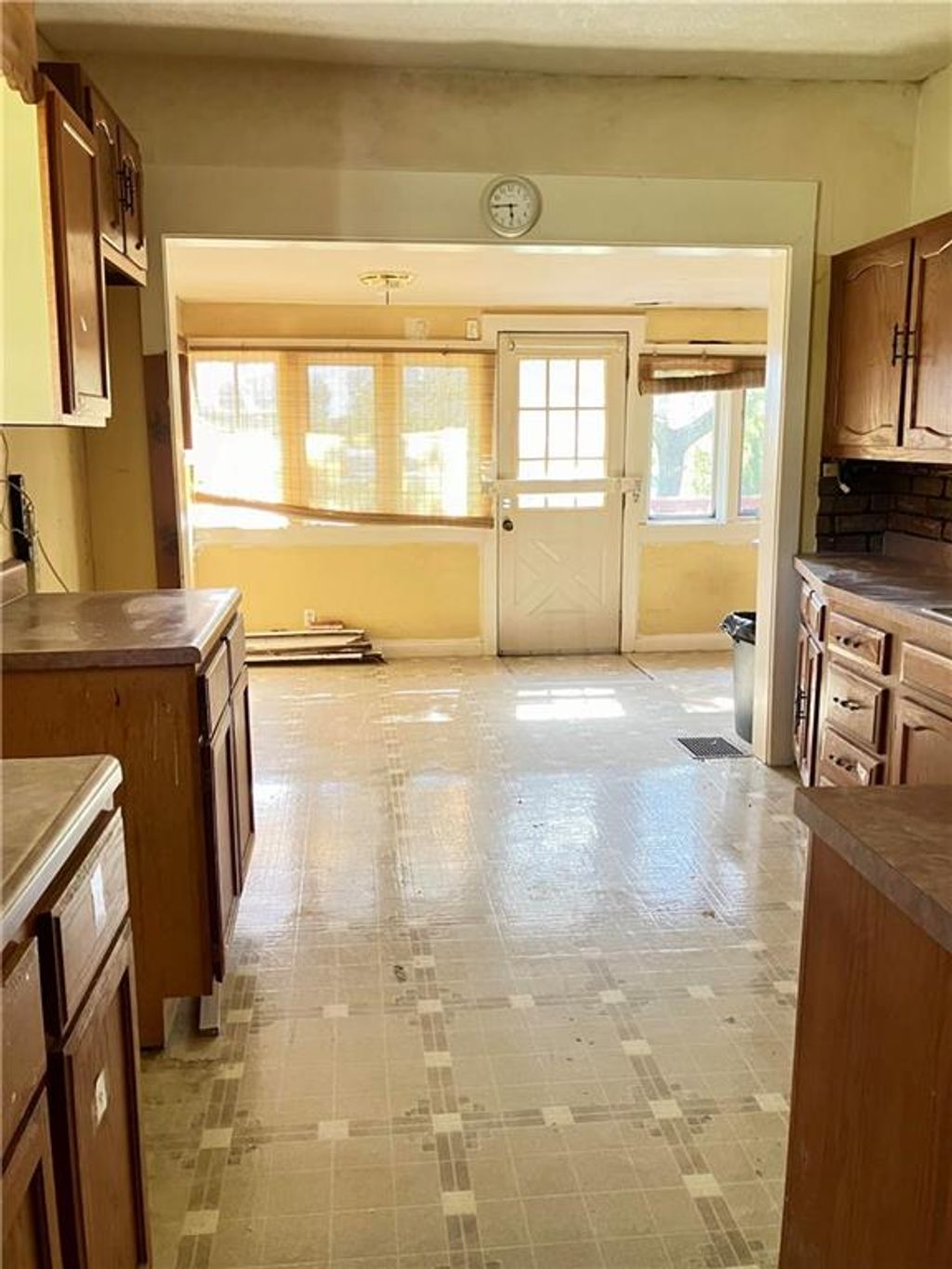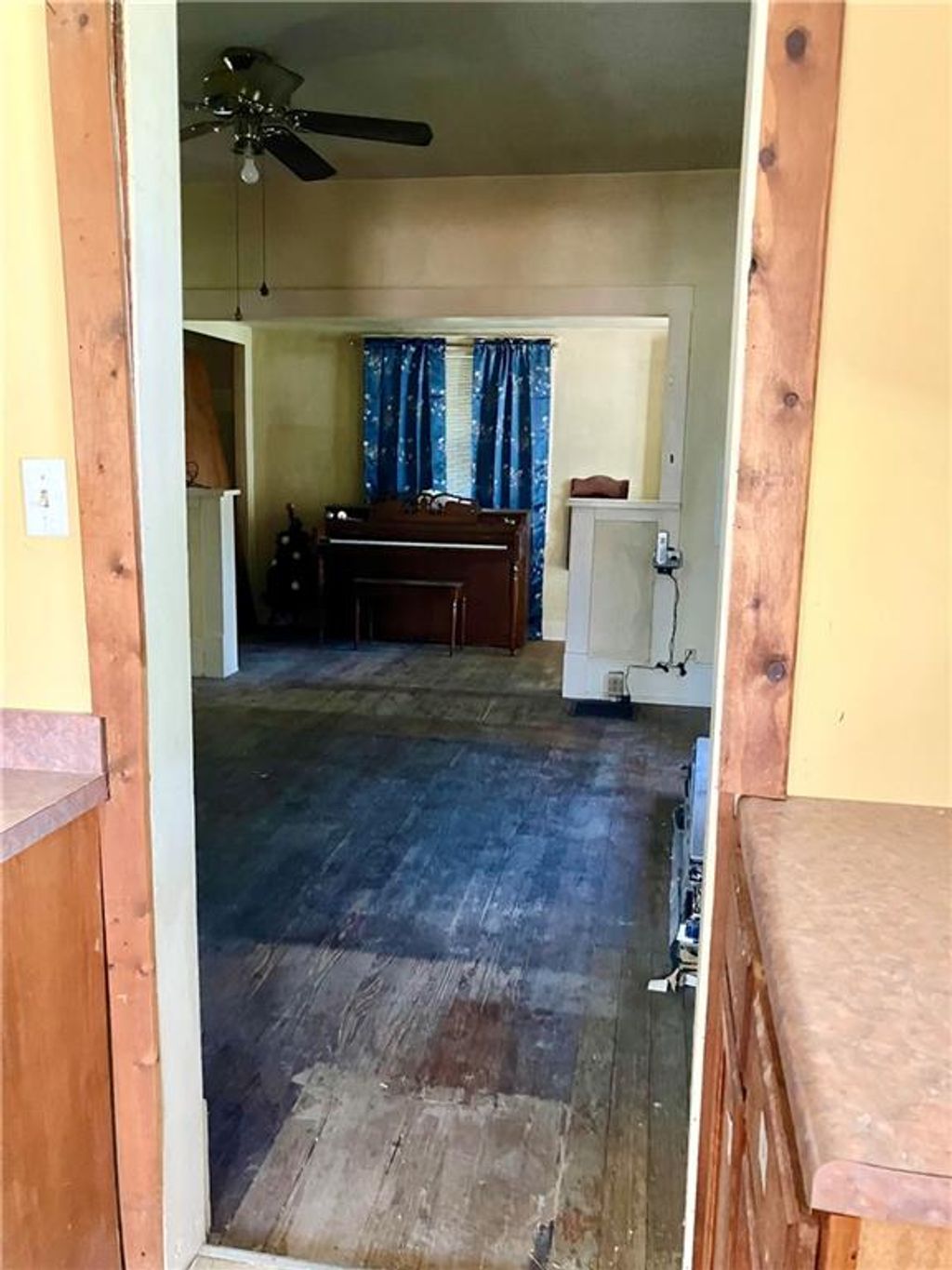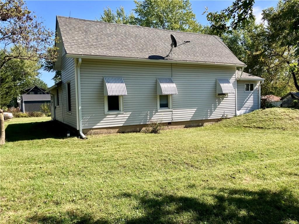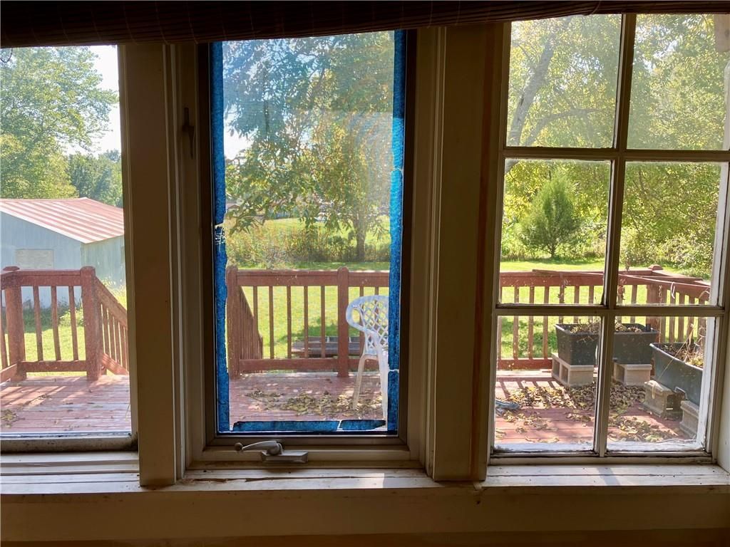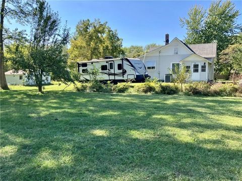 This bungalow home offers hardwood floors with 2-3 bedrooms; utility w/ 3/4 bath; kitchen with lots of cabinet space; small dining area with a view of the back yard. Enter the front enclosed porch to an entry way and LR. Step out of the kitchen onto a 12x18 deck overlooking the back yard. A partial basement contains a FA furnace w/humidifier; a wood stove for an alt. heat source; 50 gal electric hot water heater installed in 2022 and soft water system. Per the assessor new siding; windows; roof; and deck were added in 2016. Outside, there is a 16x20 metal shed with sliding door & walk in; electric; & dirt floor (needs some TLC); a cellar; and a nice size yard with lots of shade & ample room to build a shop/garage. Owner has started renovating, bring your ideas & finish your way. Solar back up