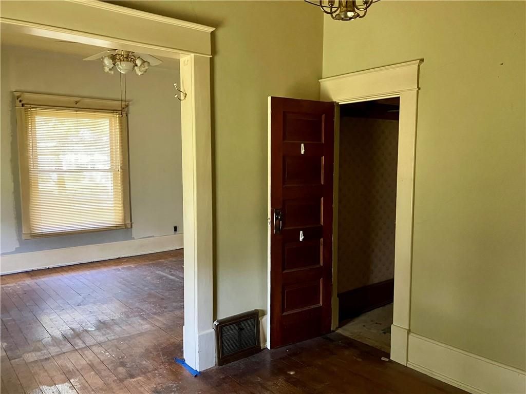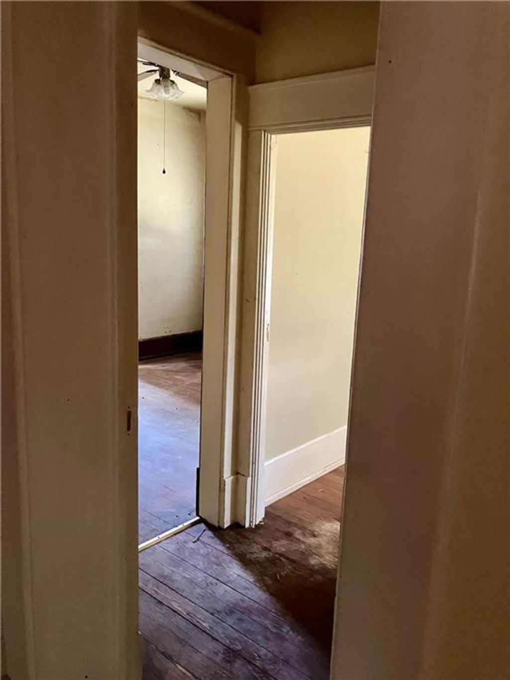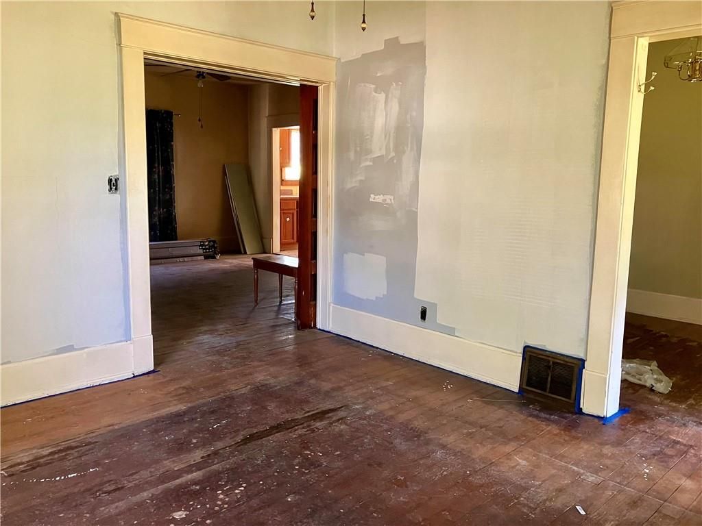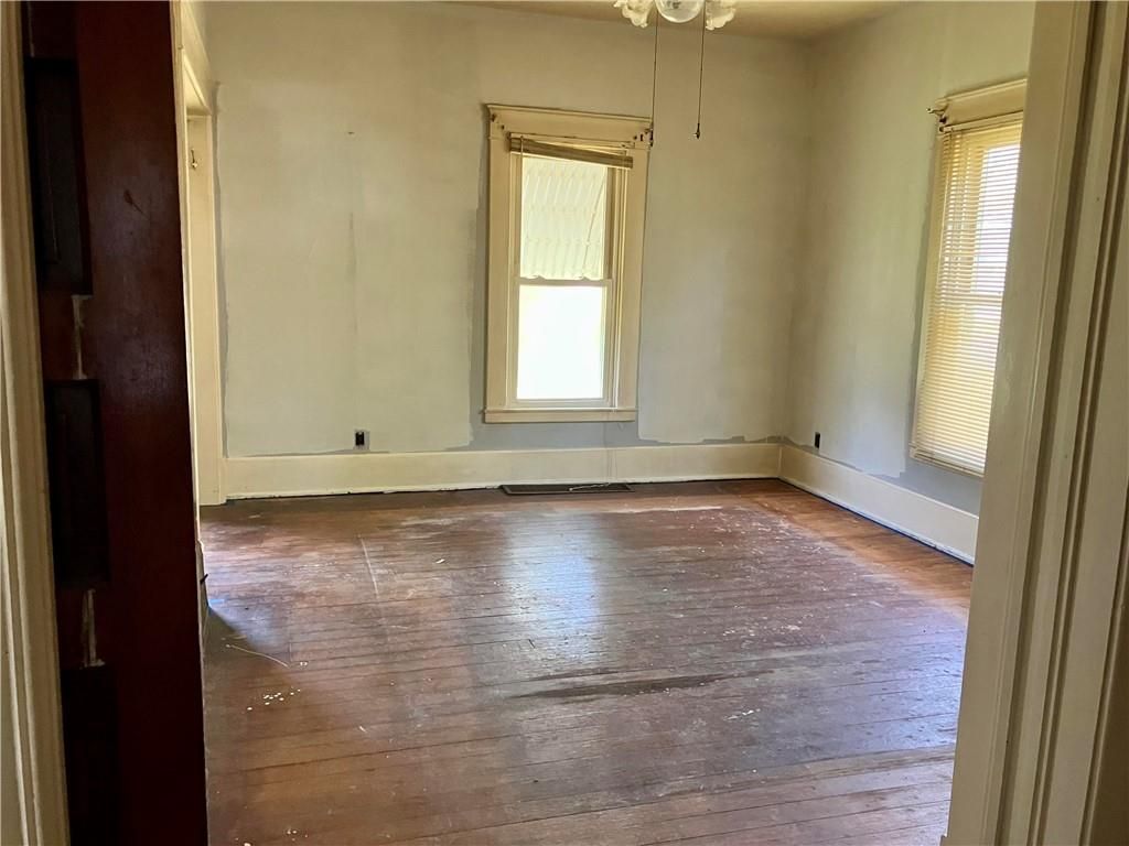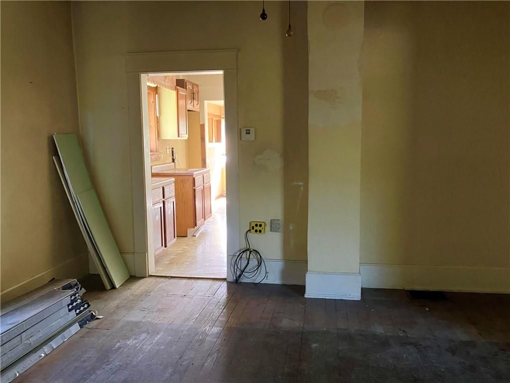 This bungalow home offers hardwood floors with 2-3 bedrooms; utility w/ 3/4 bath; kitchen with lots of cabinet space; small dining area with a view of the back yard. Enter the front enclosed porch to an entry way and LR. Step out of the kitchen onto a 12x18 deck overlooking the back yard. A partial basement contains a FA furnace w/humidifier; a wood stove for an alt. heat source; 50 gal electric hot water heater installed in 2022 and soft water system. Per the assessor new siding; windows; roof; and deck were added in 2016. Outside, there is a 16x20 metal shed with sliding door & walk in; electric; & dirt floor (needs some TLC); a cellar; and a nice size yard with lots of shade & ample room to build a shop/garage. Owner has started renovating, bring your ideas & finish your way. Solar back up