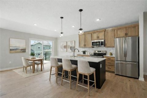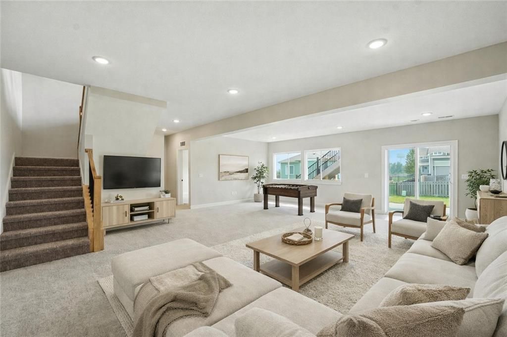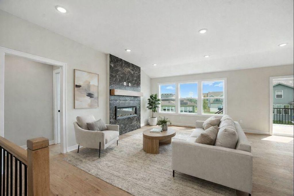 This move-in ready reverse Harmony by Avital Homes offers the space, style, and flexibility today's buyers are looking for - and for a limited time, it's available with special Holiday Appreciation Sales Event pricing. Set on a desirable walkout cul-de-sac lot with charming Farmhouse curb appeal, this home is designed to feel open, bright, and effortlessly livable. Inside, the main level welcomes you with an open staircase and a seamless flow between the living room, dining area, and kitchen - ideal for both everyday living and entertaining. A stunning floor-to-ceiling tiled fireplace anchors the living space, complemented by upgraded tile selections and the professionally curated design package. The primary suite is a true retreat, thoughtfully connected to the laundry room for added convenience. Additional main level bedrooms and bath provides comfortable space for family, guests, or a home office. Unlike many homes, this one already includes the finished walkout lower level, adding a spacious rec room, bedroom, and full bath - perfect for guests, movie nights, or flexible living space right from day one. Located in Stoney Creek, you'll enjoy a connected community lifestyle with a low annual HOA of just $640, which includes trash and recycling, a clubhouse, three pools, walking trails, playgrounds, volleyball, planned social activities, and sidewalks that lead directly to Osage Trails Park. Stylish, spacious, and ready now - and with Holiday Appreciation pricing, this opportunity won't last!