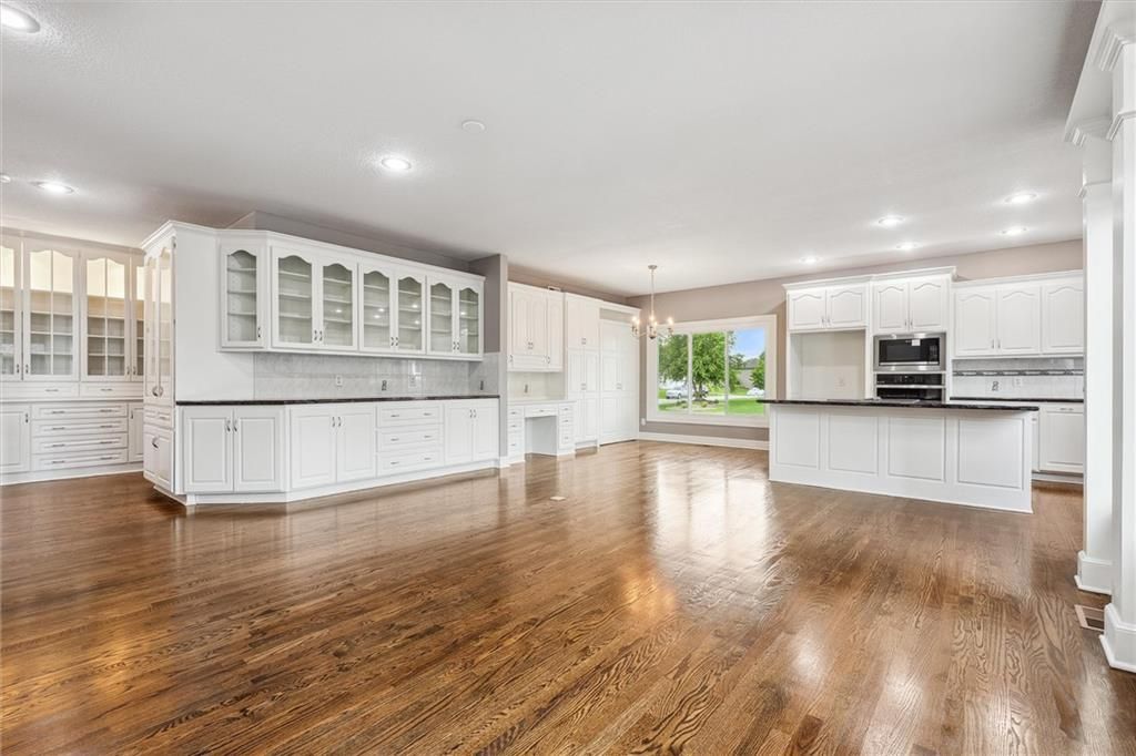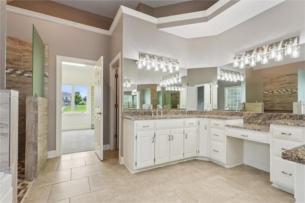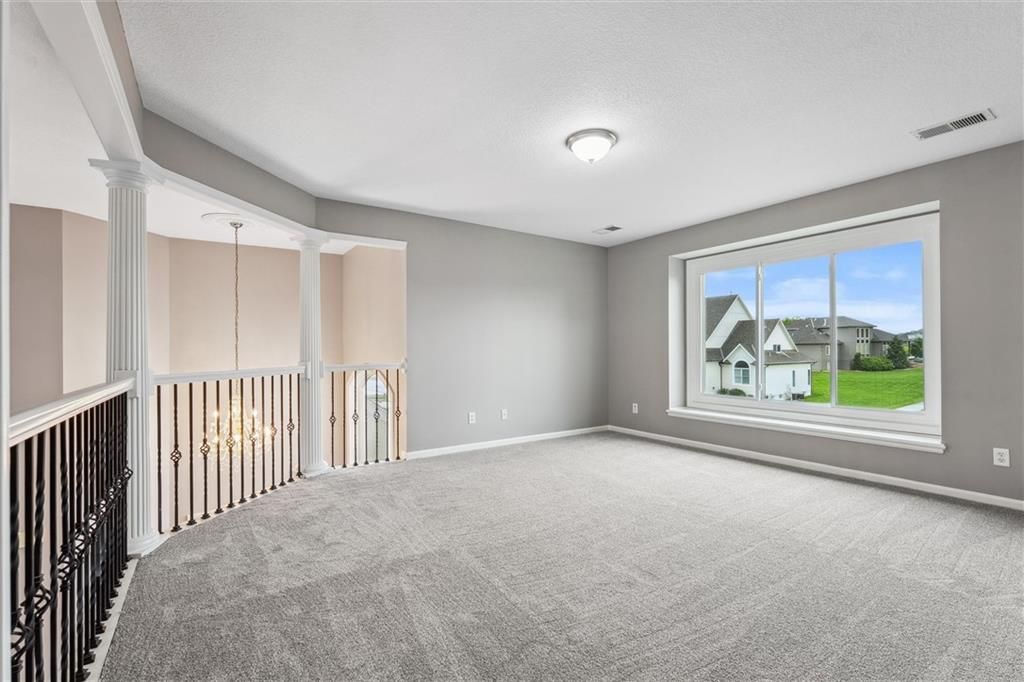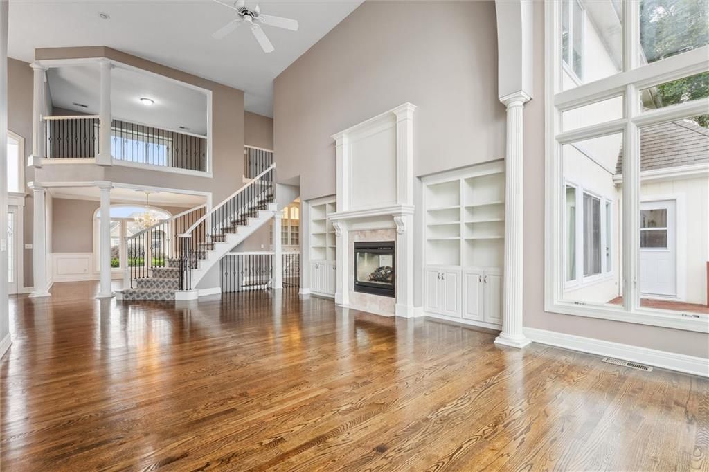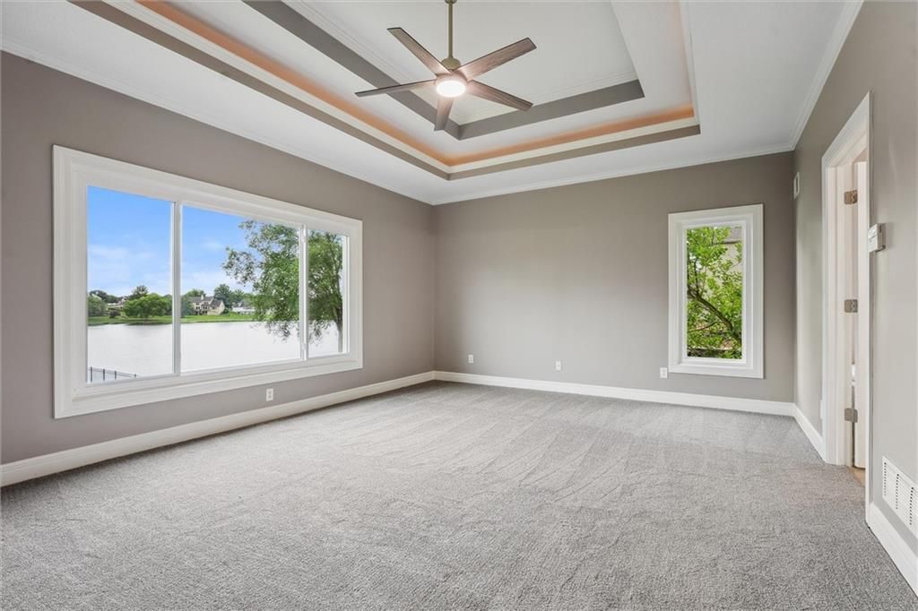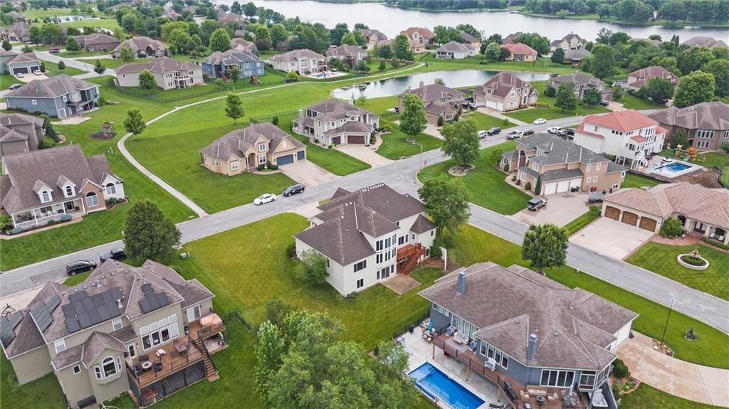 Welcome to this exquisite custom-built, one-owner home offering more than 6,000 sq. ft. of luxury living space, perfectly positioned on a prime corner lot with breathtaking lake views. This move-in ready 1.5-story residence features 6 bedrooms, 4.5 baths, and a 3-car garage. The main level blends elegance and functionality with extensive built-ins, a see-through fireplace, and soaring floor-to-ceiling windows that fill the space with natural light. Hardwood floors flow through the kitchen, hearth room, and dining room, while the spacious master suite provides a peaceful retreat. Upstairs, you'll find a versatile loft and three generously sized bedrooms, each with access to two full baths. The walk-out lower level is designed for entertaining with a large family room, two offices, a full bath, and an additional bedroom. Recent 2025 updates include: fresh carpet, interior paint, refinished hardwoods, and brand-new appliances. This is truly a rare opportunity in Raintree - schedule your private tour today!