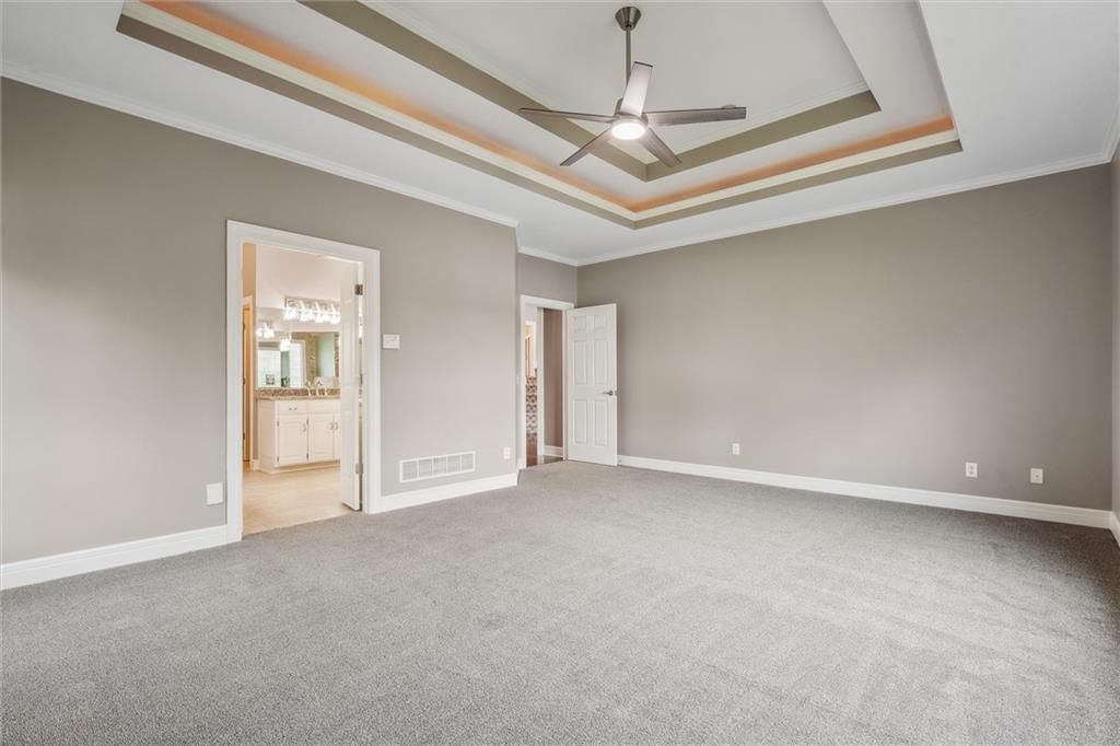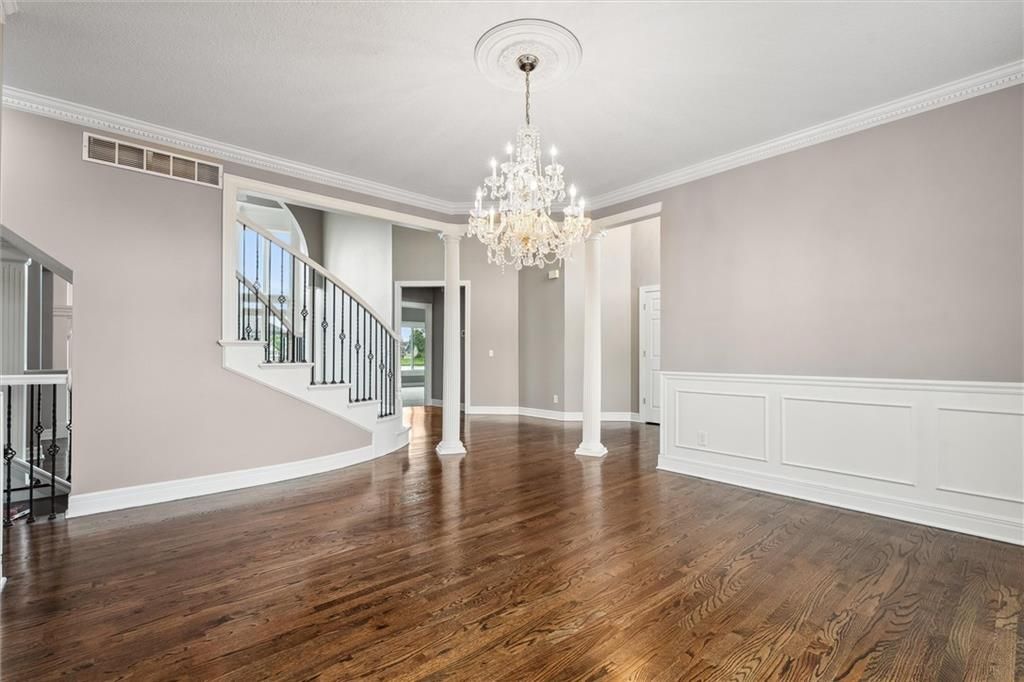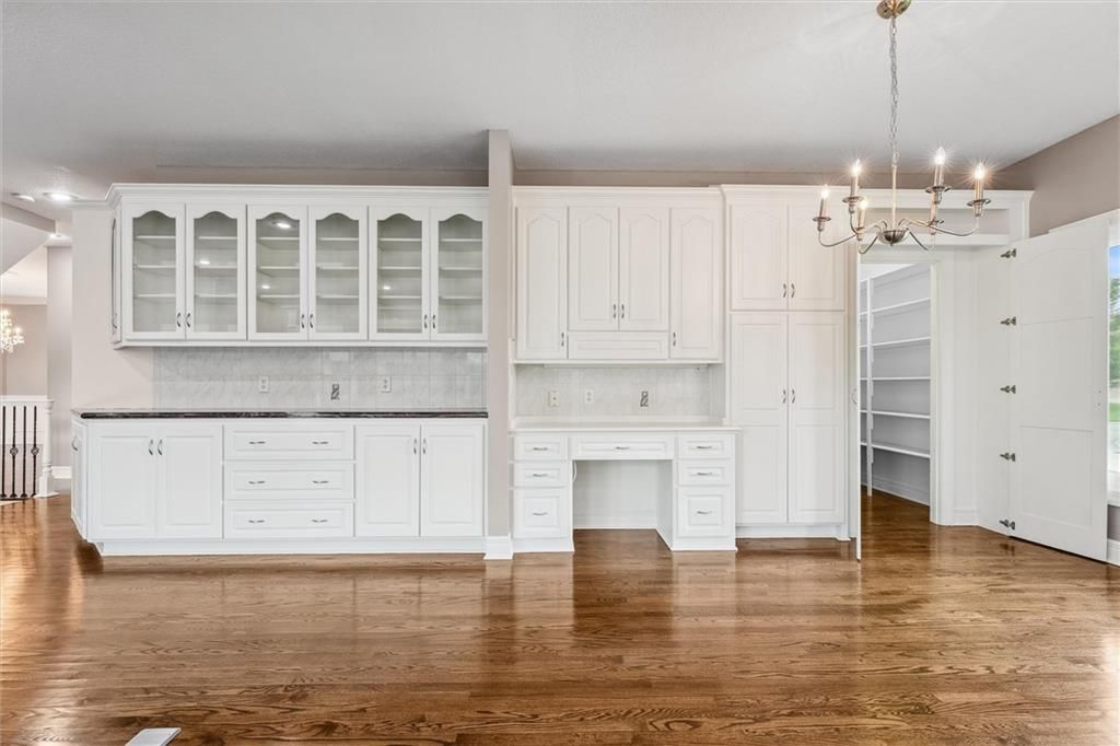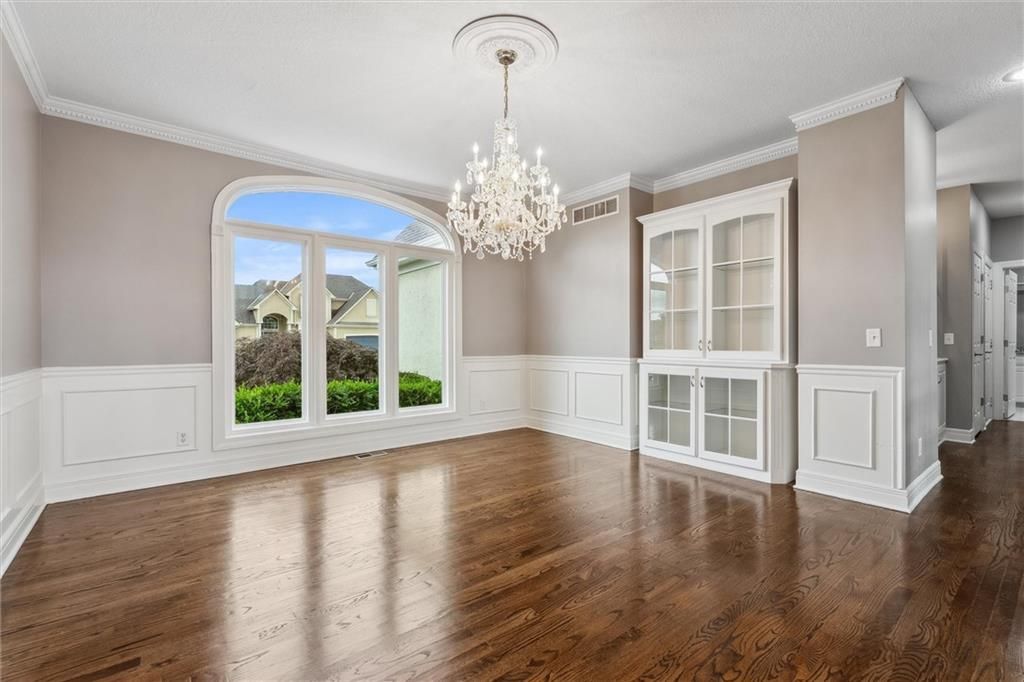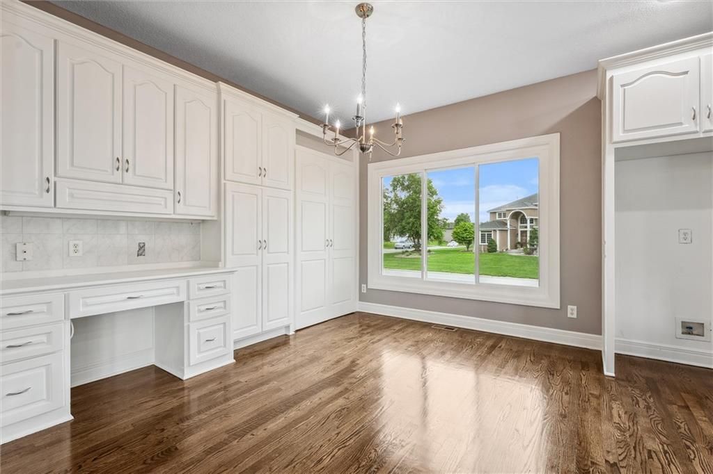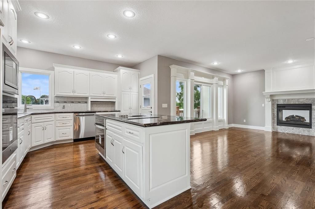 Welcome to this exquisite custom-built, one-owner home offering more than 6,000 sq. ft. of luxury living space, perfectly positioned on a prime corner lot with breathtaking lake views. This move-in ready 1.5-story residence features 6 bedrooms, 4.5 baths, and a 3-car garage. The main level blends elegance and functionality with extensive built-ins, a see-through fireplace, and soaring floor-to-ceiling windows that fill the space with natural light. Hardwood floors flow through the kitchen, hearth room, and dining room, while the spacious master suite provides a peaceful retreat. Upstairs, you'll find a versatile loft and three generously sized bedrooms, each with access to two full baths. The walk-out lower level is designed for entertaining with a large family room, two offices, a full bath, and an additional bedroom. Recent 2025 updates include: fresh carpet, interior paint, refinished hardwoods, and brand-new appliances. This is truly a rare opportunity in Raintree - schedule your private tour today!