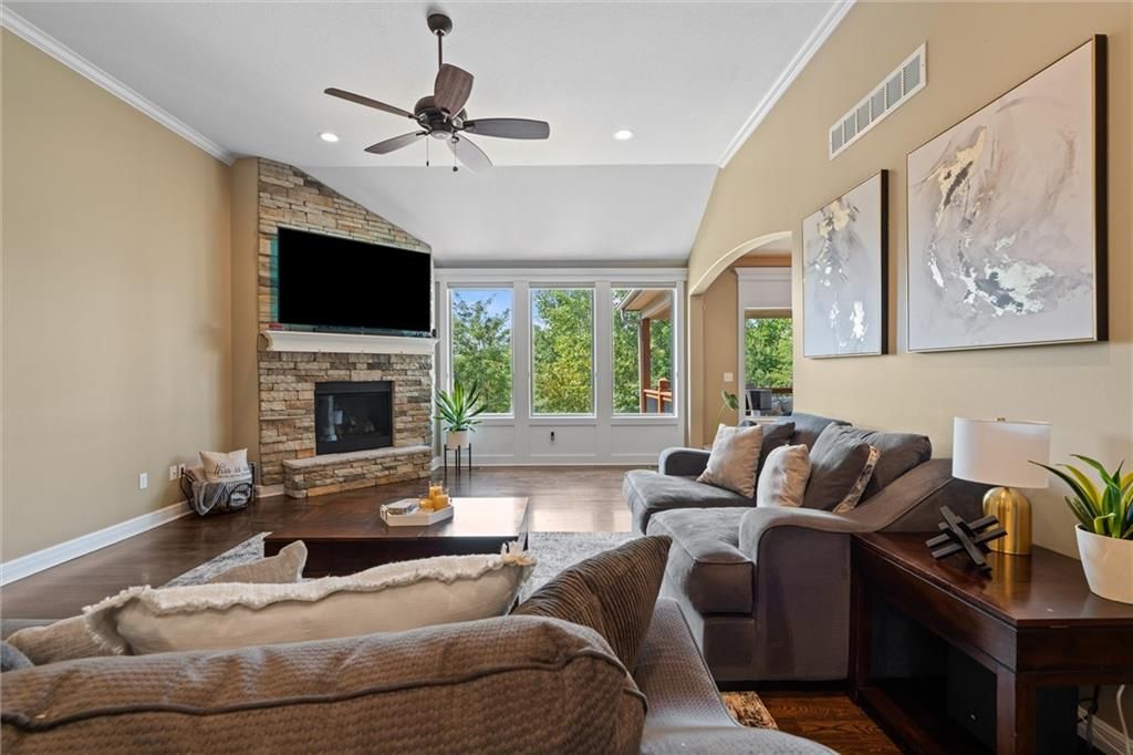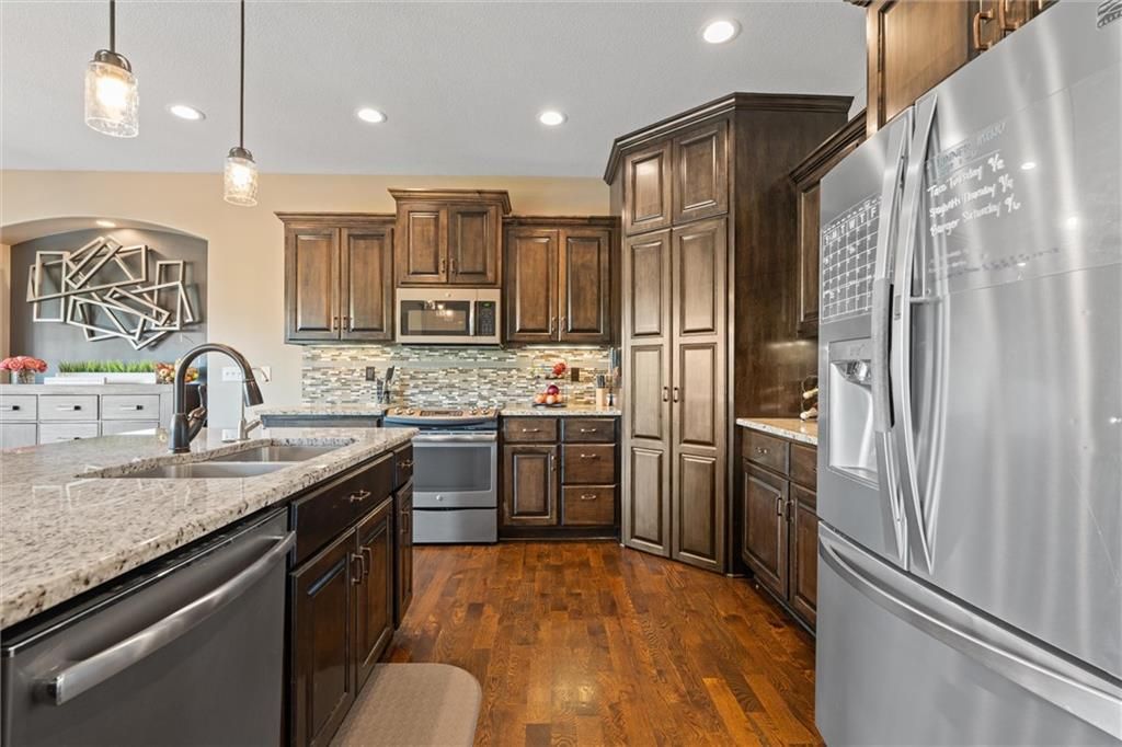 Motivated Seller!! Gorgeous 4 bedroom and 3 full bath reverse ranch home nestled in the Communities at Piper Lake! If you are looking for a home that offers privacy, style and space, this one is for you! Access to the beautiful Piper Lake means endless family fun from fishing to kayaking. Backing to lush wooded green space, this beautifully maintained home offers an open floor plan filled with natural light and framed by scenic views from nearly every window. The adjoining lot offers extra privacy as well as open views of the lake. The home has nearly 3400 square feet with an inviting living room with tall ceilings, stone fireplace and rich hardwoods floors throughout. Spacious kitchen with walk-in pantry. The convenient door from the garage to the pantry makes unloading groceries a breeze! The perfect flow of the kitchen, dining area and living room are ideal for family gatherings or entertaining! The primary suite features a dramatic tray ceiling with a spa tub, dual vanities, walk-in shower and spacious walk-in closet. Also, on the main level, you will find a very oversized additional bedroom and full bathroom- ideal for guests, multi-generational living or a private home office. Main floor laundry. Step outside to the expansive covered deck perfect for relaxing or entertaining while overlooking the tree-lined backyard. The finished walk-out lower level offers incredible flexibility with two spacious bedrooms, a full bath and a large family room-perfect for game days. Two unfinished spaces provide even more opportunity-storage, home gym, workshop or additional bedrooms. The lower patio and fenced yard add even more space for outdoor fun with an additional area for a hot tub or lounge set up. The highlight is the above-ground pool with composite decking-perfect for low-impact workouts or simply cooling off on warm days. A cozy fire pit area sets the scene for evening gatherings. Your dream home awaits! Minutes away from Dub's Dread golf course. Piper Schools.