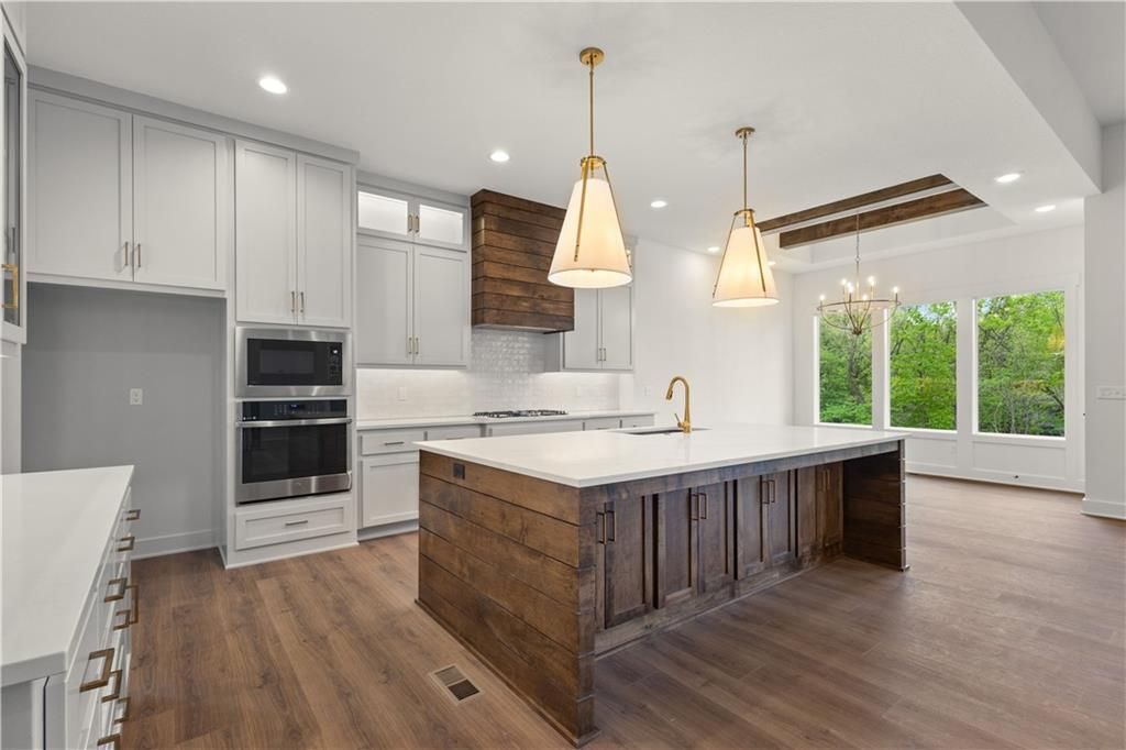 Back on market-no fault of seller! Get ready to fall in love with The Windsor Contemporary - a showstopper of a home! Boasting 5 spacious bedrooms and 4 luxurious full baths, this stunning residence has it all. The walkout basement opens to a covered deck and patio, perfect for entertaining or unwinding. The great room shines with custom built-ins, while the chef's kitchen is a dream with upgraded Quartz countertops, a massive island, and an oversized walk-in pantry. Need a home office or guest suite? The flexible main-floor bedroom has you covered! Retreat to the jaw-dropping primary suite featuring a freestanding tub, an oversized shower, and a smartly designed walk-in closet with a pull-down rack system. Downstairs, the lower level is built for fun with a full wet bar and plenty of room to host in style. And don't miss the 3-car garage with two bays extending 24 feet deep - perfect for storage, hobbies, or big toys. With elevated tile and trim upgrades throughout, this home is the total package! Home also features a new Wi-Fi enabled keypad at the front door!