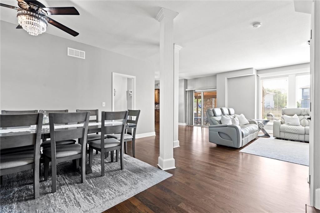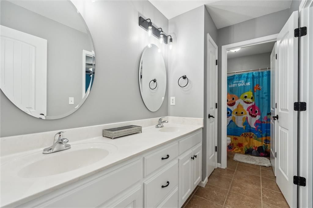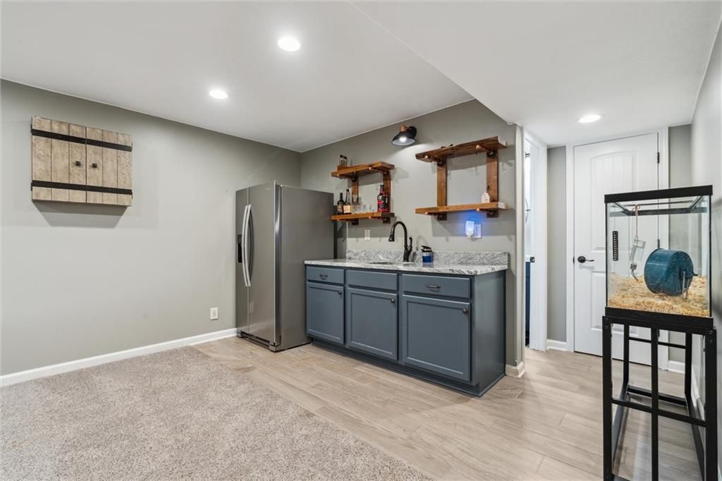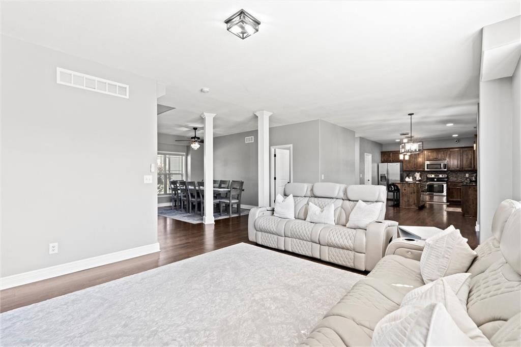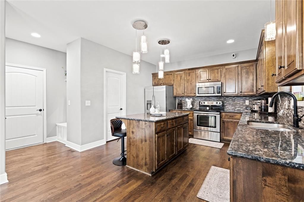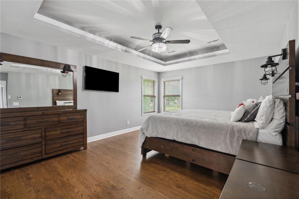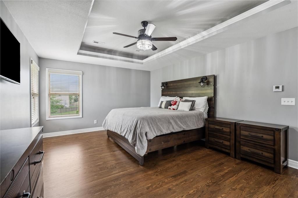 Step inside this beautifully updated 1.5-story home in sought-after Legacy Wood, where elegant design meets modern comfort. Spanning over 3,600 sq ft, this 5-bedroom, 4.5-bath residence offers generous space, stunning upgrades, and a location just minutes from award-winning schools and local amenities. Recent renovations include new hardwood flooring throughout the main and upper levels, fresh paint across the entire interior, and designer light fixtures that add modern flair. The heart of the home features an open-concept kitchen with granite countertops, stainless steel appliances, a walk-in pantry, and an oversized island - all flowing seamlessly into the inviting living room. The focal point? A custom marble-tiled entertainment wall with built-in fireplace - a showstopper that elevates the main living space. The finished basement offers a 5th bedroom, full bath, rec room, wet bar, and additional storage. Upstairs, four more bedrooms await - including a luxurious primary suite with vaulted ceilings, double sinks, whirlpool tub, and a massive walk-in closet. Out back, enjoy the covered patio with a wood-burning fireplace and fully fenced yard - perfect for entertaining or quiet evenings under the stars.