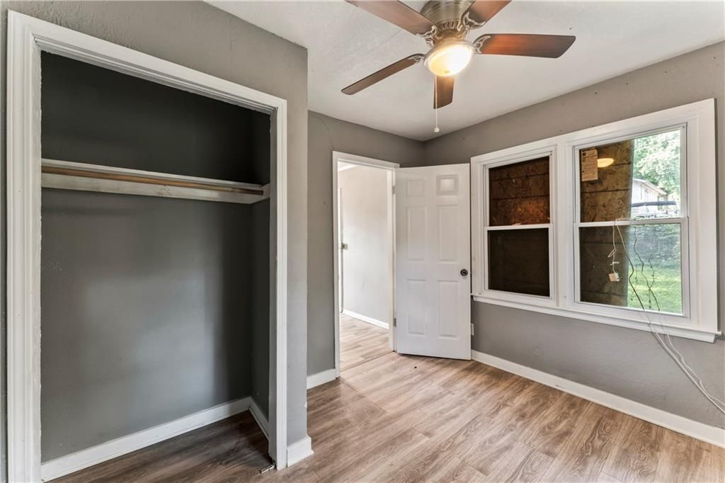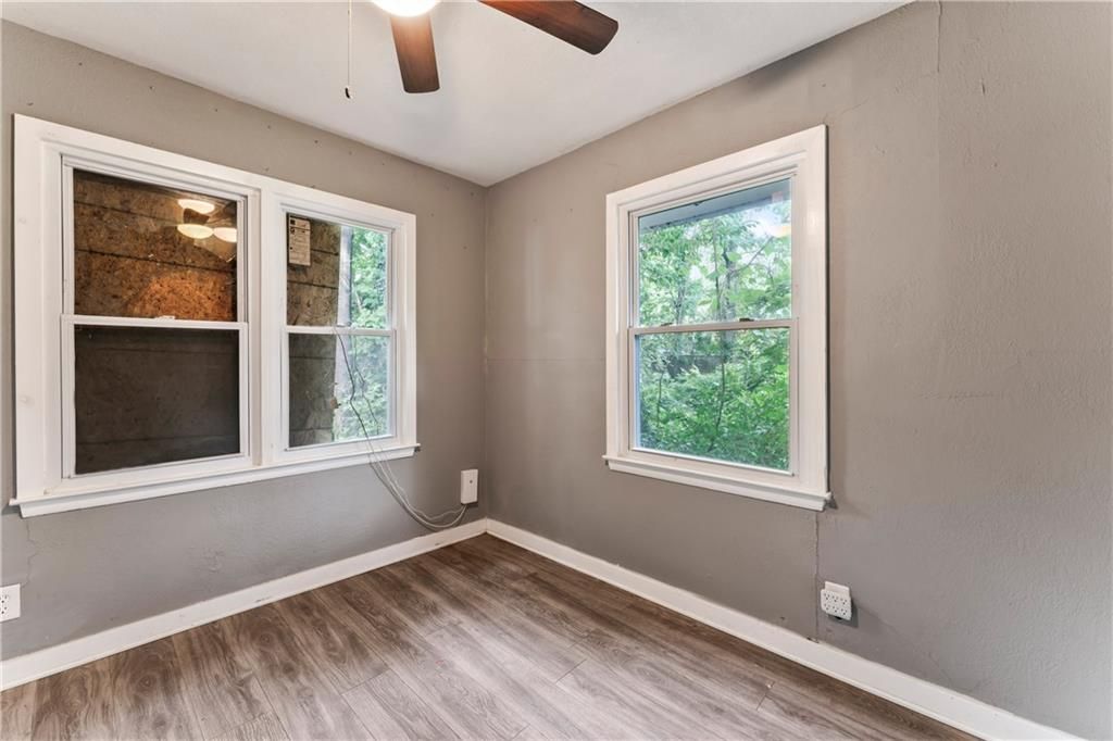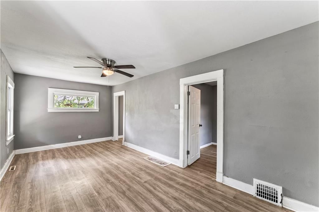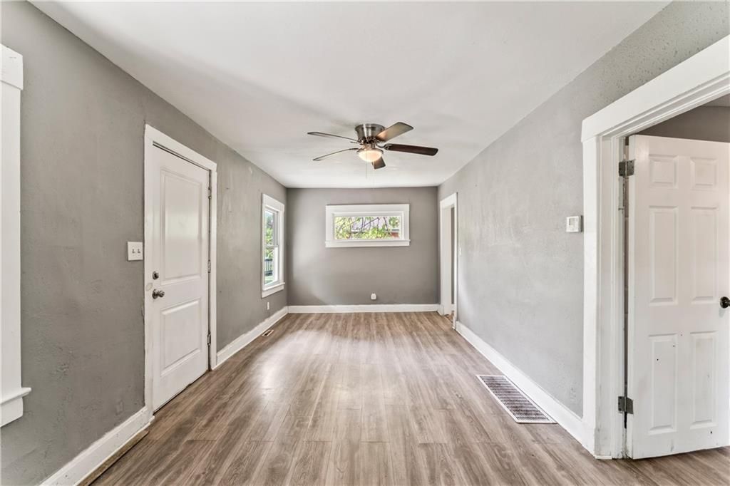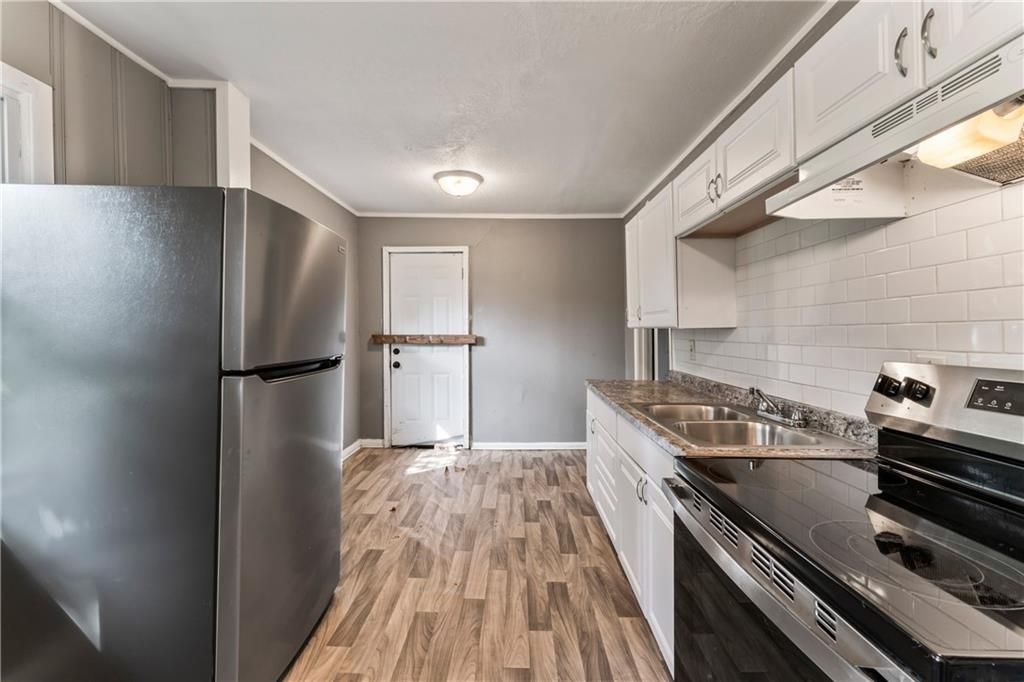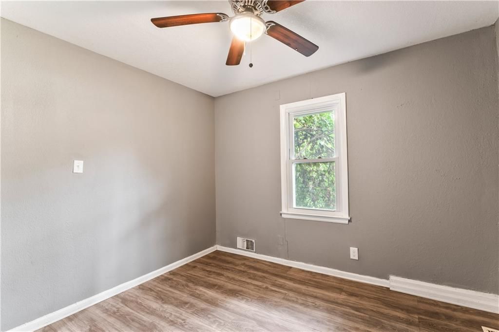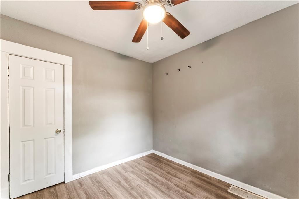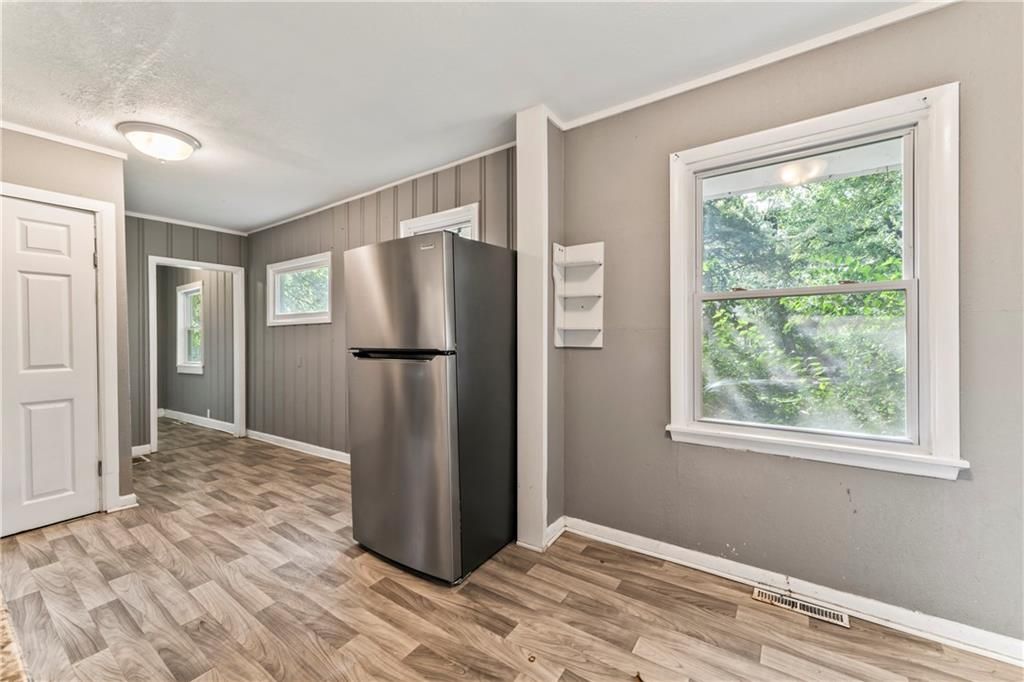 Calling all investors! This home has thoughtful updates, including updated flooring, stylish fixtures, and a completely remodeled kitchen and bath. Great front porch with new railing, white trim and neutral wall colors. Living room has LVP and a ceiling fan. The kitchen has a refrigerator and stove. Bedrooms have LVP and ceiling fans. Basement offer lots of storage. Door leads to treed backyard. Parking on left side of property.