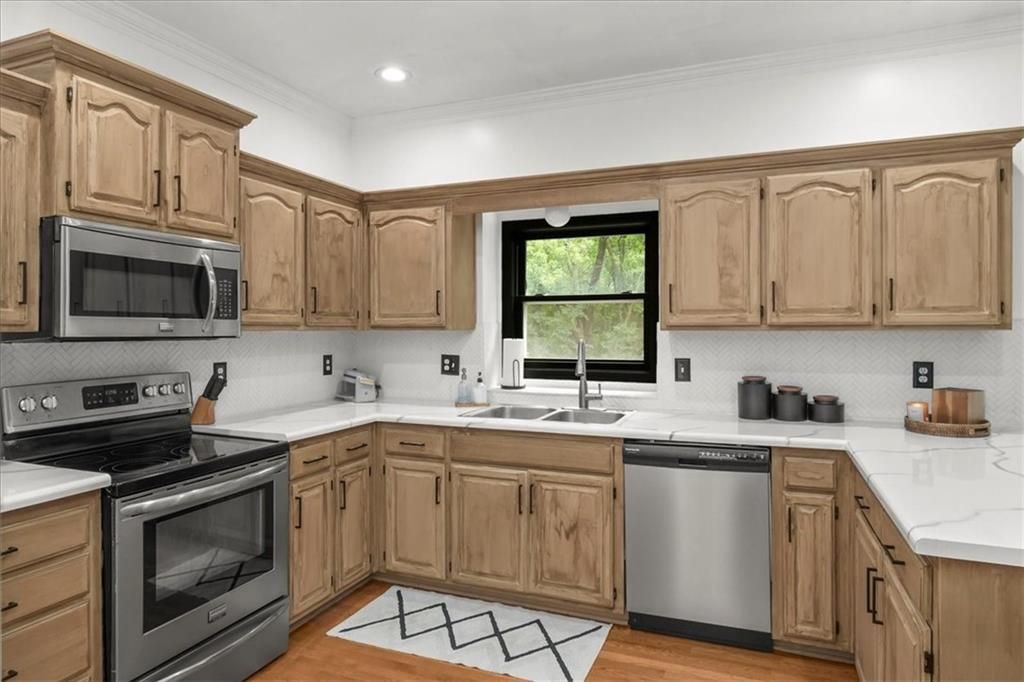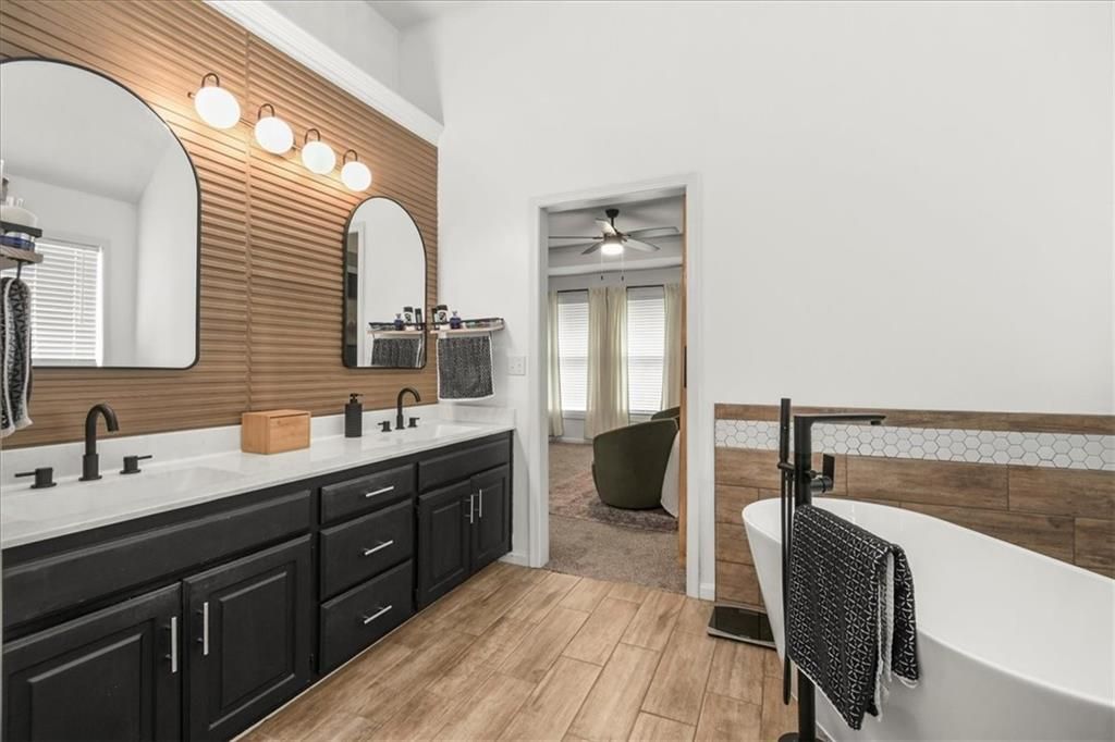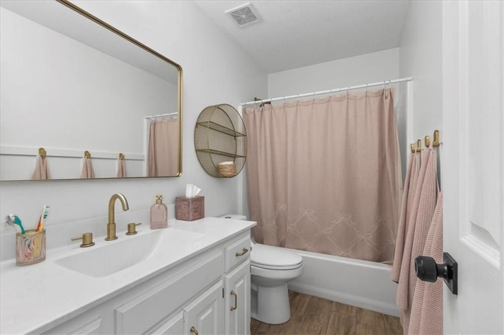 This beautifully updated 2 story home sits on a serene cul-de-sac lot with a lush, treed backyard. Step inside to discover fresh paint throughout, new light fixtures and chic, modern design. The updated kitchen features newly stained cabinets, backsplash and stainless steel appliances. Enjoy cozy evenings in the family room with its sleek, modern fireplace. Upstairs you will finde 4 spacious bedrooms and the convenient laundry room. The primary suite has an updated bathroom with a soaker tub, double vanity and large walkin closet. The finished lower level offers a family room, possible 5th bedroom or office and 1/2 bathroom.Neighborhood amenities include a swimming pool, parks and walking trails all just minutes from highway access, schools and shopping.
