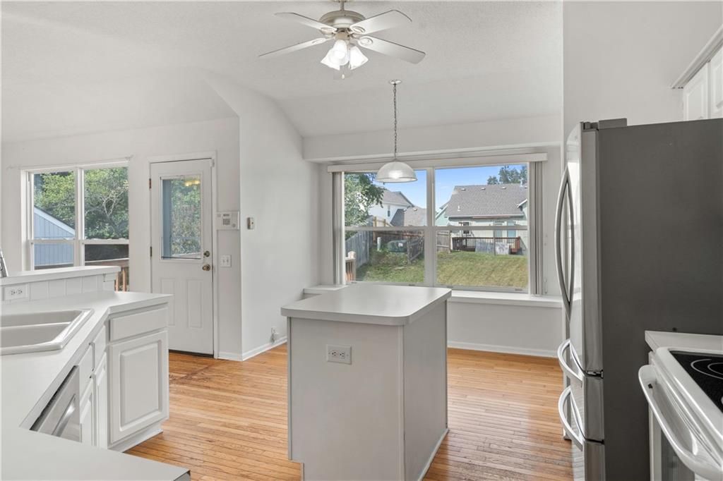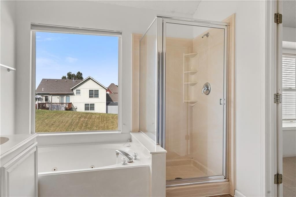 Don't miss out on this fantastic opportunity in a fabulous Northland KC Neighborhood. Large primary bedroom with a spacious primary bath. Plenty of open spaces with lots of natural light make the living areas fell fresh and clean. An elevated deck leads out to an open and sunny backyard ready for entertaining. Garage level basement space with natural light could make a 4th bedroom with ensuite bath. This home is ready to make your own!