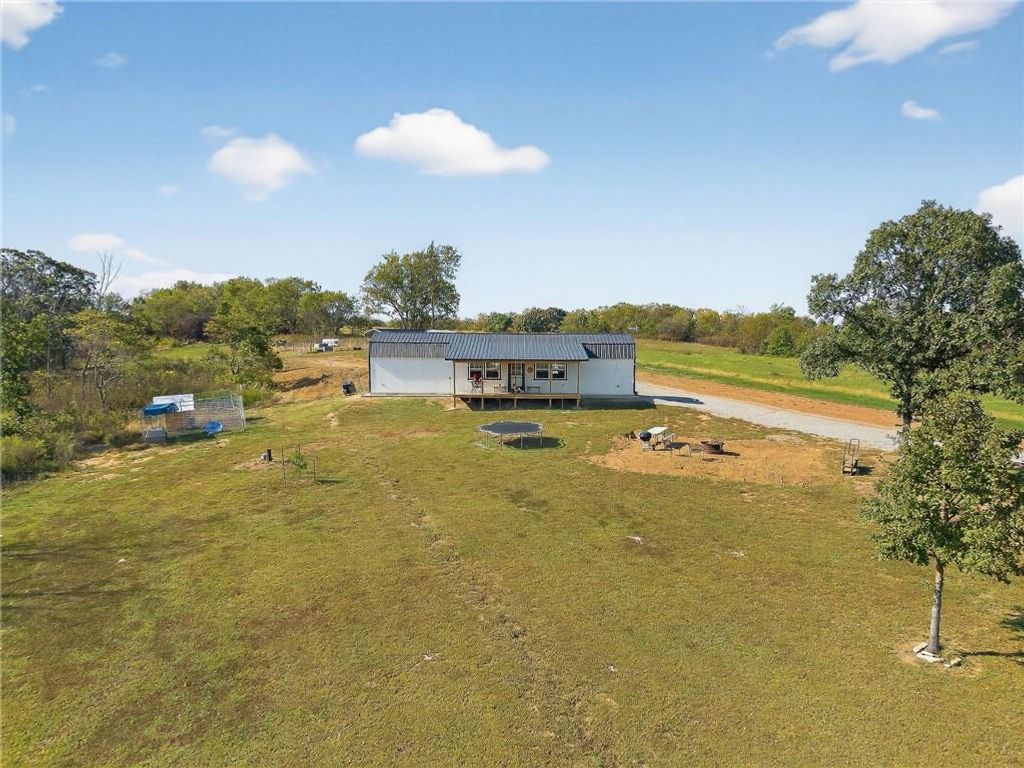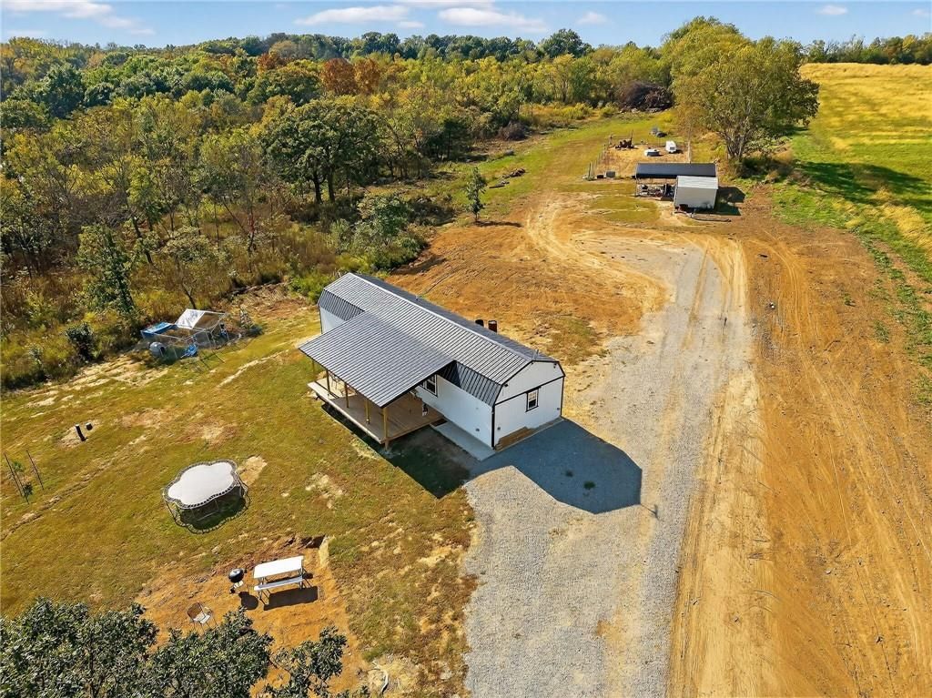 Discover this charming 16x54 finished cabin on 5 acres, just mile off Hwy 116. Set on an oversized concrete pad with a front porch to enjoy stunning sunsets, this property is perfect as a full-time residence, weekend getaway, or hunting cabin. The land features rolling open fields, timbered privacy, and cleared areas ideal for a garden or food plot. Two gravel entrances and a carport add convenience and value. Enjoy Missouri's scenic countryside and abundant wildlife right in your backyard. Schedule your showing today!