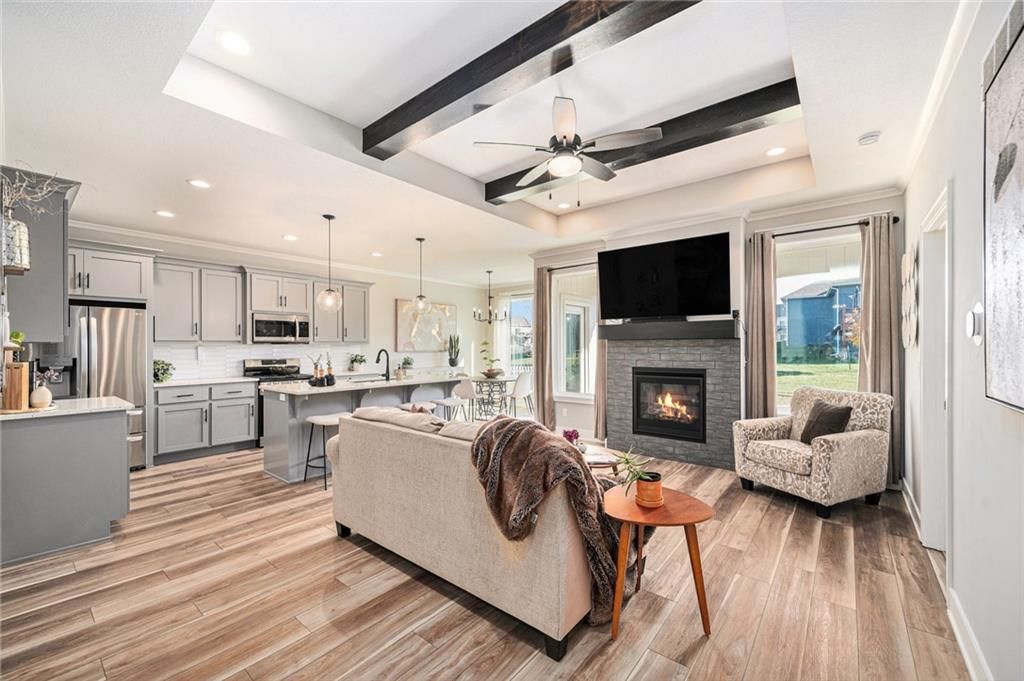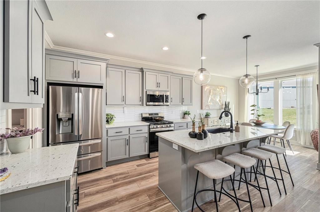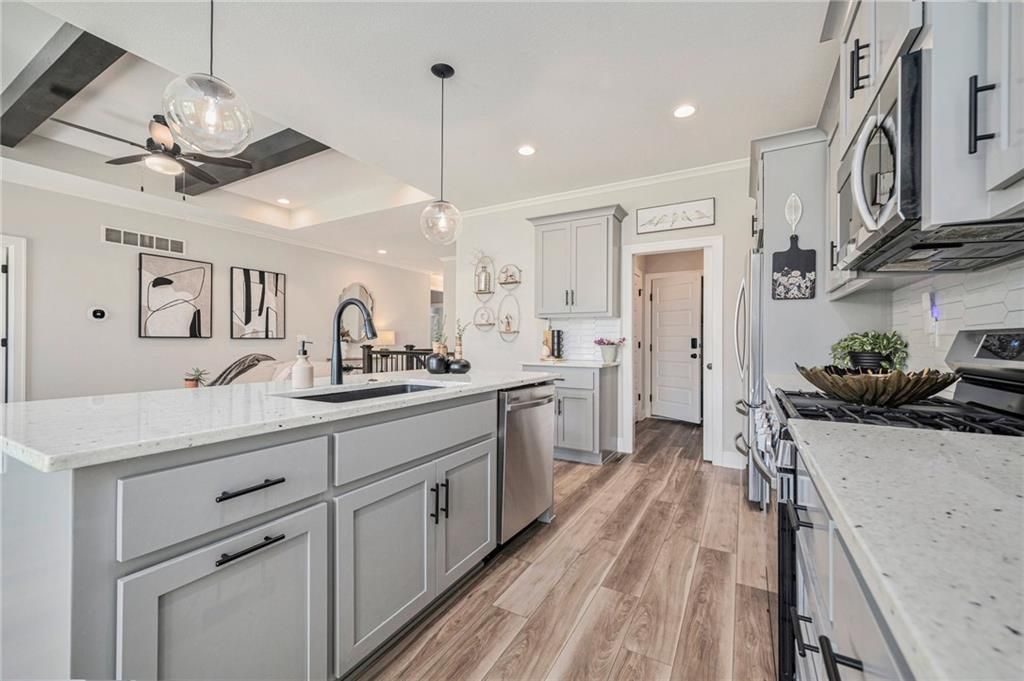 Welcome to this gorgeous ranch with an open floor plan that has plenty of natural light from large windows, luxury vinyl flooring, light neutral colors, a large island, quartz countertops, and stainless steel appliances. Living room displays tray ceiling with beautiful wood beams and cozy fireplace with modern tile. Pantry across from the laundry room off kitchen and garage. Master Bedroom has plenty of space and bathroom has adorable window seat area, a double vanity, and large walk-in closet. Additional two bedrooms and full bath offer plenty of space. Also almost 1400 sq ft in the huge finish-able basement! Massive 3-car garage, flat yard, and back covered patio! Home is close to the neighborhood pool, playground, and walking trails. This highly sought after neighborhood of Colonial Highlands is near shopping, restaurants, award-winning schools and major lakes. Bids from contractor for cost of finishing off basement available!