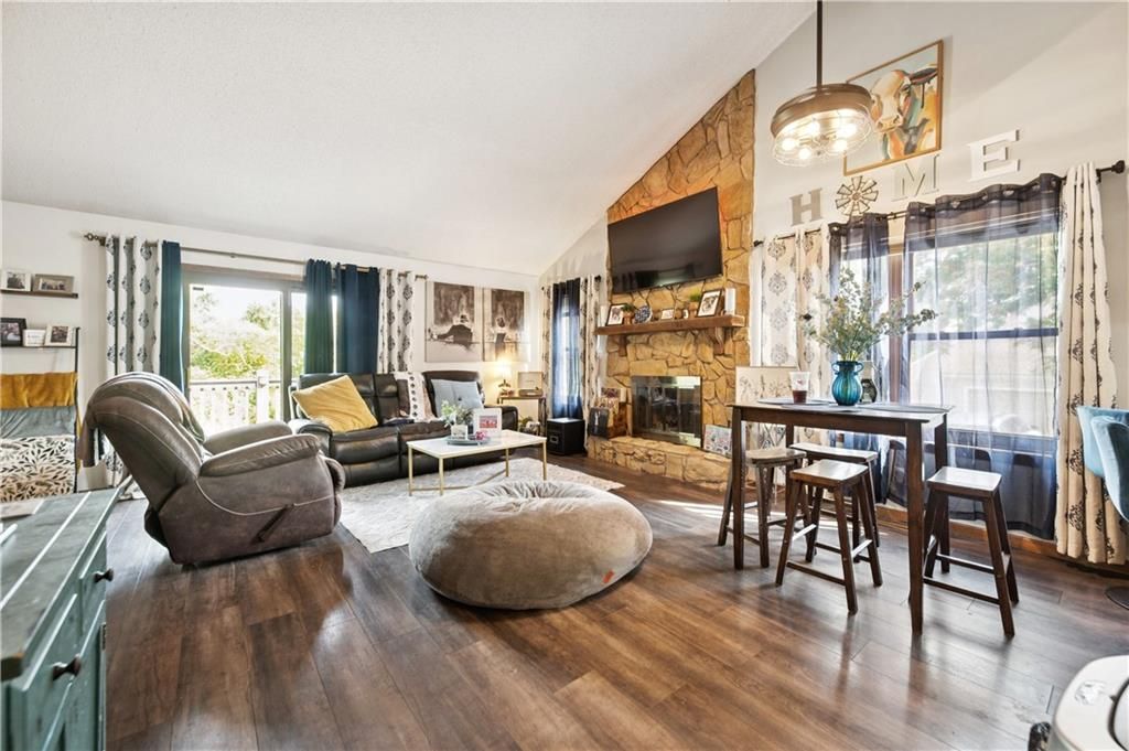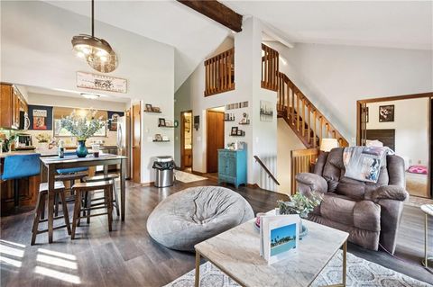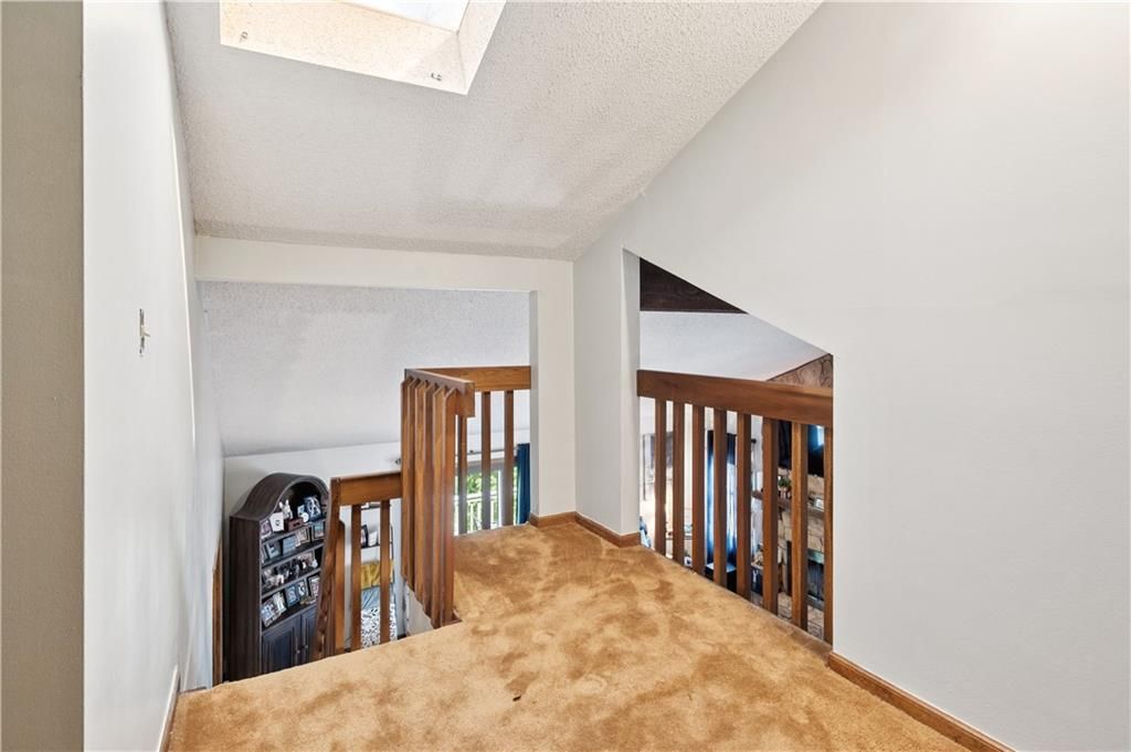 Maintenance provided townhome in popular Twin Lakes! Private setting on a cul-de-sac corner lot that backs to woods / greenspace with a lake view. Large 2 tier composite deck with stairs down to grade. Huge main floor MBR with walk-in closet. Loft could be a 3rd non-conforming bedroom or perfect for an office. Finished walkout lower level with Family Room and additional 13x14 Bedroom with huge walk-in closet and bath. Tall vaulted ceilings in the great room with beautiful stone fireplace. Newer roof and HVAC. New granite tops. Newer LVP flooring in great room and Master bath. Fridge stays, Washer / Dryer negotiable. Located in Gladstone (no e-tax)!