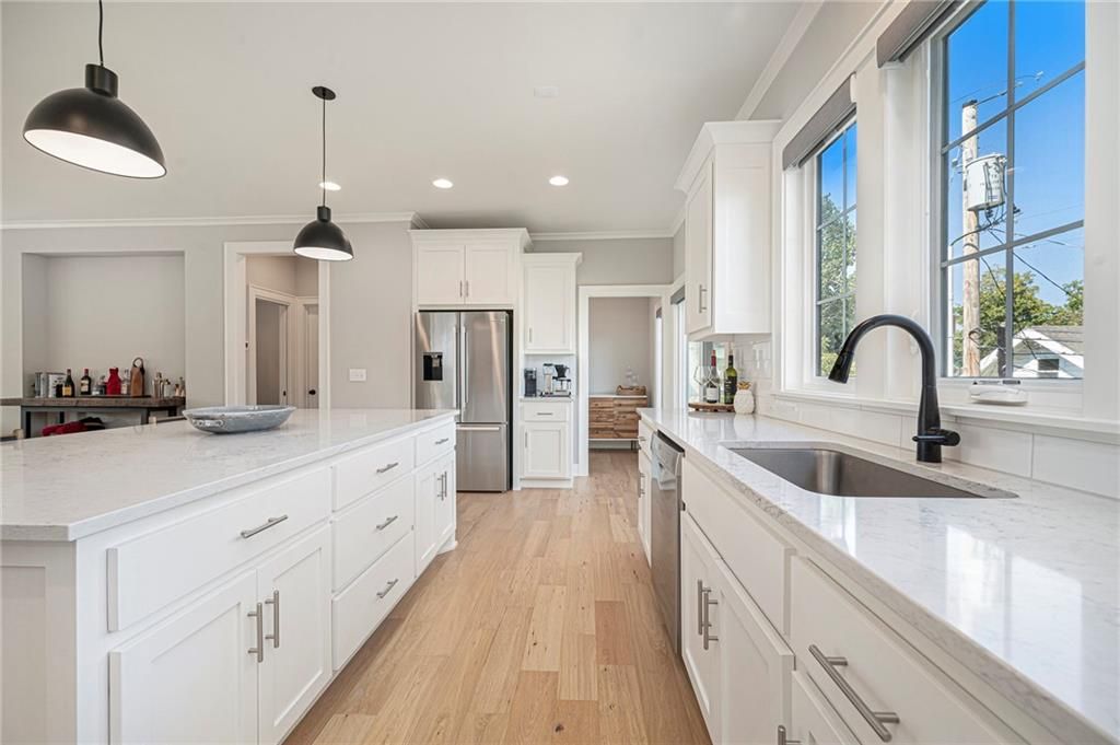 Welcome to 732 Corbin Terrace. This is a custom James Engle Construction 2 story home in the heart of Plaza Heights, just blocks from the Country Club Plaza. Greeted into an open floor plan ideal for entertaining. Living room showcases a sleek tile fireplace, wood floors, and doors that open to a large front porch. Spacious dining space. Gourmet kitchen with an over-sized island, Bosch appliances including built-in microwave, wall oven, gas range, dishwasher, and refrigerator. Small butler's pantry area leading into a walk-in pantry. 1/2 bath or guests finish out main level. Second level hosts primary bedroom w/ en-suite. En-suite complete with dual vanity and walk-in tile shower. 2 additional bedrooms, full bathroom, and laundry closet finish out upper level. Lower level hosts a 2-car garage, under stair storage, and an additional storage space that walks out into the fenced backyard. Private driveway. The home was designed to install an elevator for all three floors if needed. Monthly HOA cares for lawn maintenance. Location, location, location! Don't miss downtown living in a home less than 3 years old!