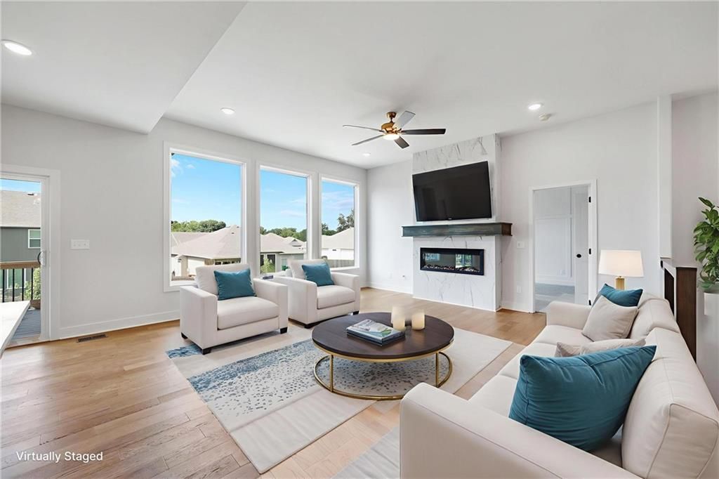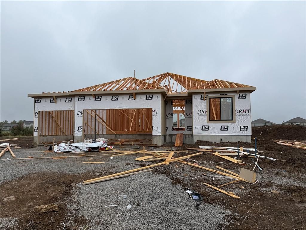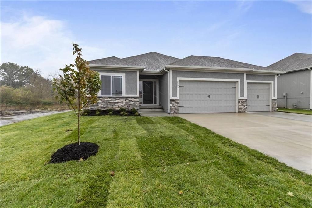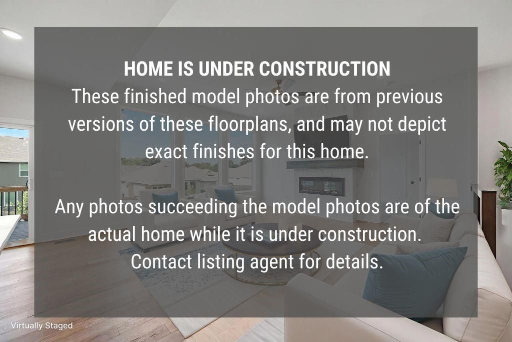Under Construction - The Carlson Reverse by DRHI! This stunning home is designed with an open-concept floor plan that's bathed in natural light, creating a warm and inviting atmosphere. The Great Room showcases a stylish gas fireplace with a tile surround, while the chef-inspired kitchen features rich stained cabinetry, solid-surface countertops, and an electric cooktop. Hardwood floors extend through the kitchen, dining area, Great Room, mudroom, and pantry, offering seamless style and sophistication. The private primary suite boasts a spa-like bath with a beautifully tiled shower, while all secondary baths and the laundry room are finished with gleaming tile for a polished touch. The finished daylight basement provides extra living space perfect for entertaining, plus the spacious covered deck invites you to enjoy the outdoors. Located in Hoot Owl Acres, this home is just minutes from shopping and dining along South 7 Highway and Adams Dairy Parkway. Enjoy a peaceful Blue Springs setting with easy access to 7 Highway and I-70 for a quick commute anywhere in town. Served by the award-winning Blue Springs School District, with Blue Springs South High School just around the corner. Home is currently under construction; final pricing subject to change.