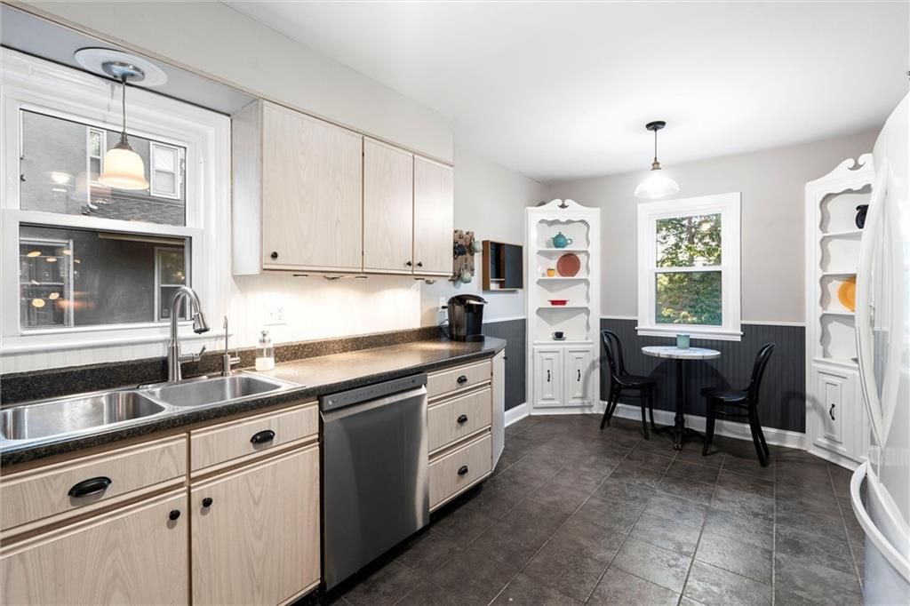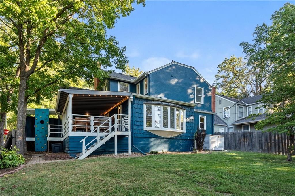 SOLID South Waldo Tudor with great space! Enjoy this 3 bedroom, 2.5 bathroom home that has an attached garage plus a RARE family room addition off the back. Original hardwood floors thruout most of the home. Eat-in kitchen w/ built-in corner storage, plenty of counter space, Stainless Steel dishwasher, microwave and oven (within 5 years old). All 3 bedrooms are on 2nd level and generous in size. Primary bedroom includes large walk-in closet and NEWER ensuite full bathroom w/ built-in vanity area. Primary bathroom upgrades include: new floor and wall tile, new vanity, lighting, and fixtures. Cool, vintage full bathroom between bedrooms 2 and 3. Backyard is made to entertain! Expansive covered porch off the Family Room leads to custom rock wall and sprawling backyard. New windows in Kitchen/Dining/Basement in 2018. Home sits on a quiet street but just a few minute drive from all the Waldo/Brookside HOT SPOTS!